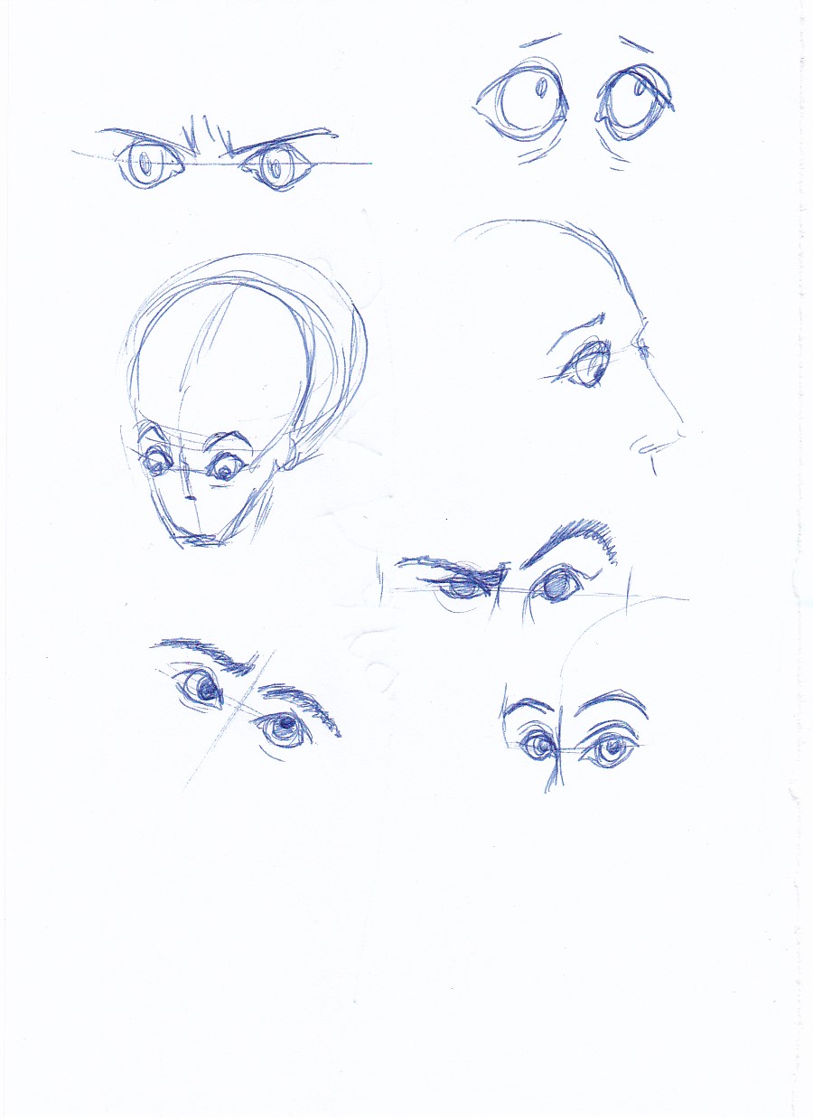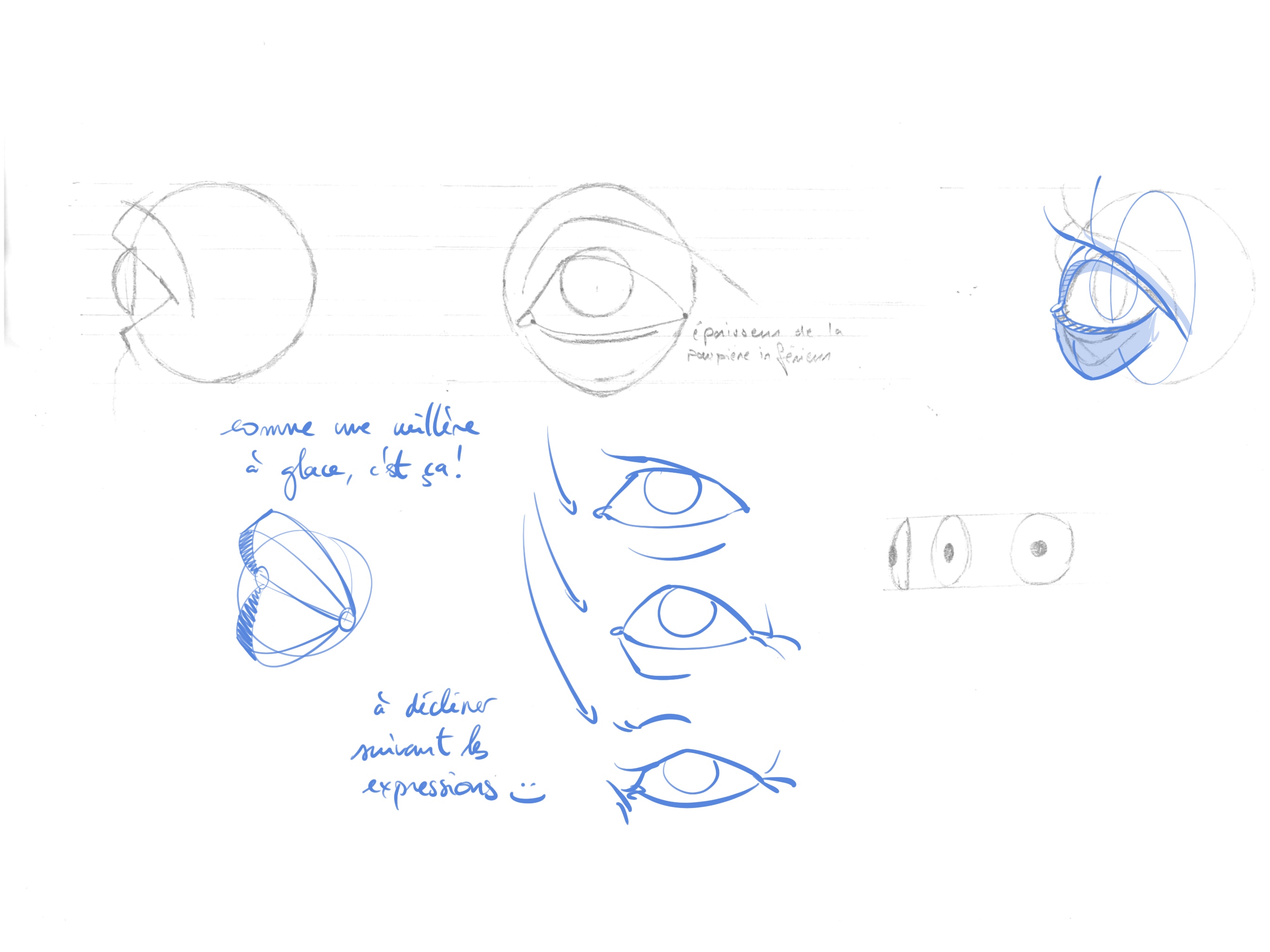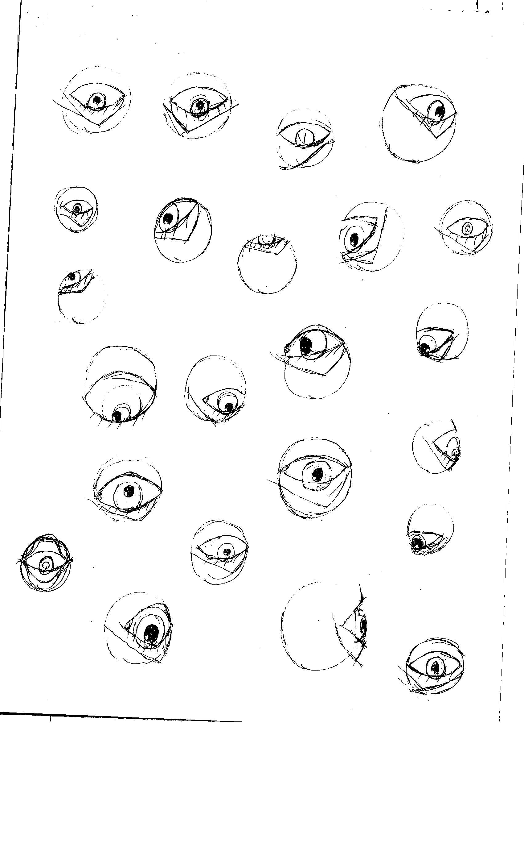 ça marche bien, l'idée maintenant c'est d'essayer de retrouver cette structure sur des images de personnes. Histoire d'analyser ce que tu vois et d'en tirer une forme simple pour comprendre. Cherche notamment du côté des stars de cinéma, ils ont une infinité de photos en HD partout donc on peut zoomer. Essayer de choper des regards expressifs et de décomposer ce que tu vois avec la méthode du cours en analysant les plis des paupières et en retrouvant la forme du globe derrière (Clint Eastwood, Morgan Freeman, Marylin Monroe, Maggie Smith, Christopher Walken, etc) Bons dessins... !