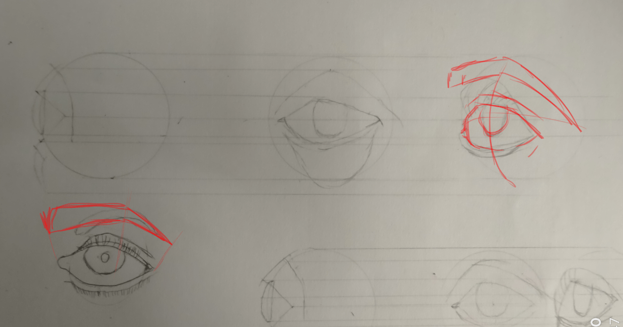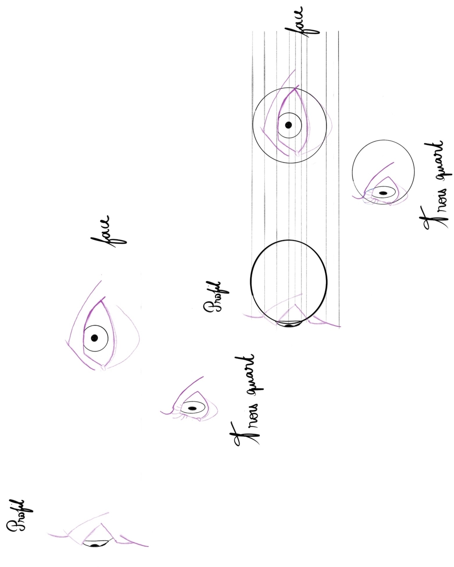 Es cierto en tus bocetos, ¡has asimilado el curso! Un pequeño consejo sobre la vista detallada en la parte inferior, los alumnos se afeitan un poco, para hacer un aspecto centrado hacia el espectador, ¡puedes colocar a los alumnos en el centro del globo ocular!