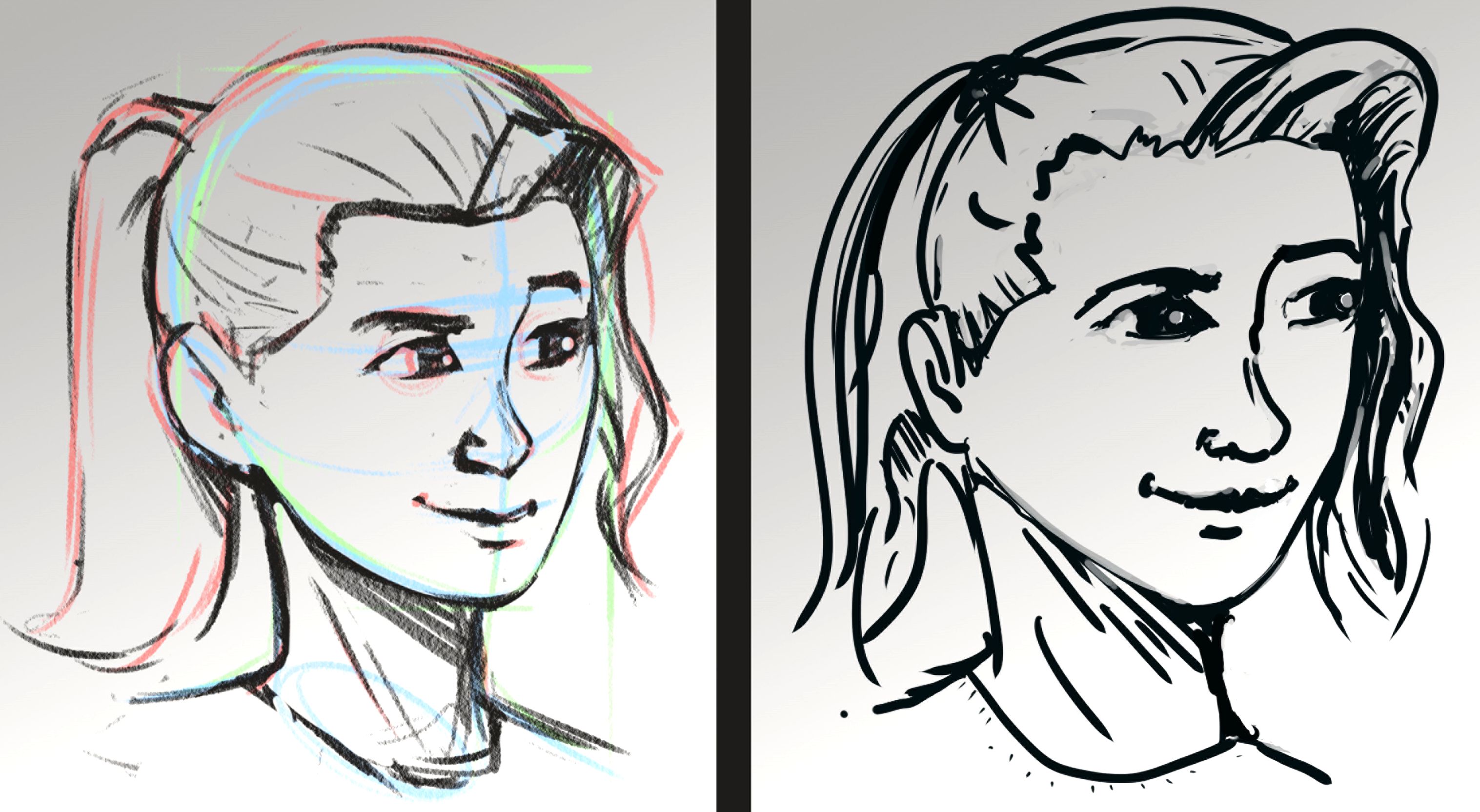 Gracias por el regreso. De hecho, realmente tuve problemas con el dibujo digital debido a no ver lo que dibujé en el soporte sino en la pantalla. Estaba tratando de hacer bocetos e hice líneas temblorosas y que no iban a donde quería, así que no usé mi tableta durante mucho tiempo antes de decidir volver allí con la formación.