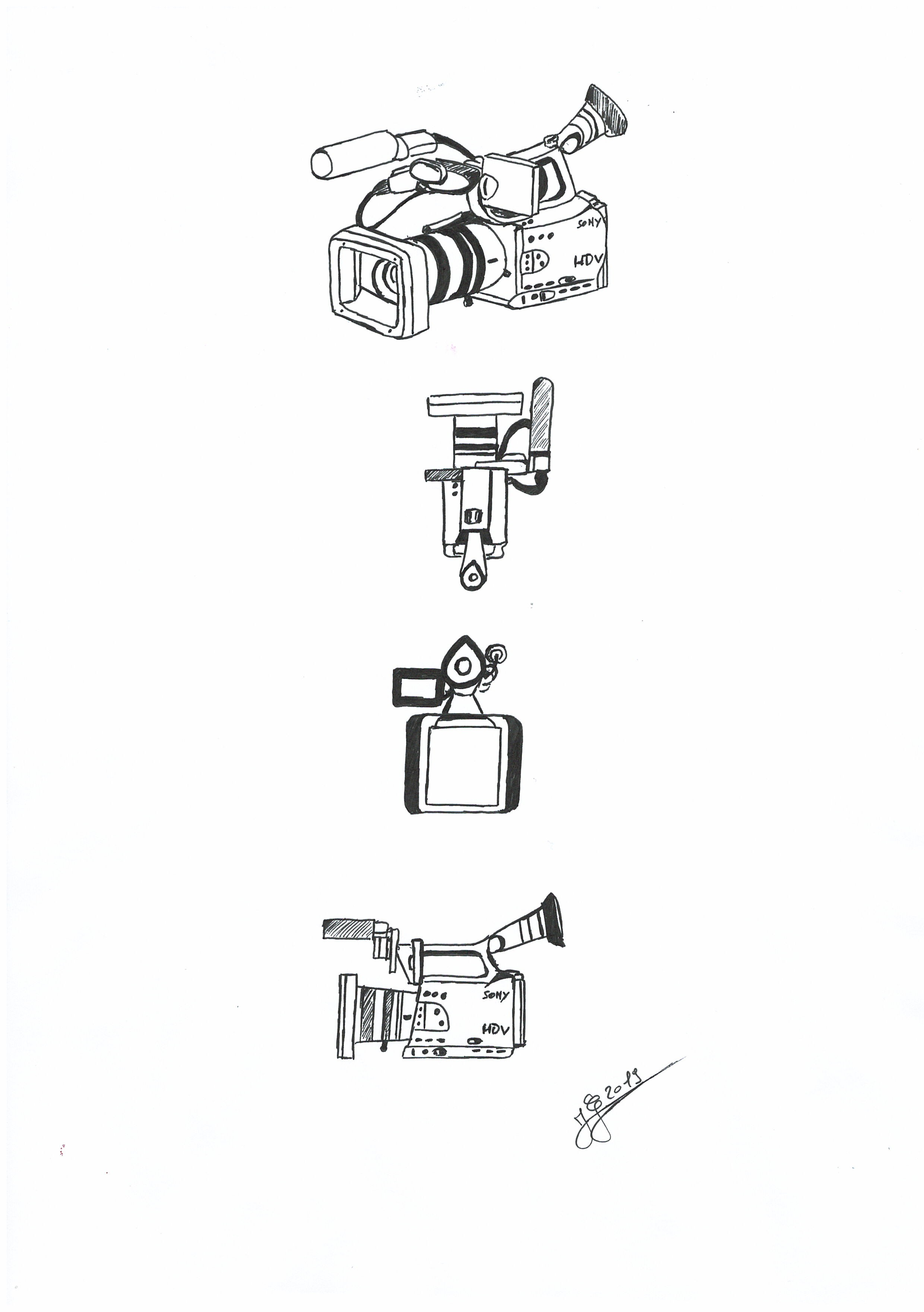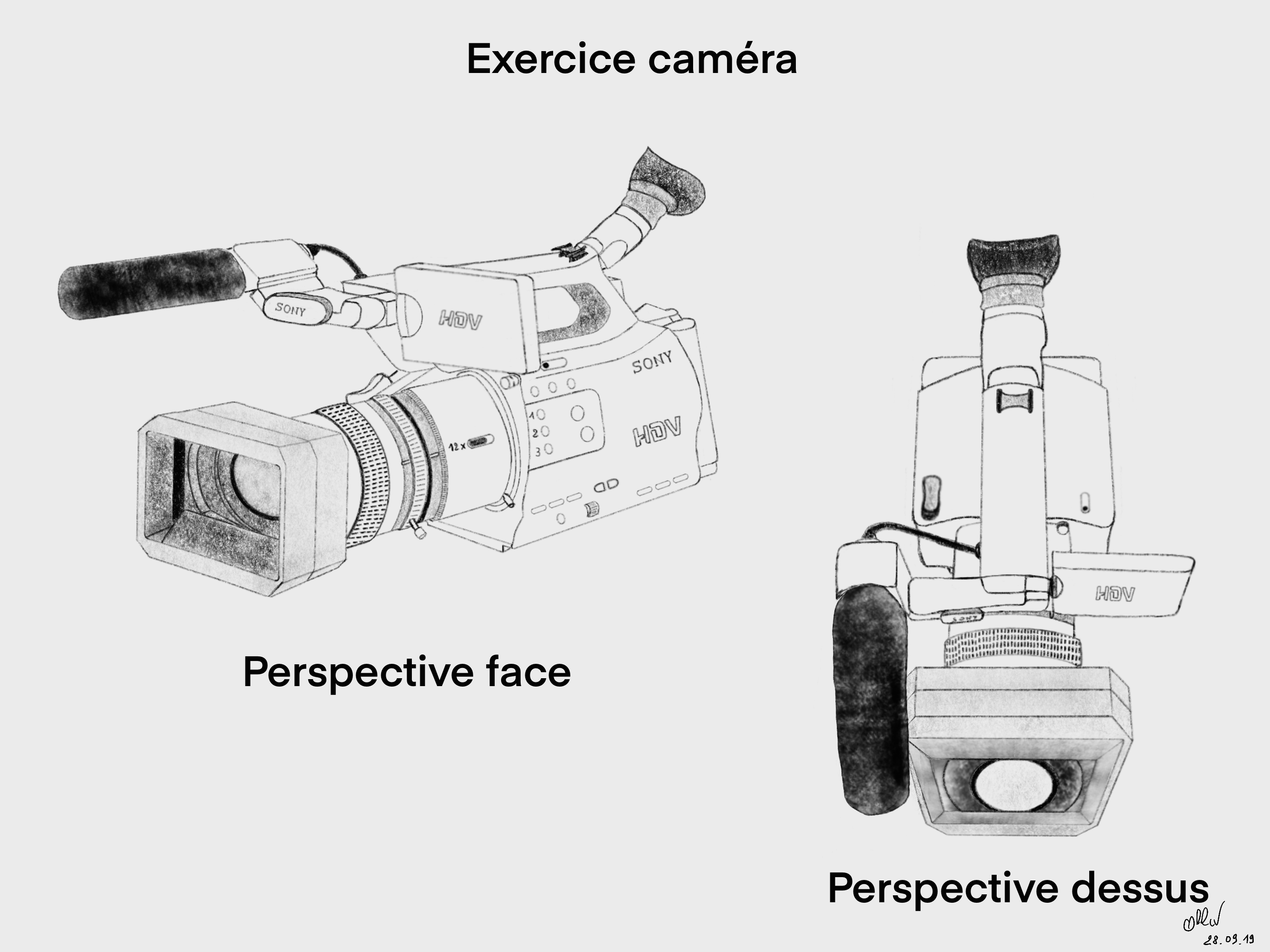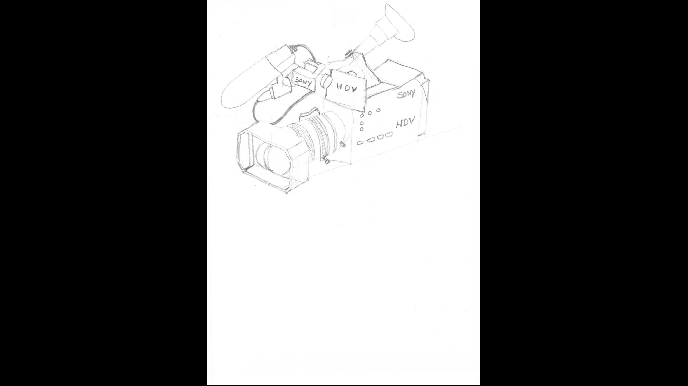 Je finalise enfin la 1ère vue perspective sur le second sujet "la caméra" en utilisant la technique des points de fuite que je découvre au passage.