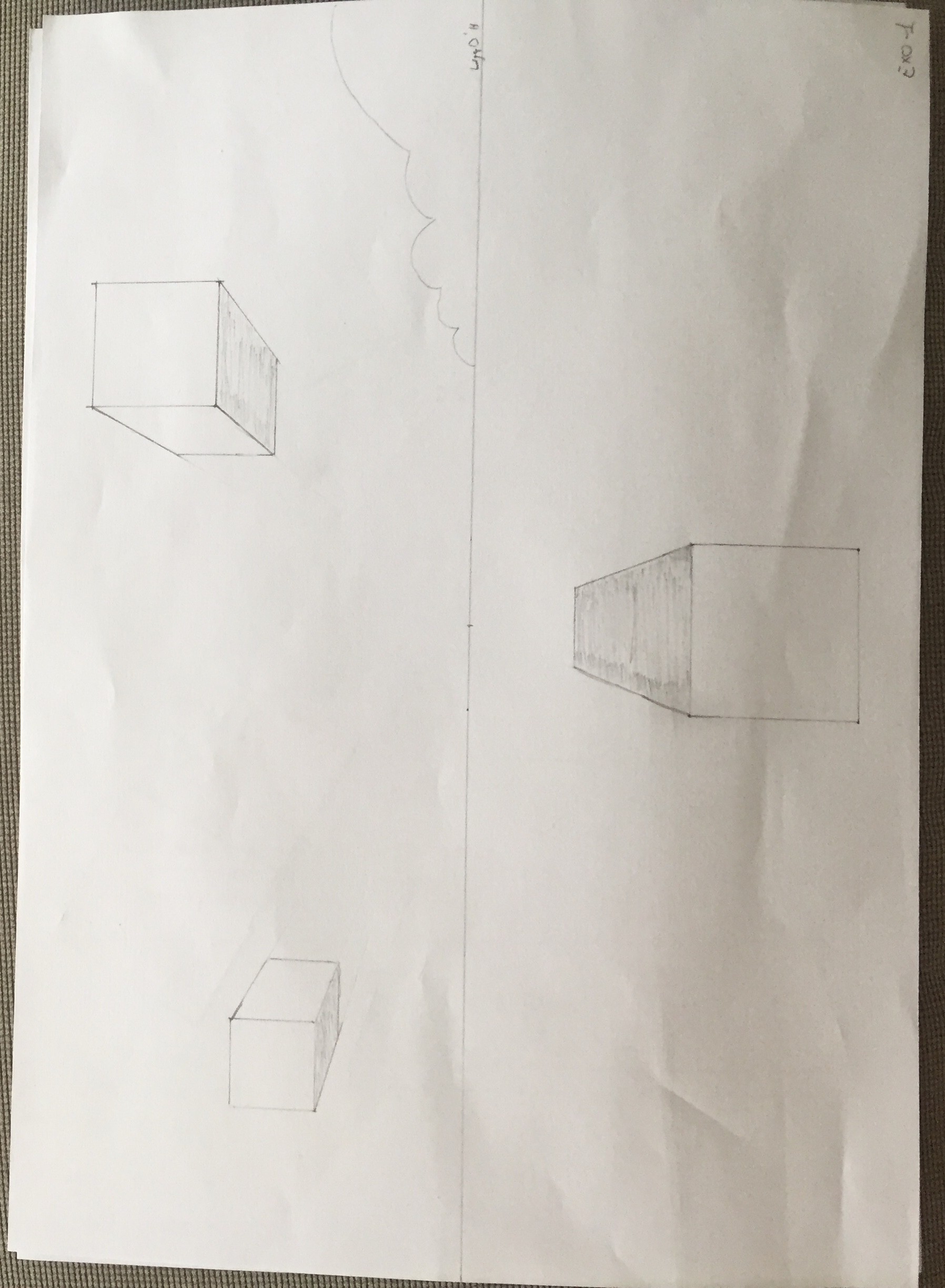 Après plusieurs heures de travail, voici ce que j’ai réussi à faire. Le changement de vue n’est pas évident et la perspective difficile à dessiner. Peux-tu me donner avis et conseils pour m’améliorer stp?
