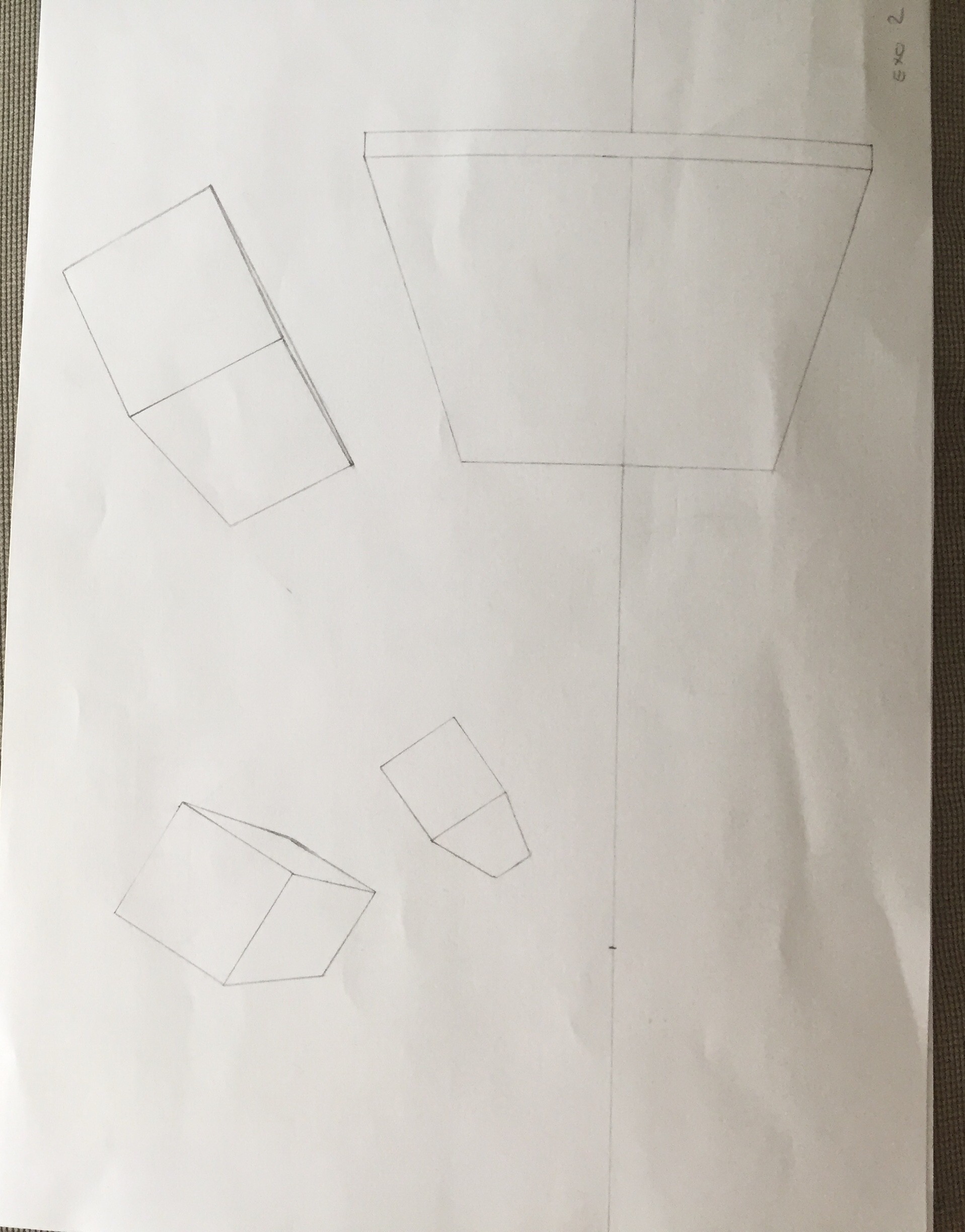 Voici les deux objets dessinés sous une autre perspective. Je serais curieuse de savoir ce que tu en penses. C'est difficile de se les représenter différemment surtout quand on ne les dispose pas physiquement. Je n'ai donc pas pu réaliser un travail d'observation autre que l'image.