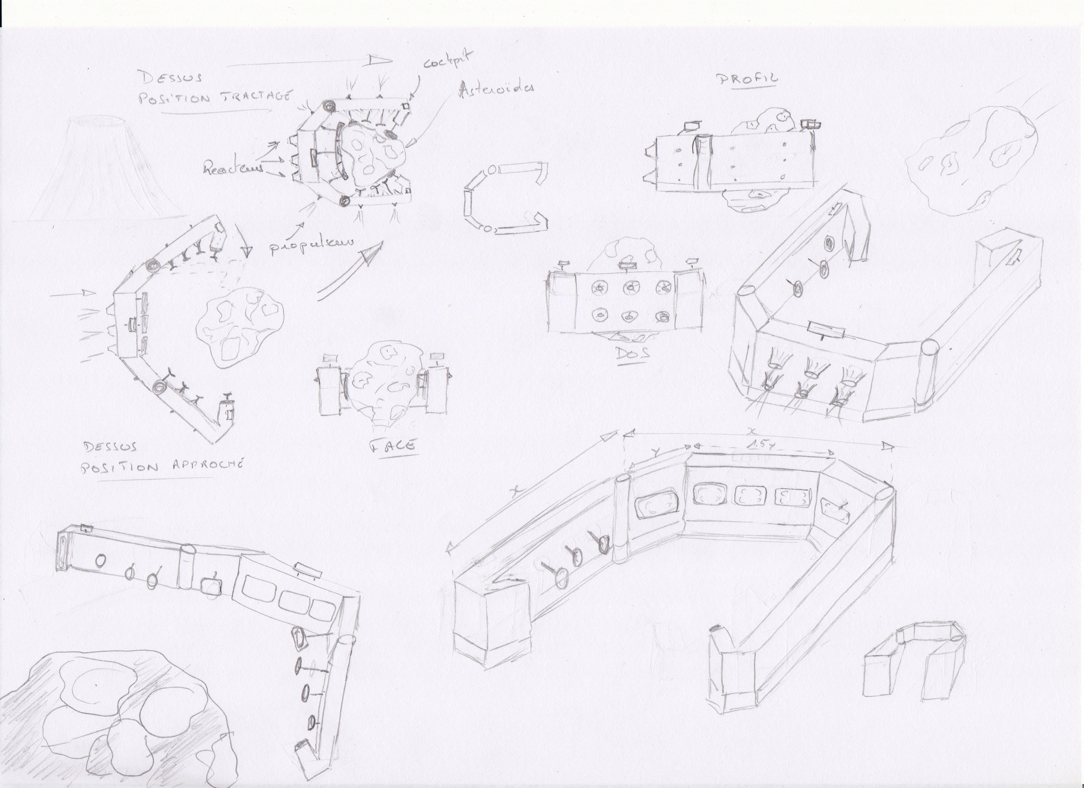 Plus personnellement, niveau design j'aurais tendance à renforcer les articulations car en cas de pépin je pense que c'est le premier truc qui va sauter (par exemple, rajouter une butée pour éviter que les bras ne se retournent complètement en cas de choc violent ou de mauvais amarrage d'un astéroïde !) mais là on rentre dans un tout autre débat ;-)