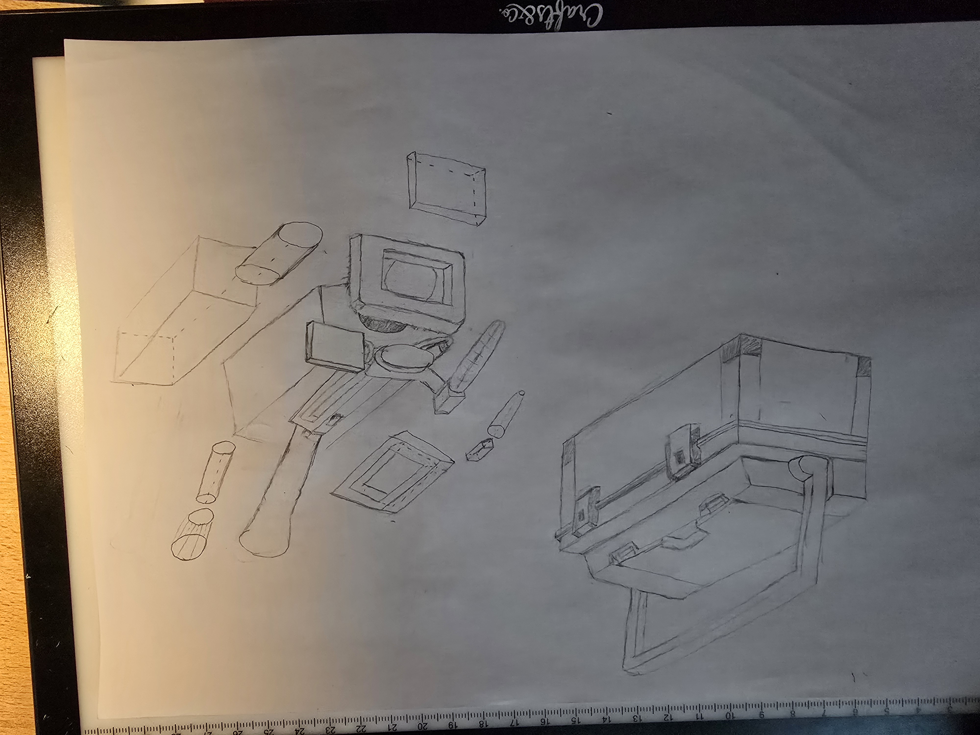 Hola, aquí están mis bocetos para el tronco y la cámara