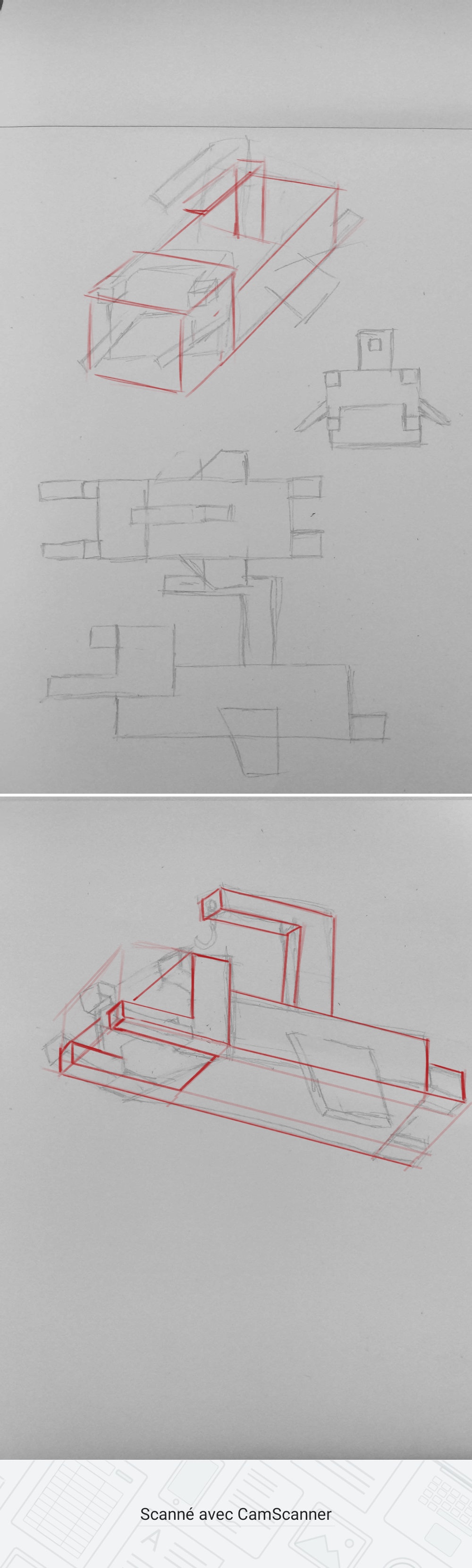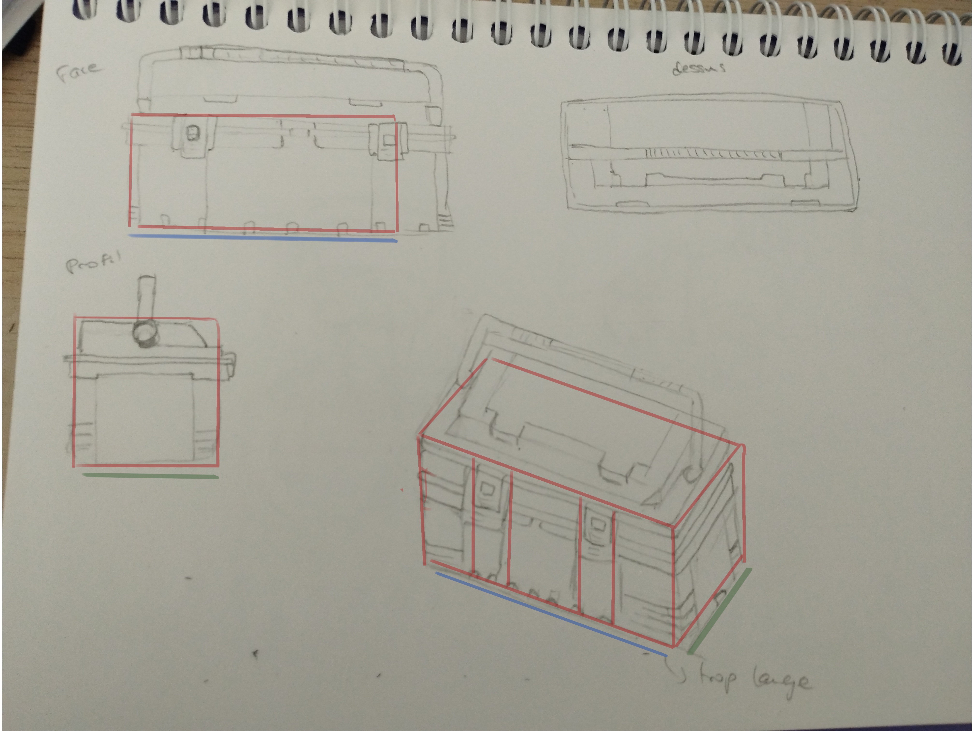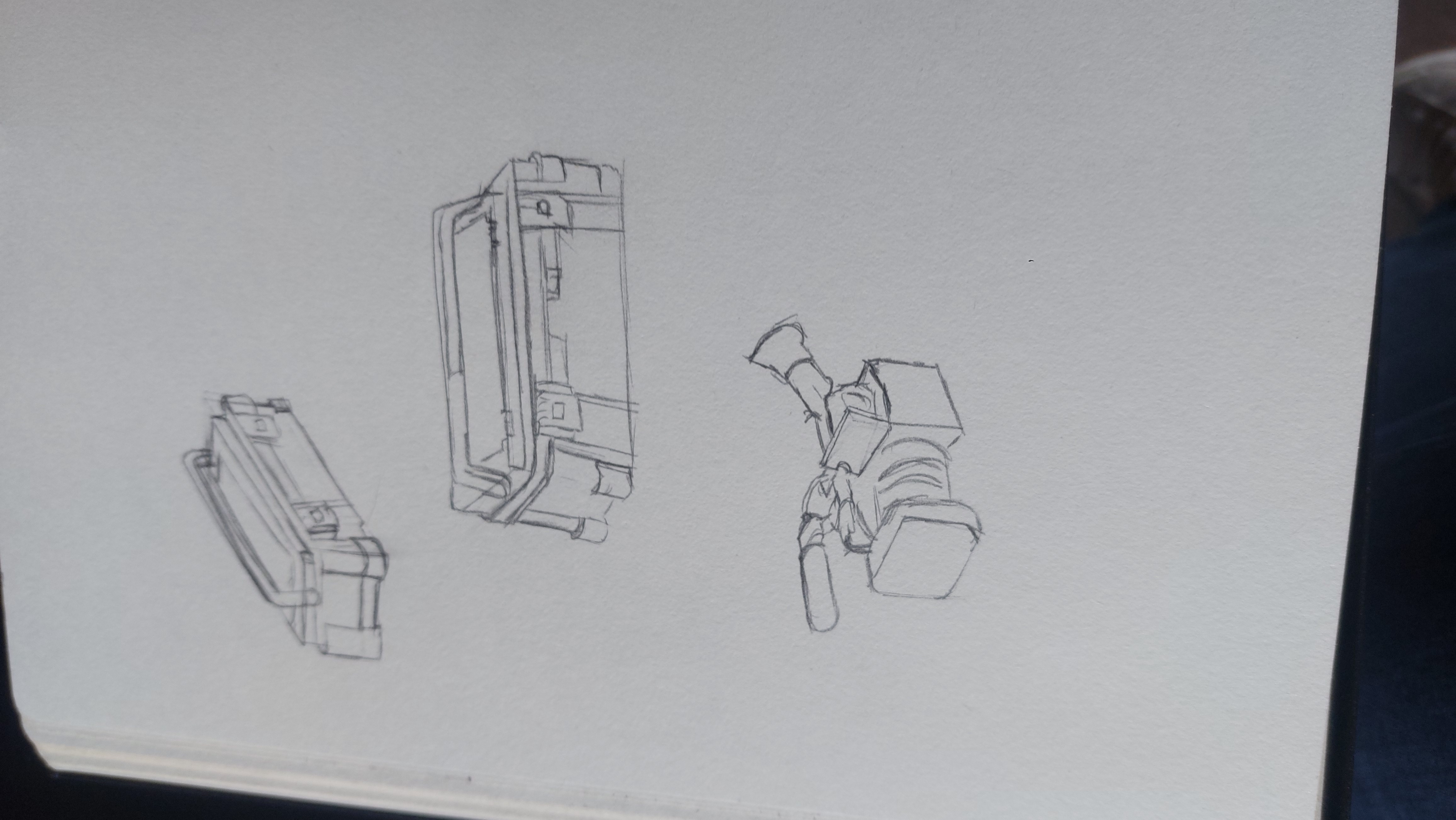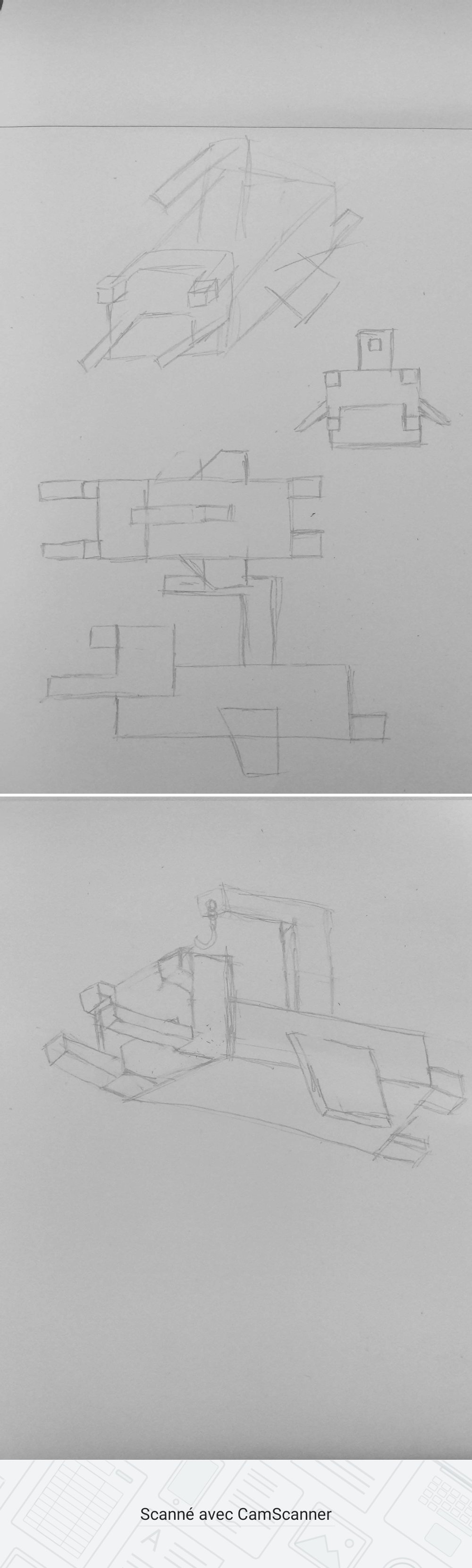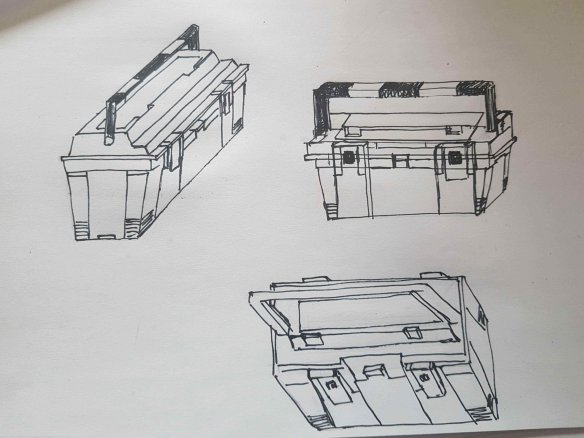Bonjour, voici mes croquis pour le coffre et la caméra