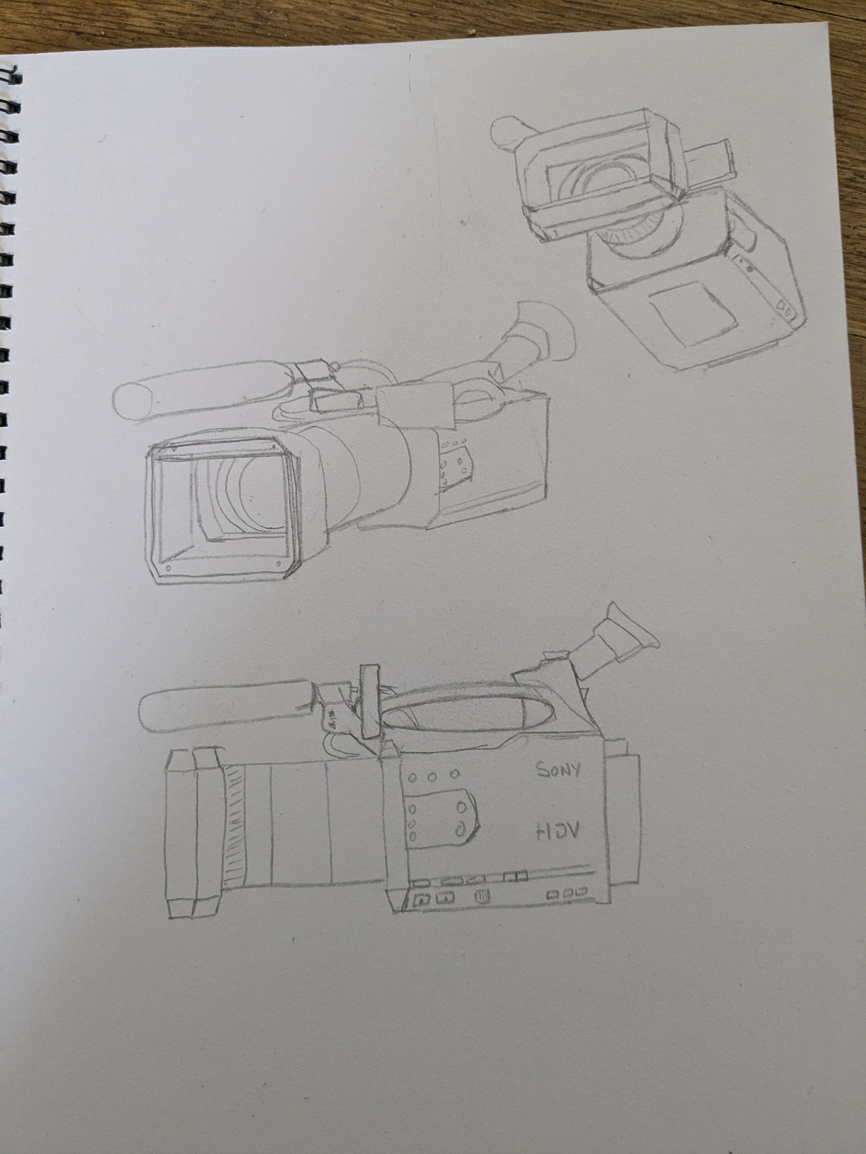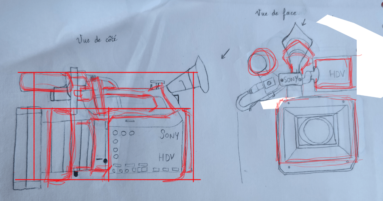 Concernant tes dessins tu t'en es vraiment bien sortit, fait bien attention à conservé l'axe, il avait tendance à être un peu déviant entre la partit avant de la caméra et sa partie arrière. Sinon au niveau des proportions général tu as bien réussit à les retranscrire mis à par la lunette qui est vraiment petite.
