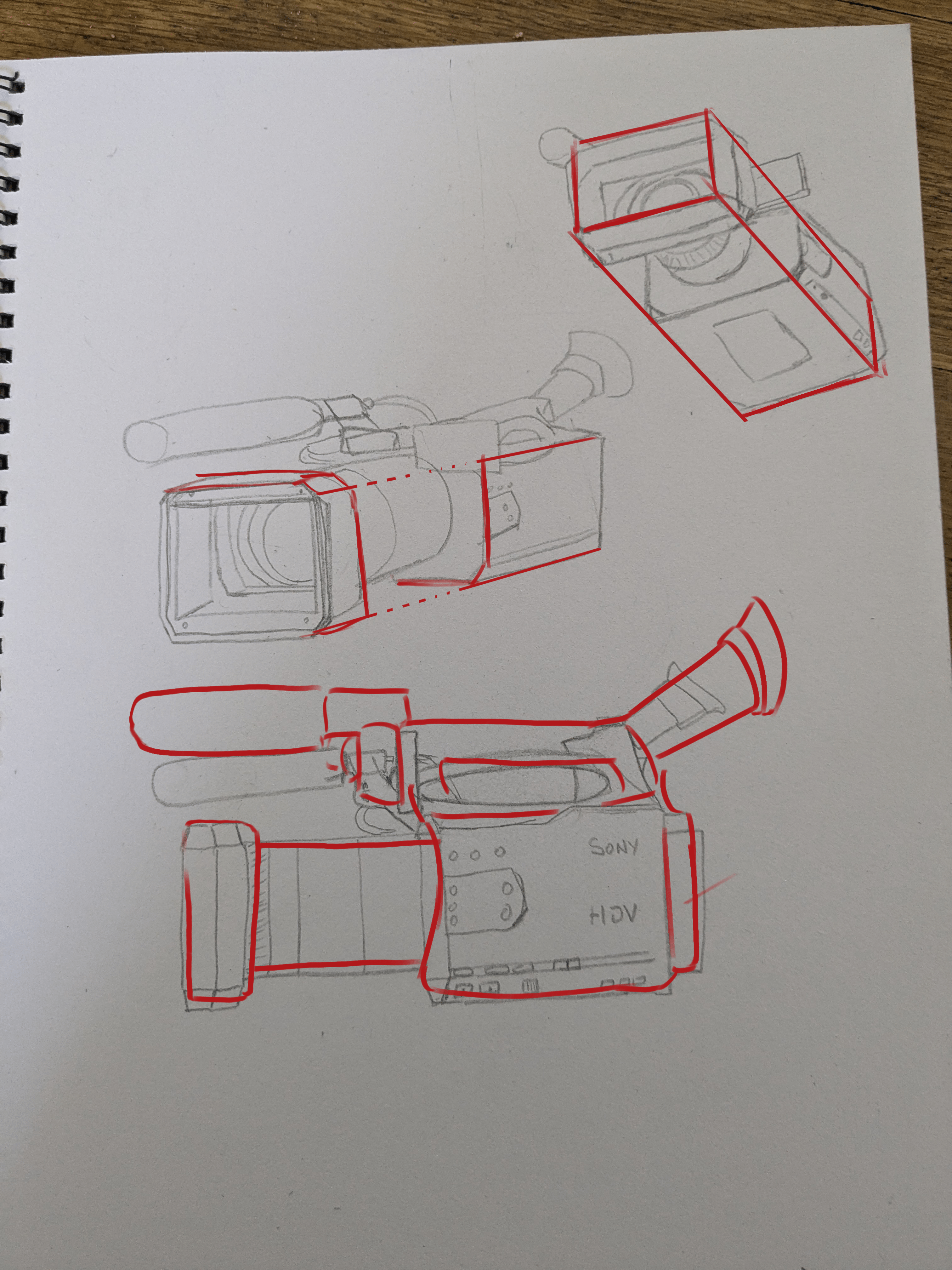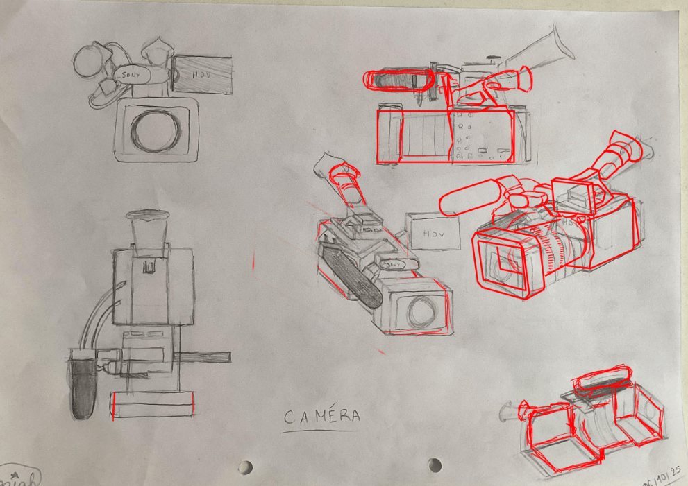 Concernant tes dessins tu t'en es vraiment bien sortit, fait bien attention à conservé l'axe, il avait tendance à être un peu déviant entre la partit avant de la caméra et sa partie arrière. Sinon au niveau des proportions général tu as bien réussit à les retranscrire mis à par la lunette qui est vraiment petite. continue comme ça tu es sur la bonne voie ! 👍😀