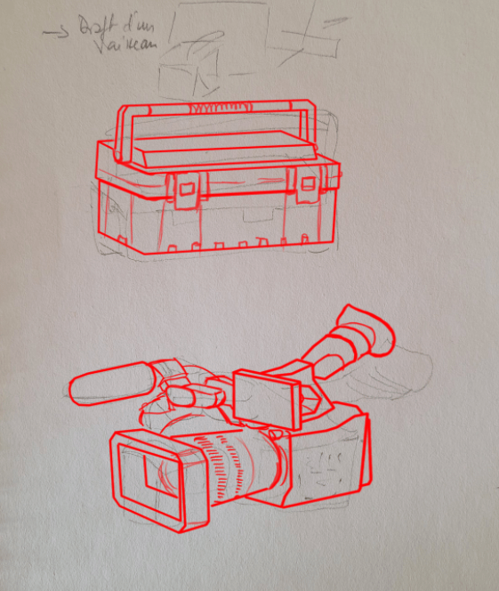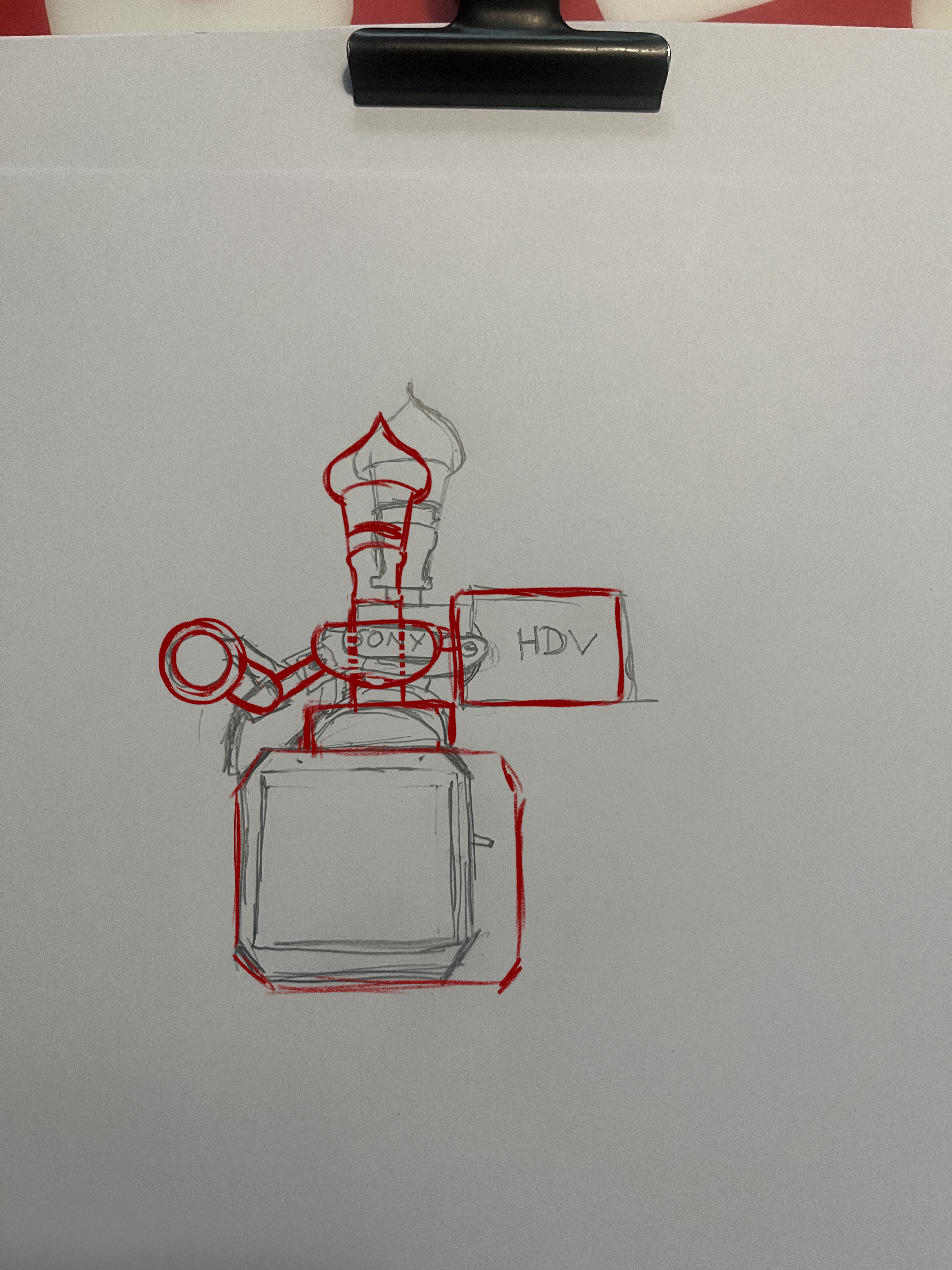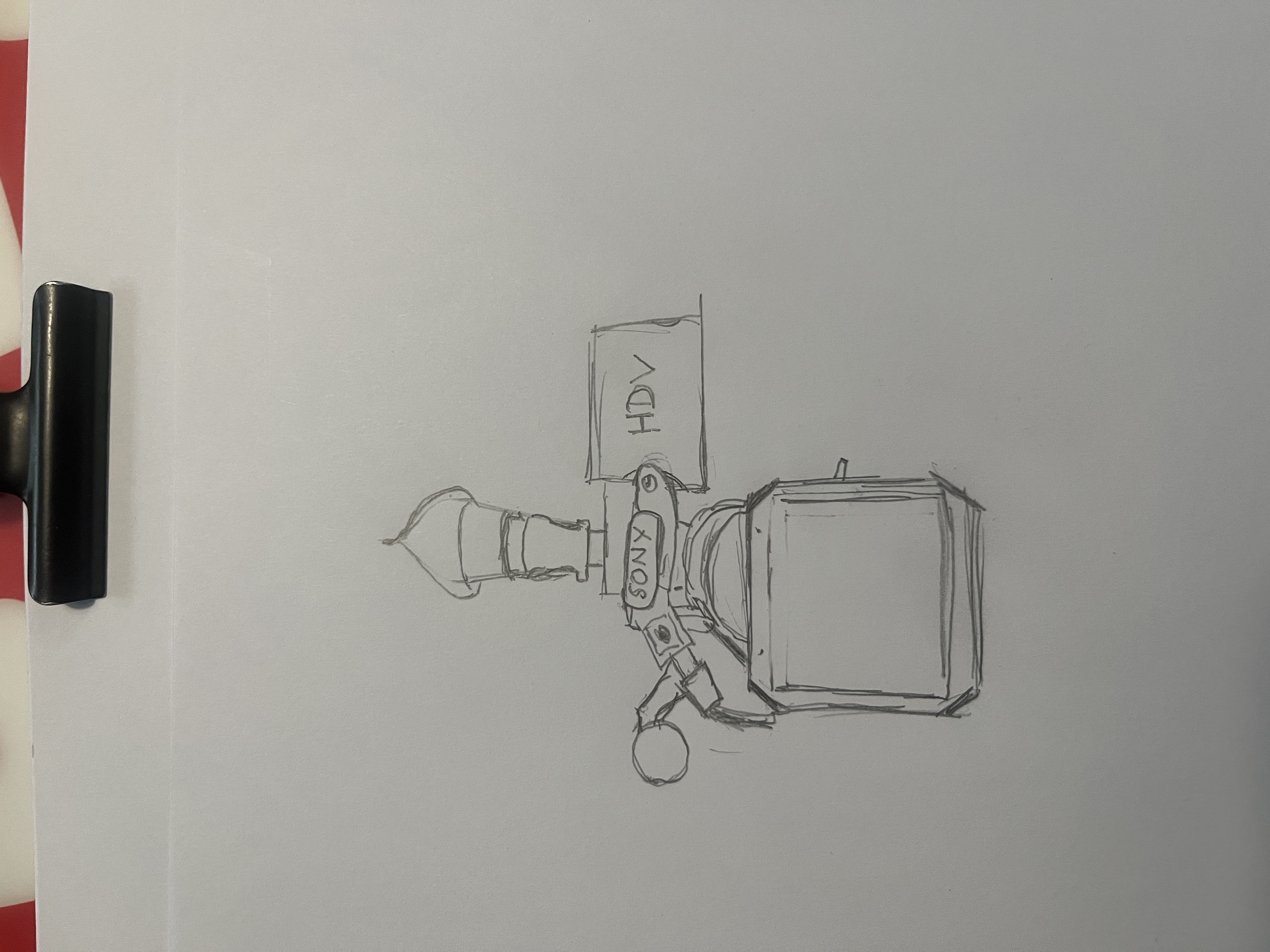 Bonjour Dgedge, effectivement la caméra est un peu complexe à appréhender, mais tu t'en es bien tiré! De léger soucis de proportions (l'objectif un peu plus large, le micro un peu trop petit...), et un petit problème d'équilibre puisque ta caméra penche progressivement vers la droite en grimpant de plus en plus vers l'objectif. Tu peux t'aider d'une ligne verticale au besoin pour éviter l'effet tour de Pise! 😉