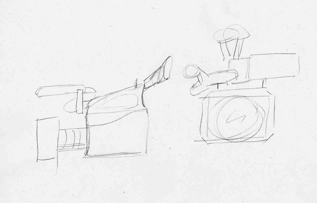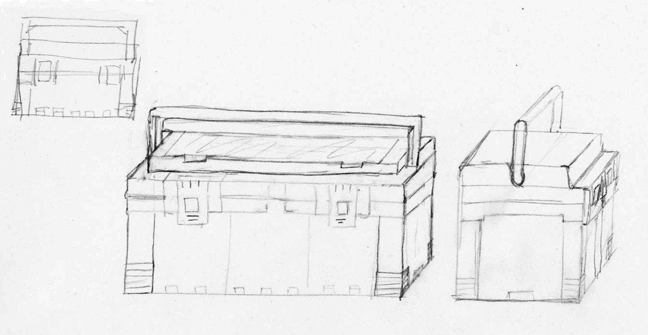 Salut Greg, j'ai commencé par dessiner un vaisseau spatial (j'ai tendance à regarder tes vidéos en mettant sur pause toutes les 5 minutes pour essayer d'appliquer ce que tu nous apprends de suite). Pas de référence directe (mis à part ton dessin) donc une certaine liberté. Pour la boîte à outil, j'ai, après coup, un peu (beaucoup 😉) plus galéré ...
