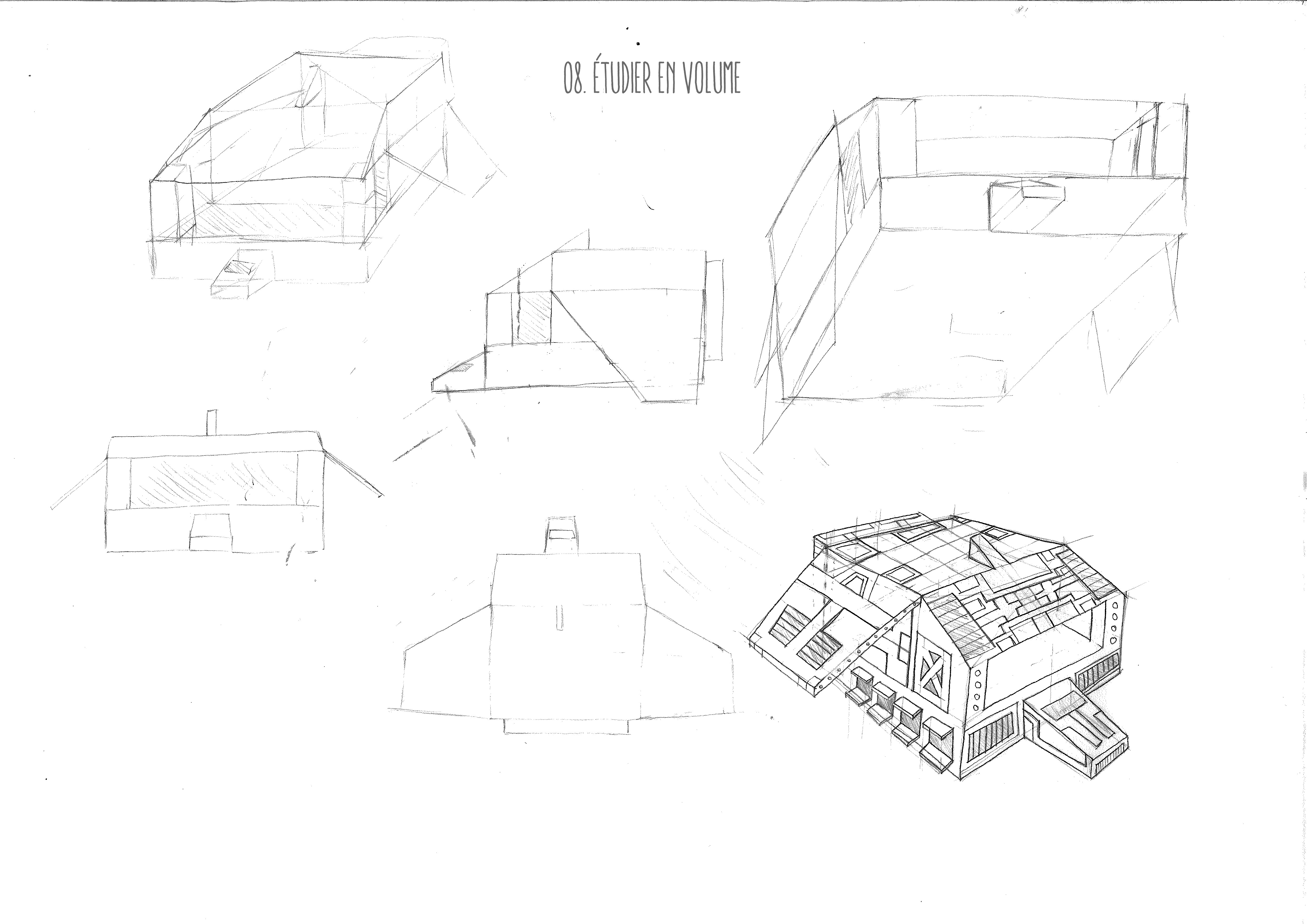 En revanche, attention à ne pas te laisser impressionner : tu as fait un travail plus synthétique pour le vaisseau que pour la caisse. Pour cette dernière, tu as fait des études des détails en volume, mais pas de la boîte en volume. Ça n'enlève absolument rien à la qualité des tes exos ! Mais c'est probablement pour cela que tu as trouvé cette deuxième planche plus difficile à réaliser 😉