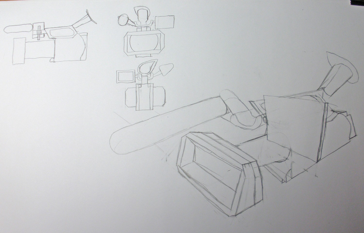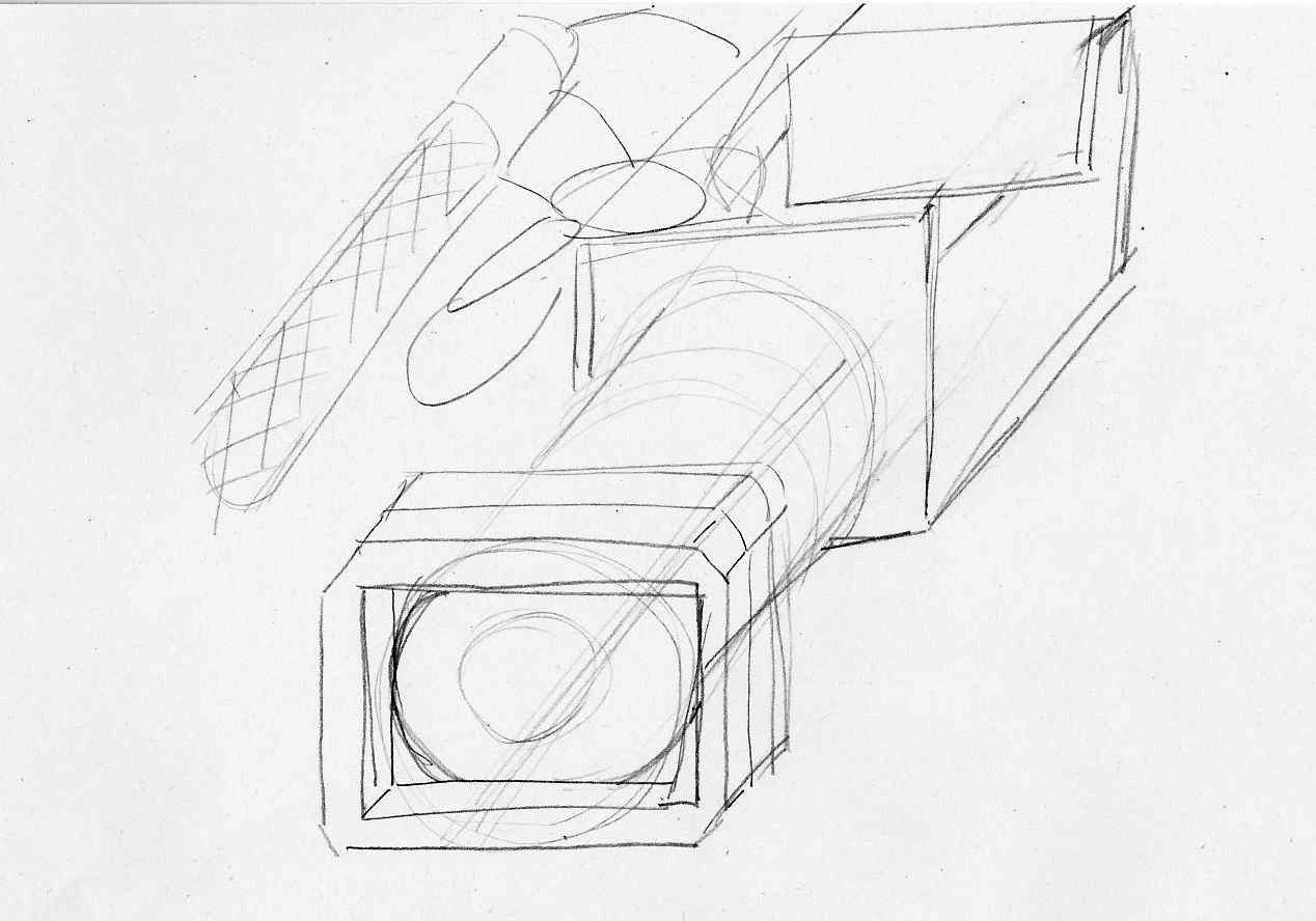 Bon ben voilà ce qui est sensé être une caméra :D, c'est un peu crade j'ai tout dessiné avant de gommer tout ce qui ne se voyait pas. Les proportions sont... pas top :)