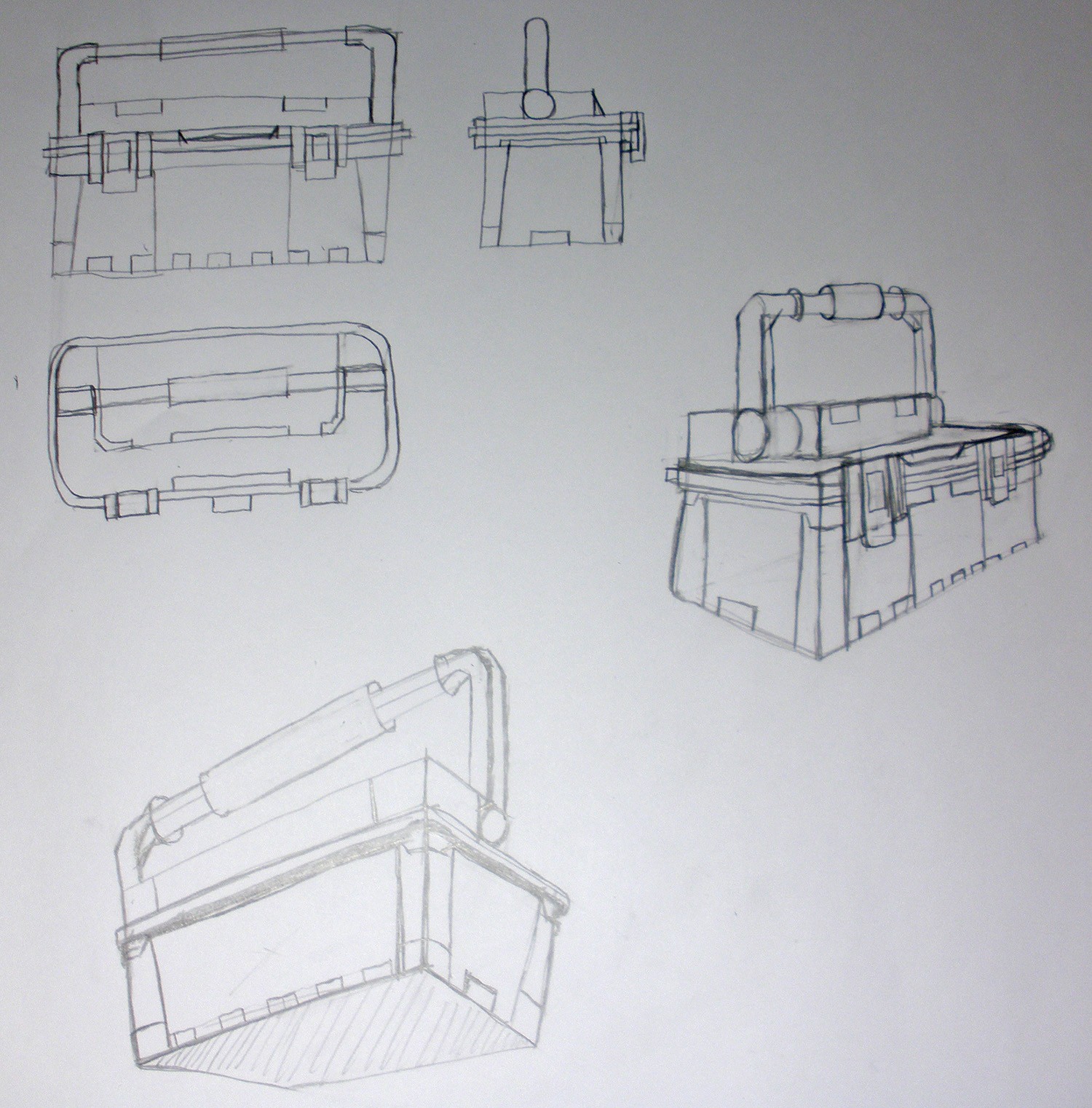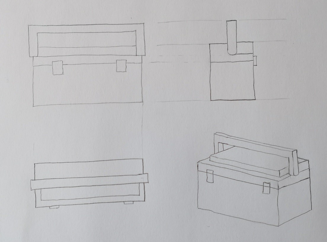 Voici les premiers essais. Ça fait cogiter d'imaginer les volumes d'un objet sur plusieurs angles. Mais bon il faut bien ça. 😆 Maintenant de tête j'arriverai à placer des coins arrondis sur une boîte à outils.