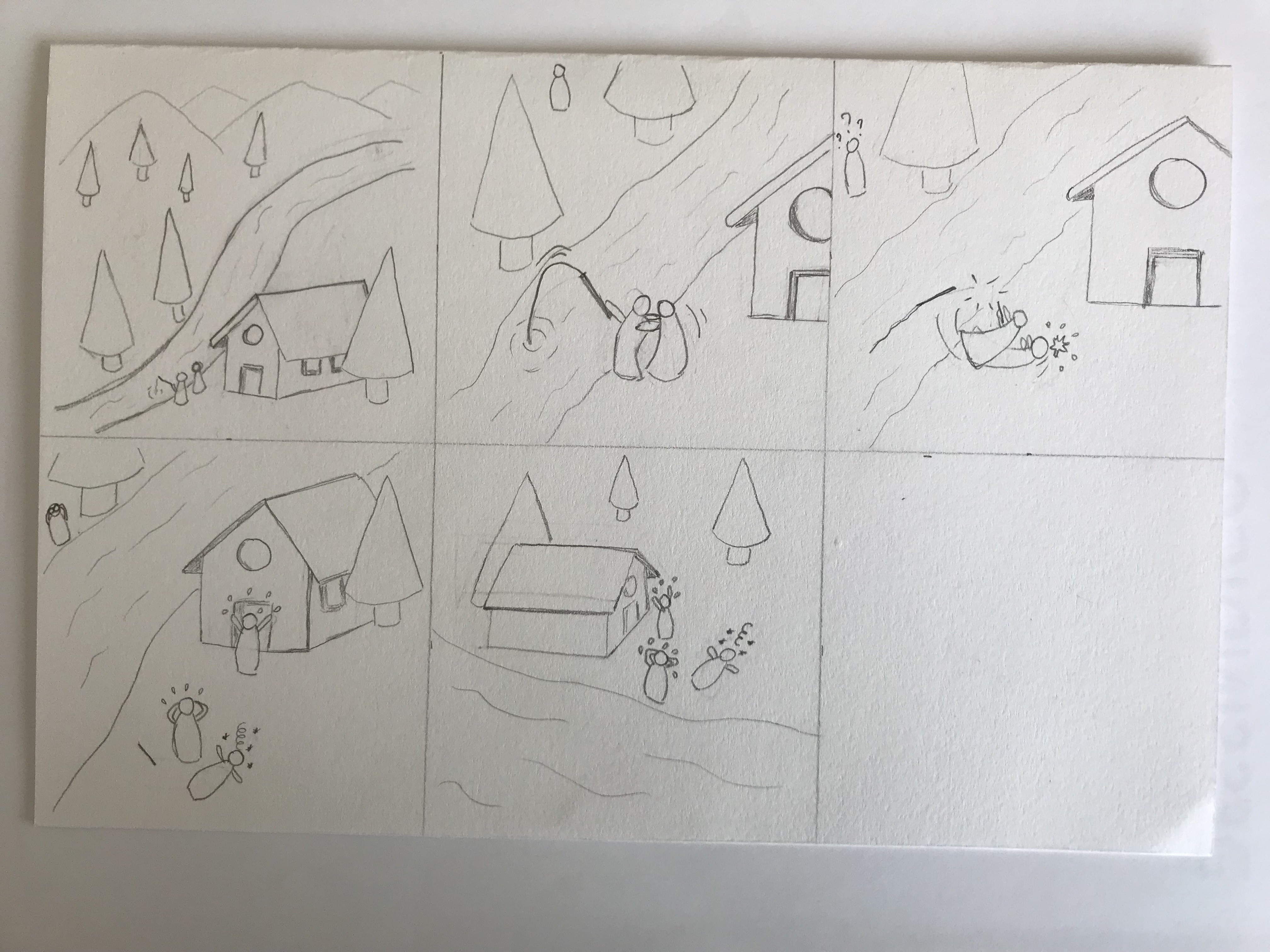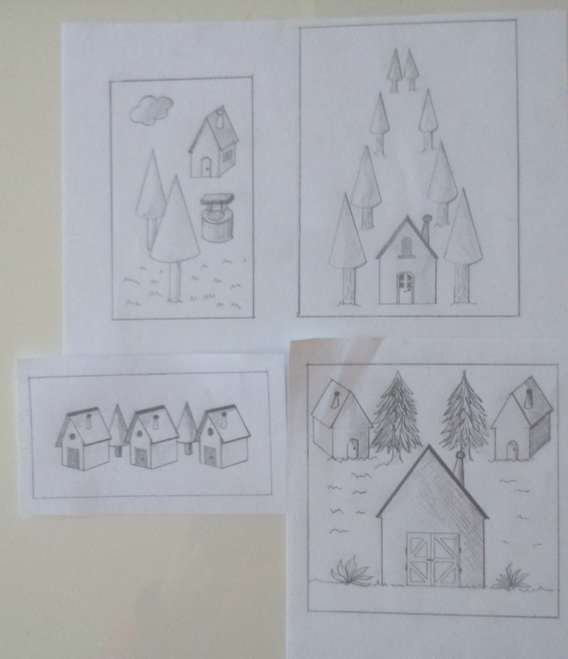 Voici mes magnifiques essais de composition 😁! Pour ce qui est de la cascade, la 5 est un peu à tirer par les cheveux, mais bon 🙂. Chouette exercice, vivement la suite!