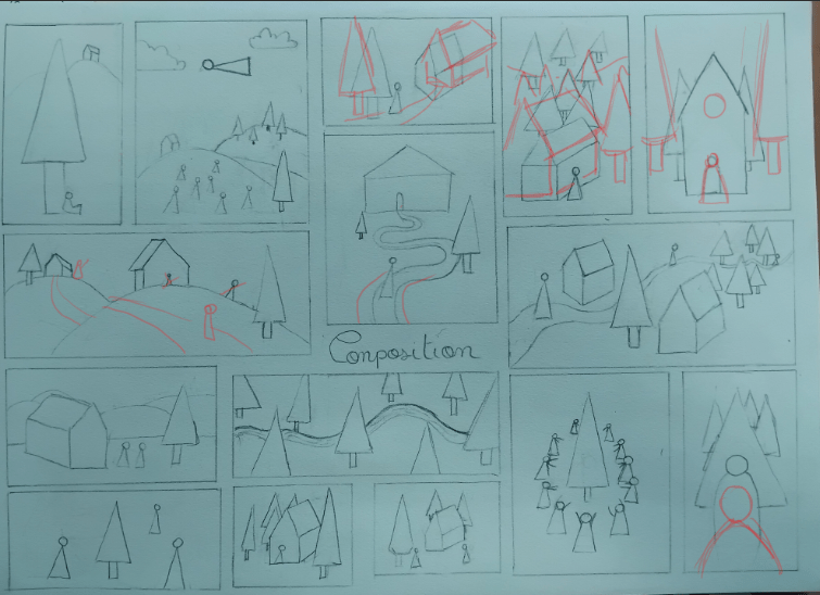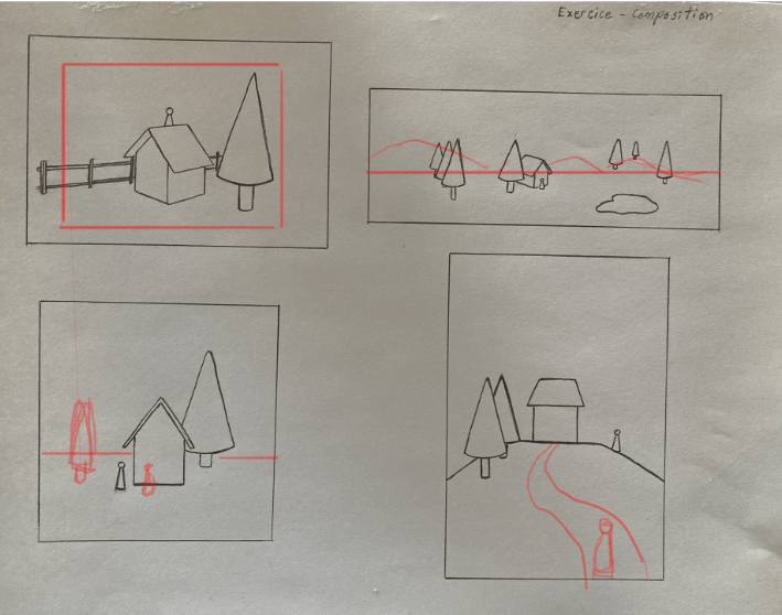 Deux petits conseils bonus, aide toi des différentes règles de compositions pour t'amuser à placer tes éléments et que ça fonctionne et lorsque tu dessine un bâtiment, fait en sorte qu'il soit plus haut que la ligne d'horizon, ça rend mieu de cette manière :)