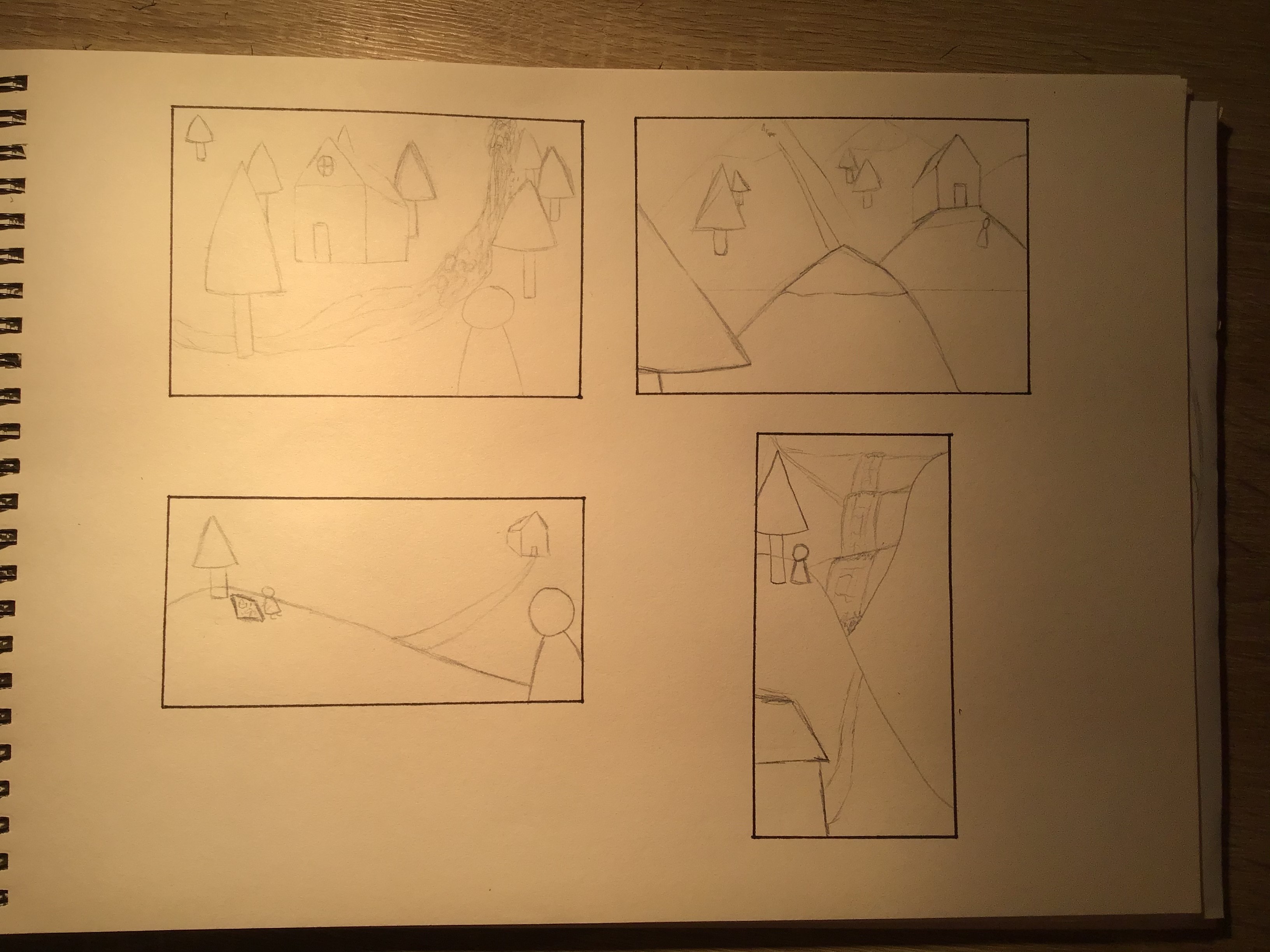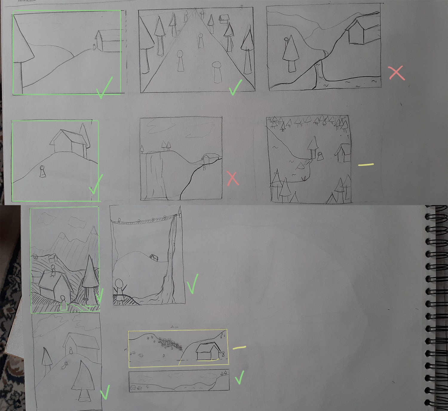 Pour celles qui ne fonctionnent pas, ce sont des soucis de logique, où se trouve la maison, pourquoi certains plans semblent être d'un certain angle puis lorsqu'on regarde un autre élément dans ce plan, en fait non. Ce sont des soucis de compréhension de l'espace globalement, mais dans tes bons cadrages tu te débrouilles très bien. Ça peut être intéressant que tu cherches des photos avec des vues similaires à ce que tu souhaitais faire sur tes compos moins abouties pour peut-être comprendre ce qui clochait ^^