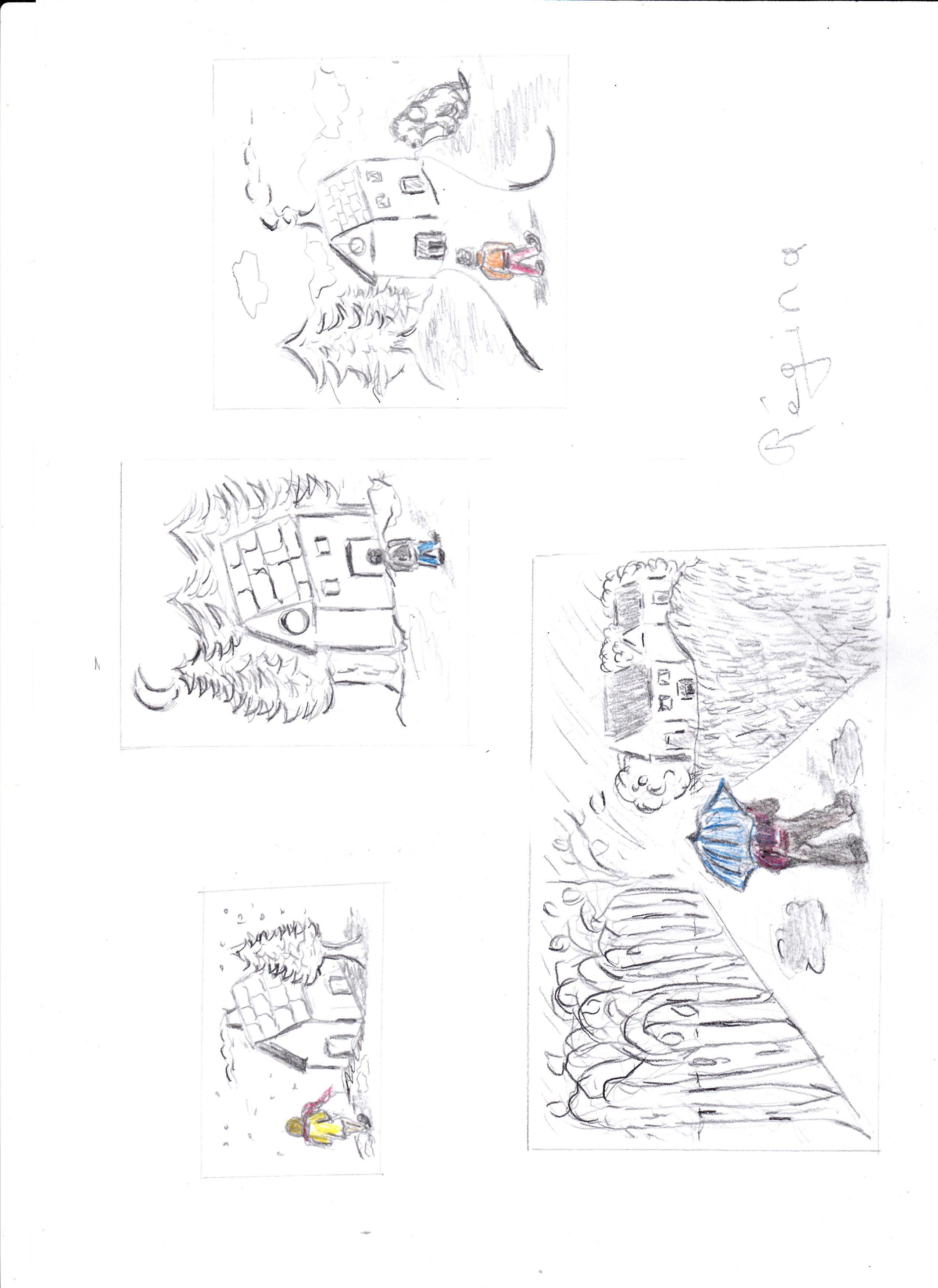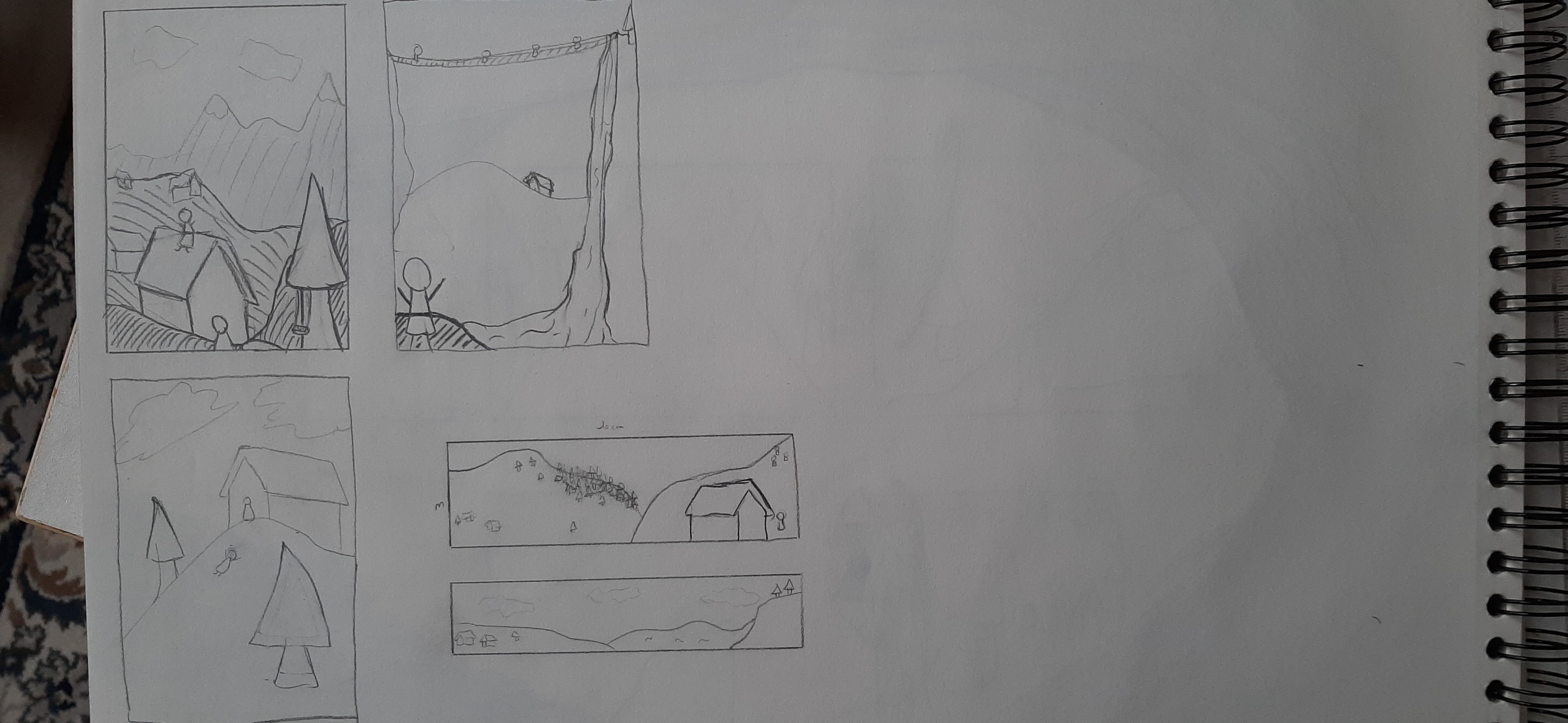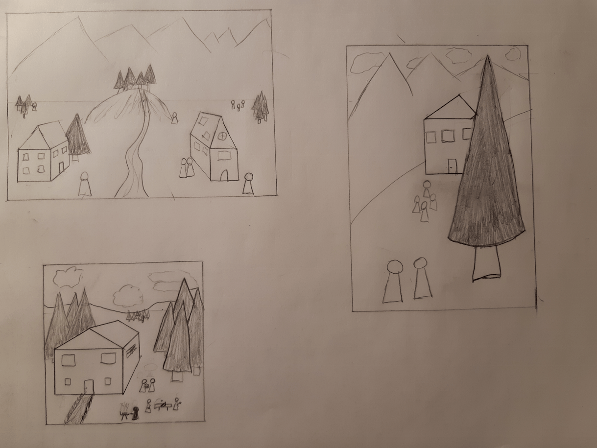 Puis les deux dernières, on voit la maison en face avec le bonhomme devant donc la chute de la cascade aussi. Peut être que le fait de ne pas voir la rivière derrière la maison est une erreur de ma part, je ne sais pas.