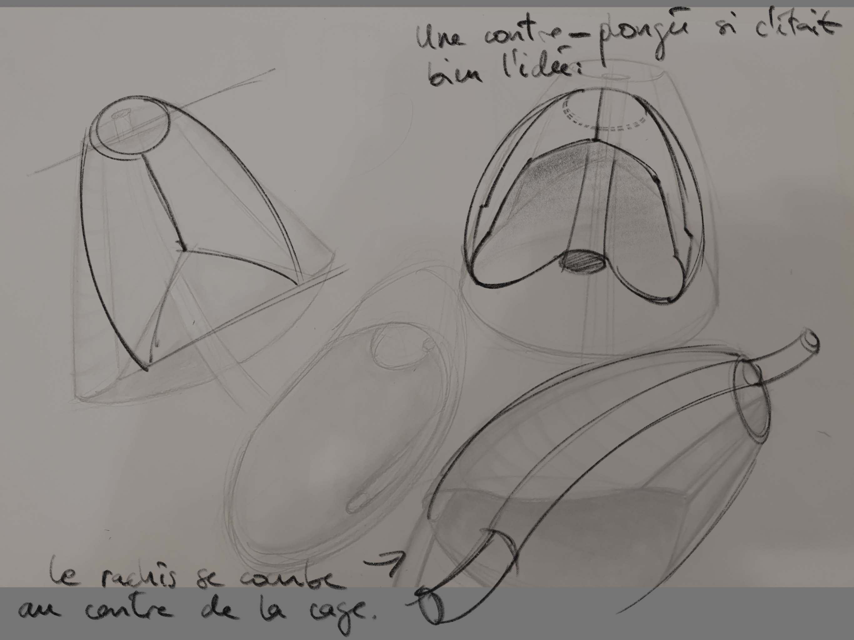 Pas évidente la cage... Le rachis passe bien au centre en se courbant. Arrondit bien la forme ue fois ta construction mise en place. Même si j'ai insisté sur la forme de boite et pas celle d'un oeuf, essaye de conserver le côté courbé :)