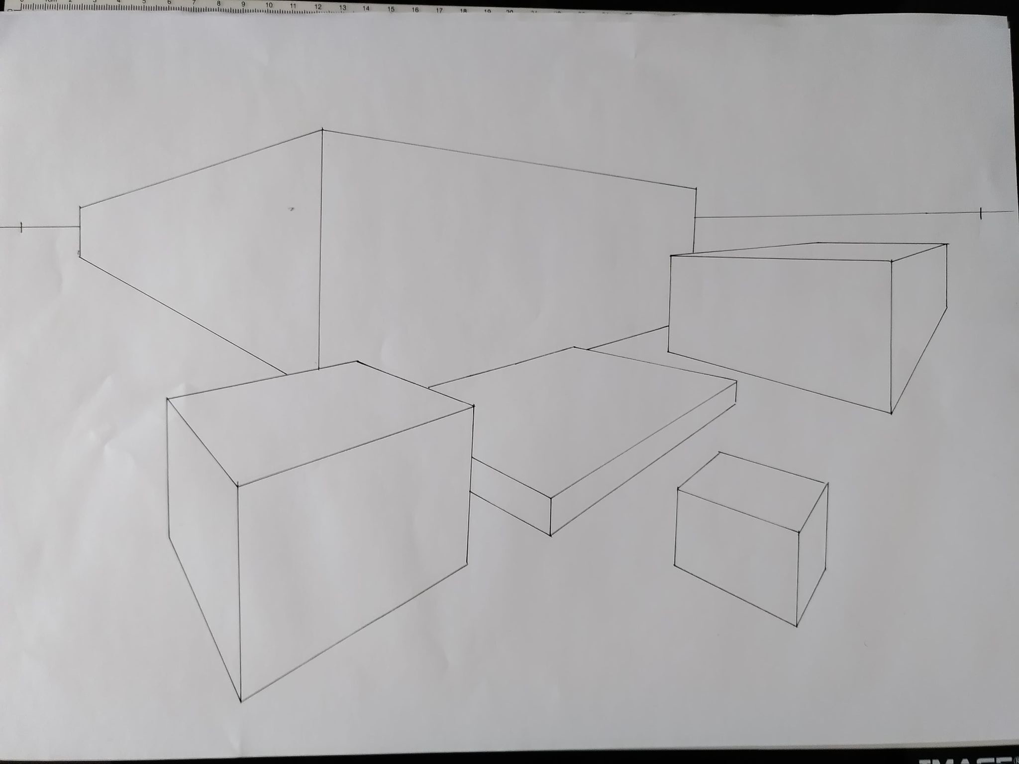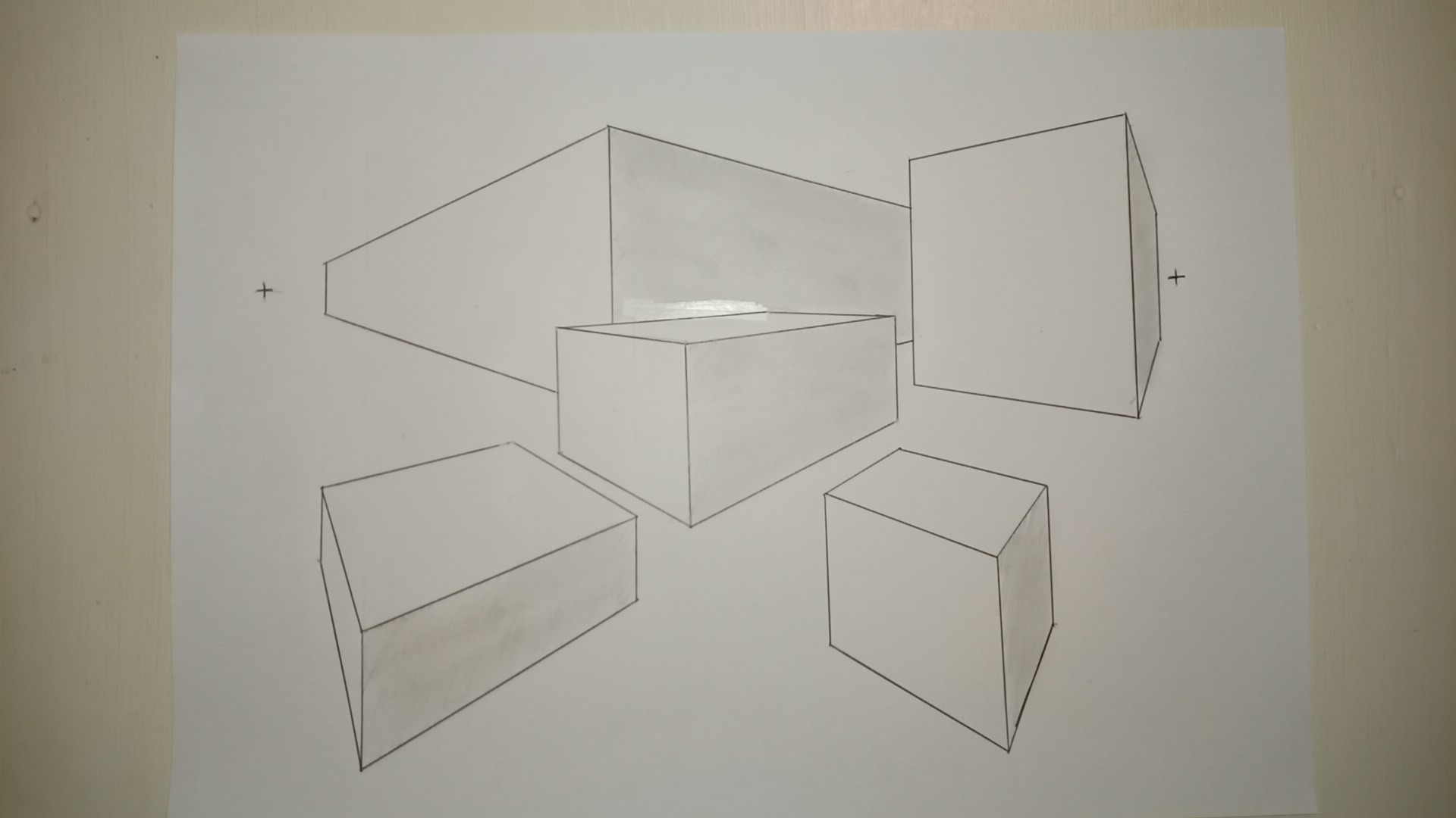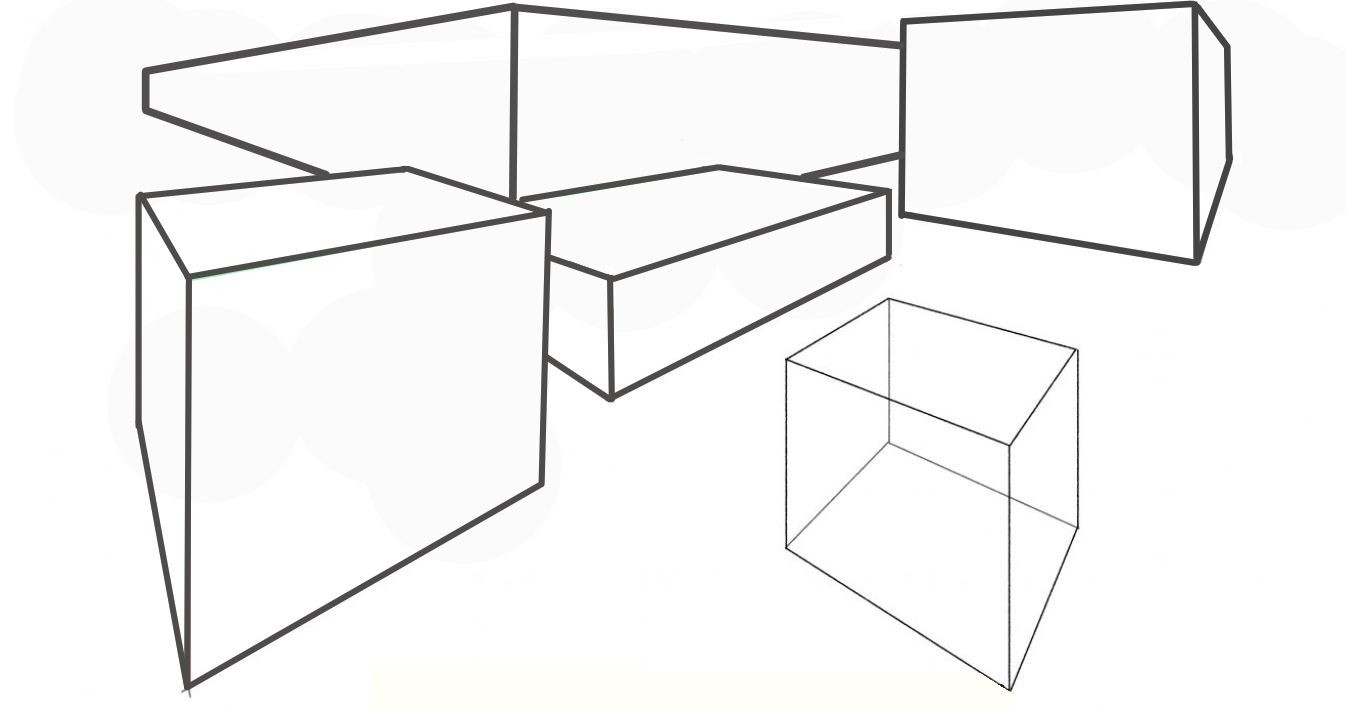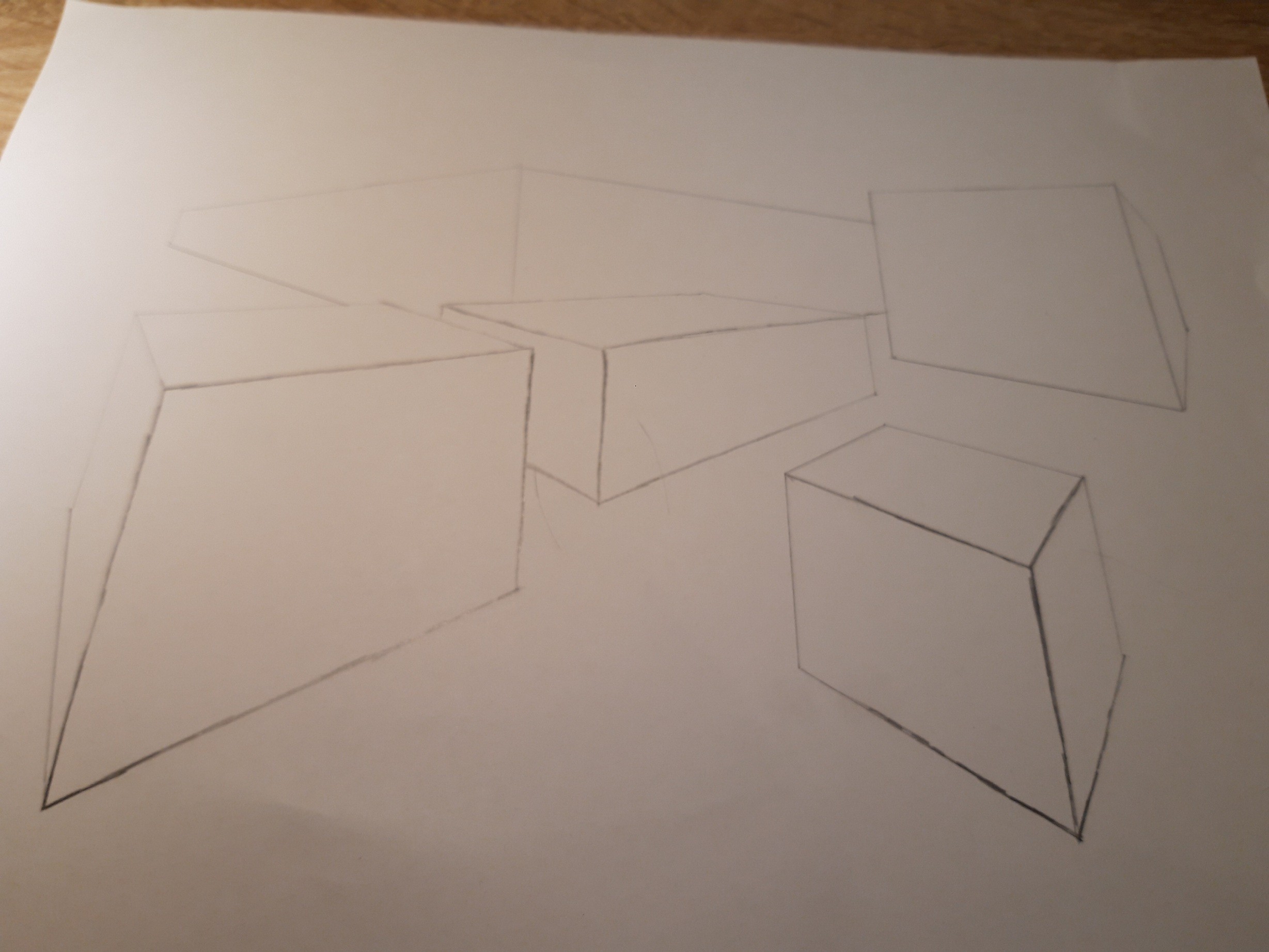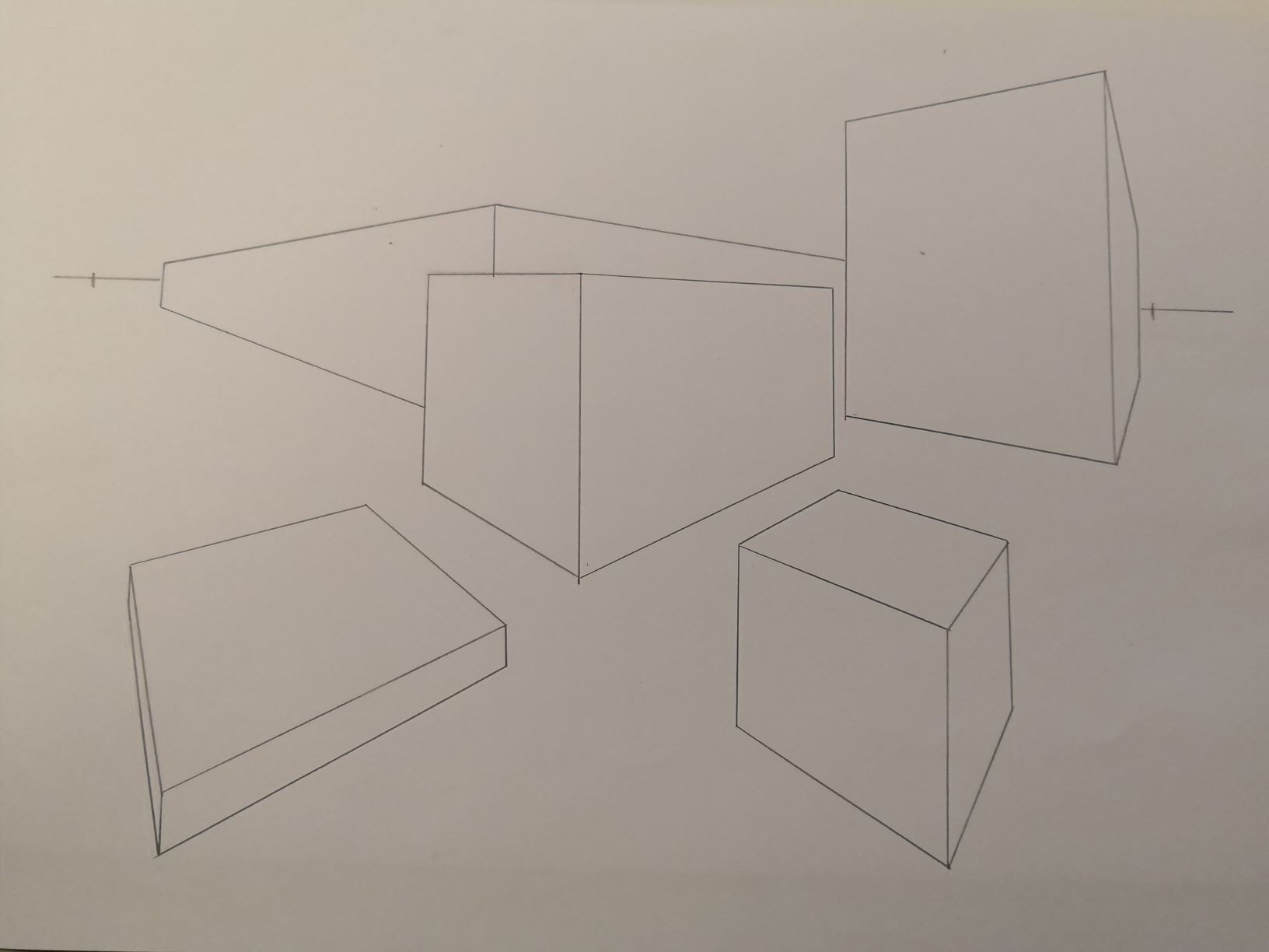 Alors, c'est bien mais attention : si on considère que tous les blocs sont posés au sol il y a un problème de logique; le grand bloc de gauche devrait être tout derrière au lieu de passer devant celui de droite. Si on considère que le bloc de droite n'est pas posé au même niveau que les autres mais un peu en dessous, ça marche.