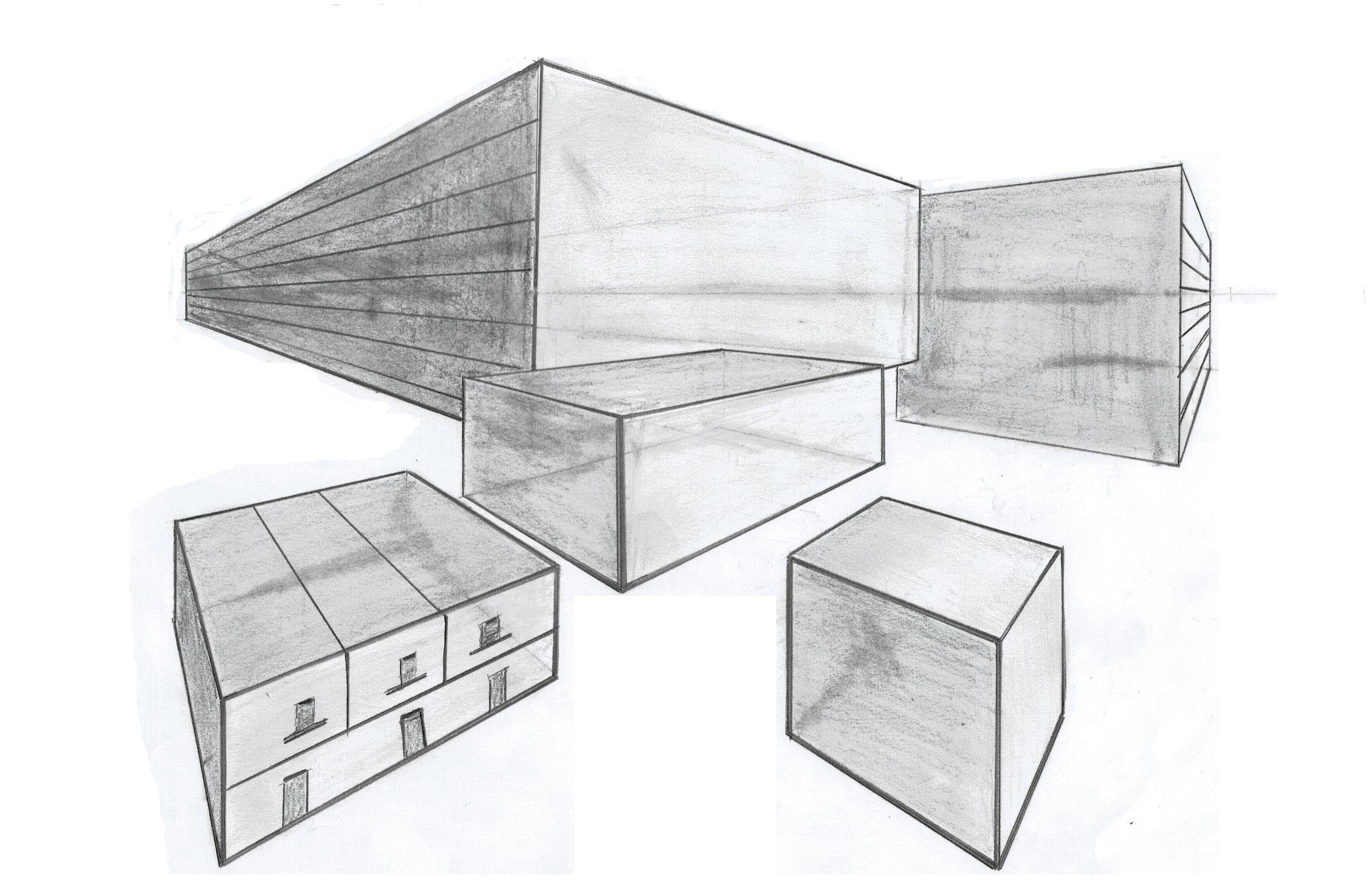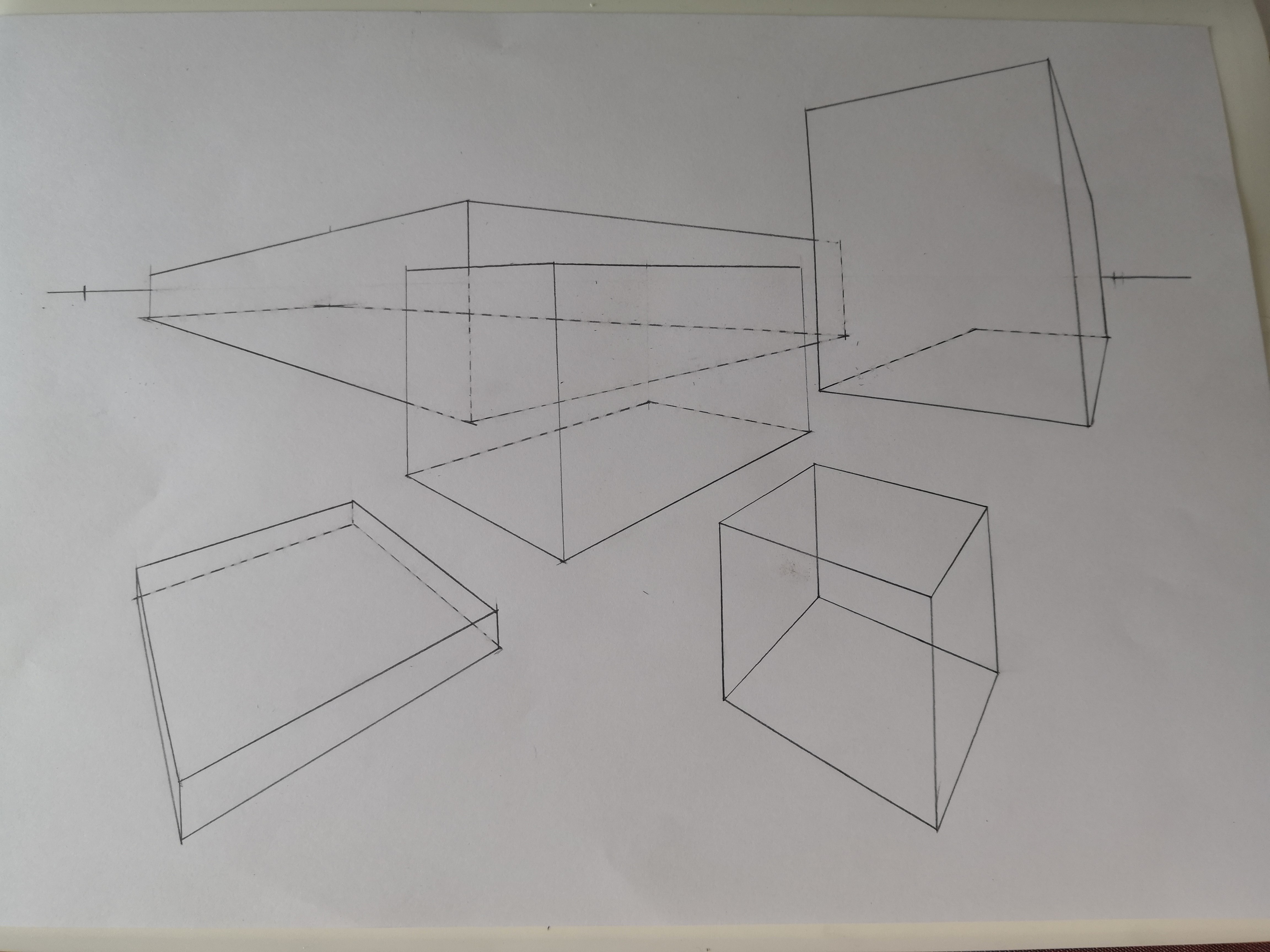 J'espère avoir bien saisi le travail de perspective, j'ai mis les 2 versions avec pointillés et en trait plein afin de voir un peu ma logique de construction ^^