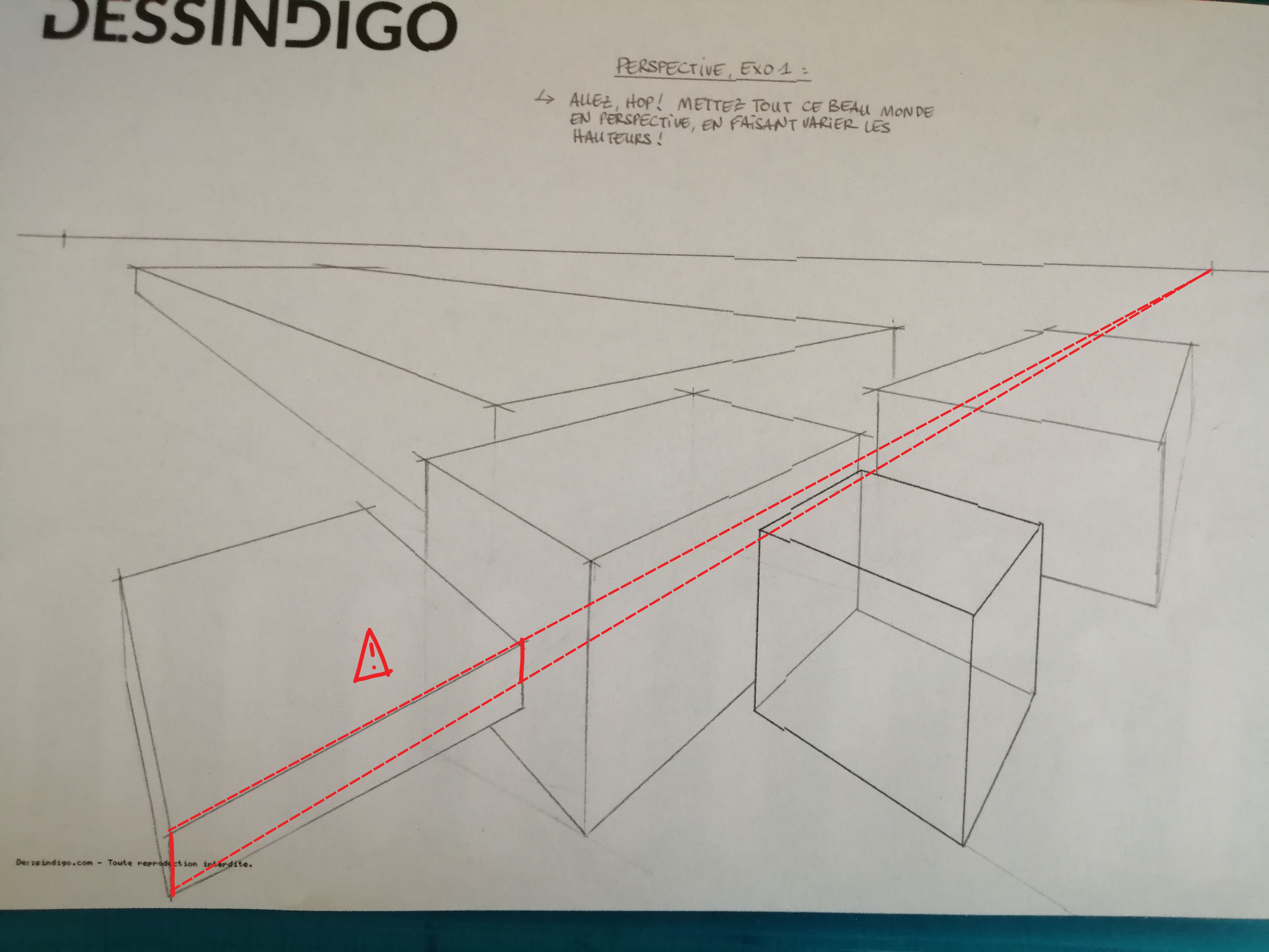Je pense que c'est l'angle de la photo qui fait ça, mais j'ai l'impression que tes traits verticaux de tes volumes au premier plan ne sont pas droits.