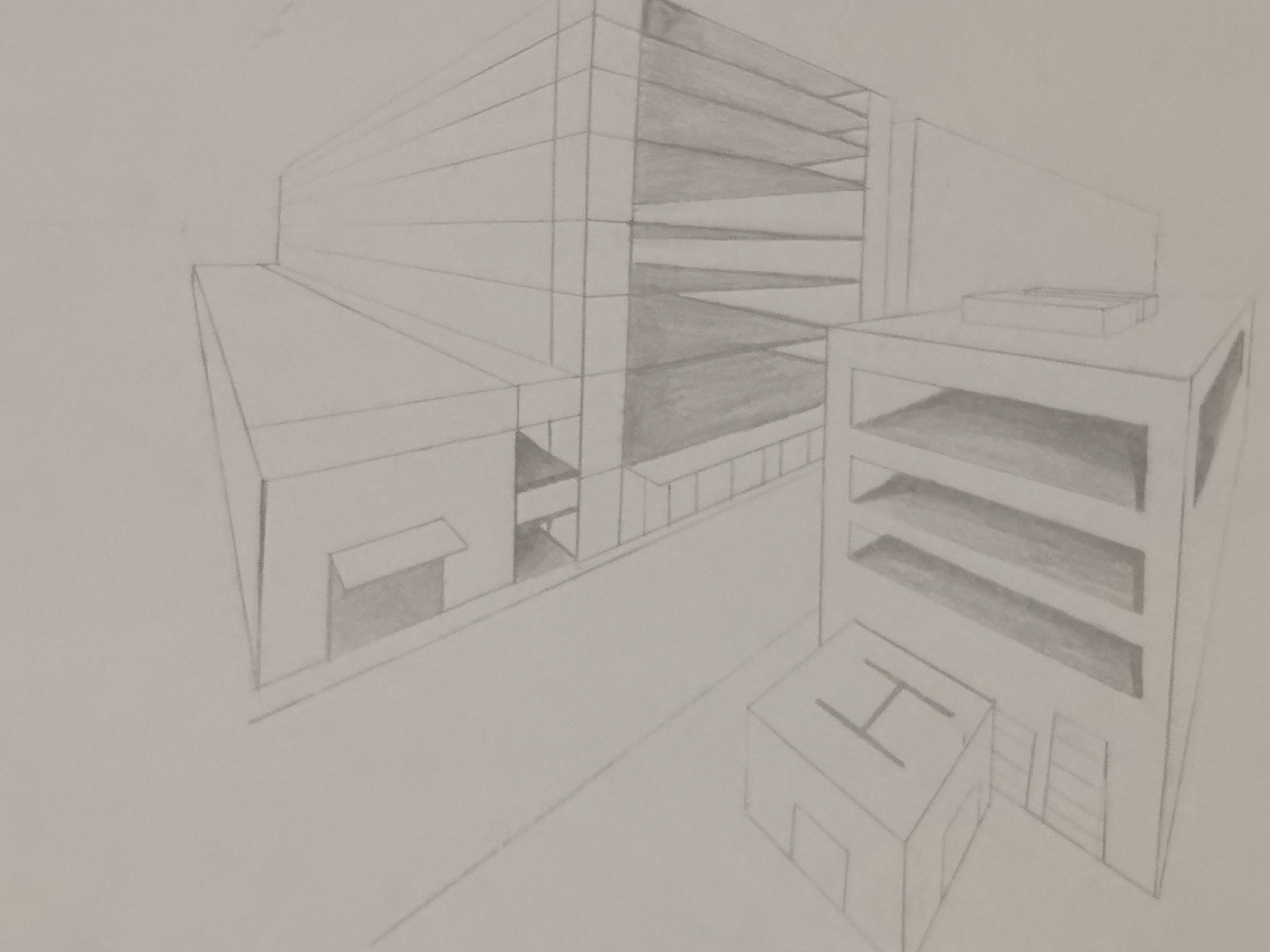 Tout m'a l'air juste sur ton dessin en tout cas, si tu veux améliorer tes étages du grand bâtiment, il faudrait ajouter une petite épaisseur à tes étages pour leur donner du volume 😉