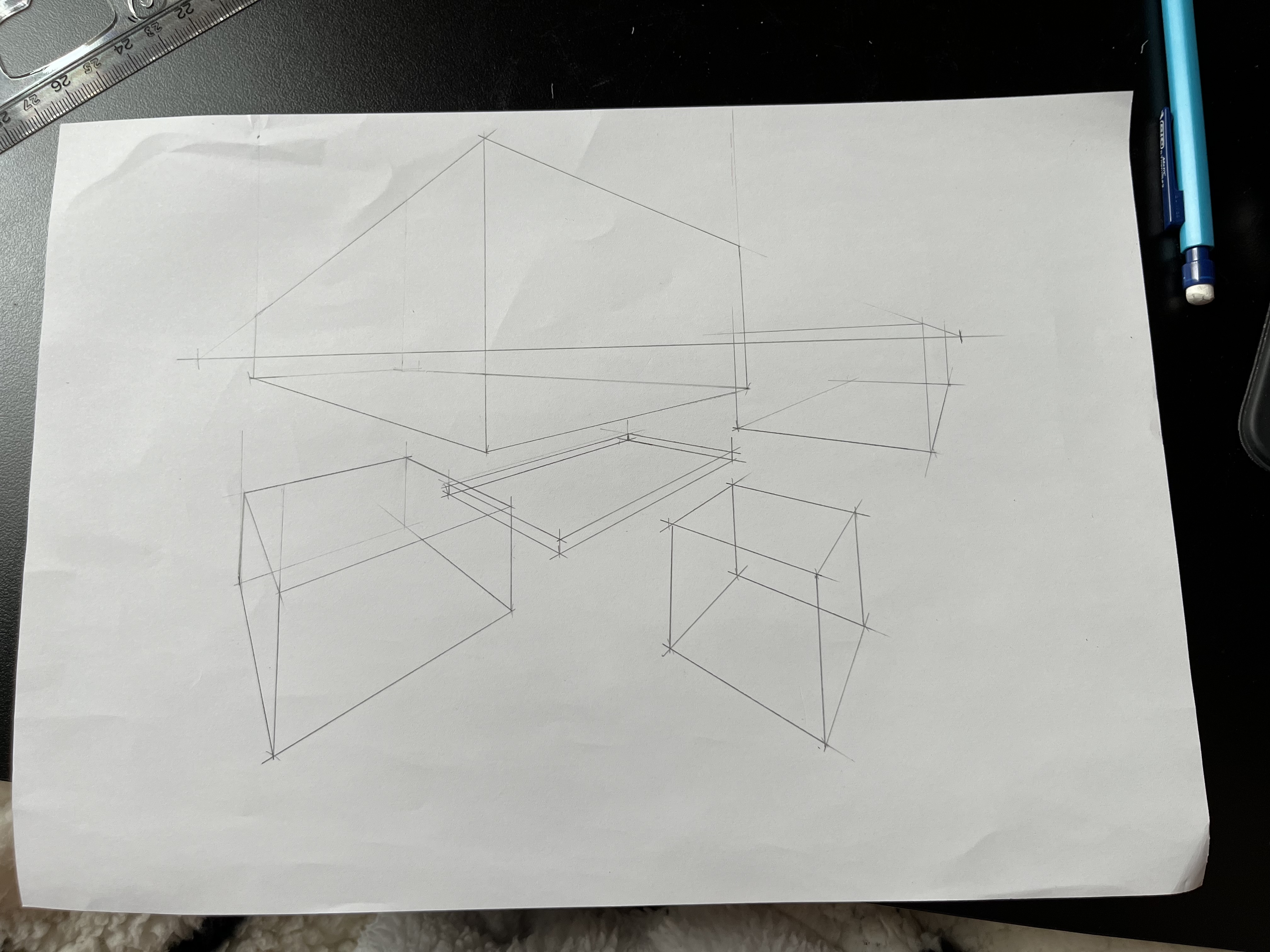 Salut Ciou, c'est très bien! Après, fait juste attention à ce que des lignes de fuites ne se superposent pas de trop comme avec les deux cubes du premier plan à droite (la ligne de fuite du sommet de l'un se confont avec la ligne de fuite de la base de l'autre), quand tu fais une perspective avec des éléments en lévitation.