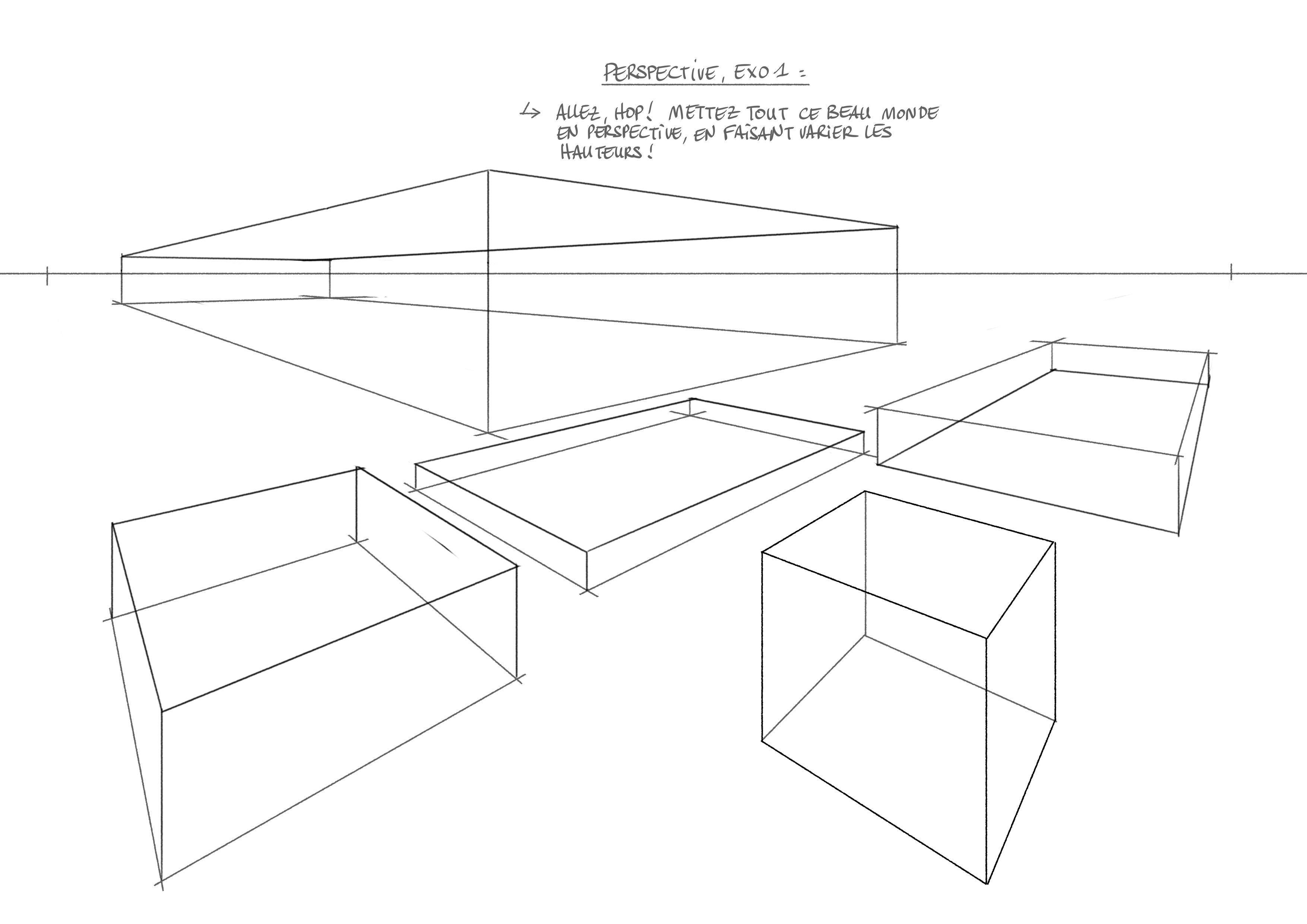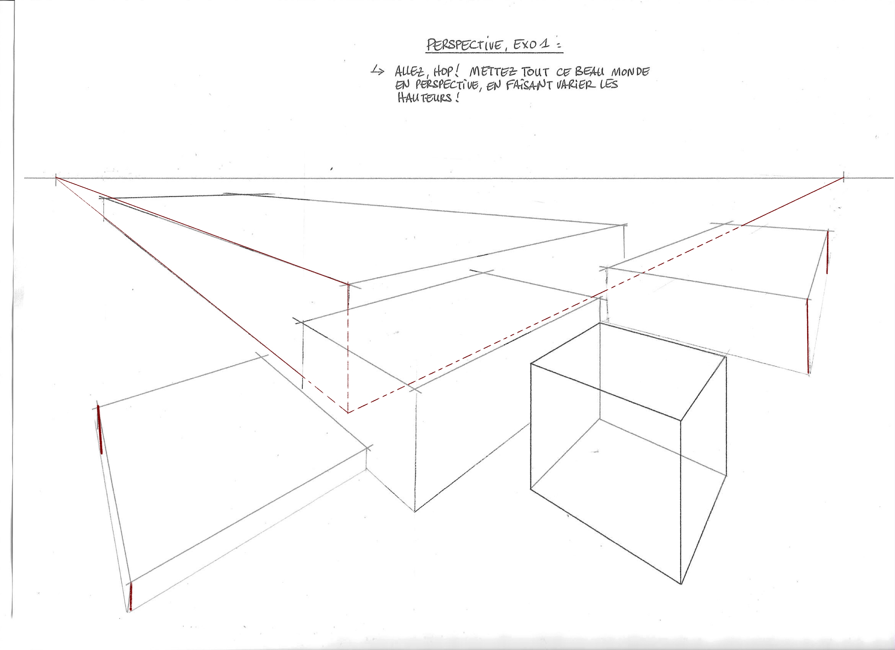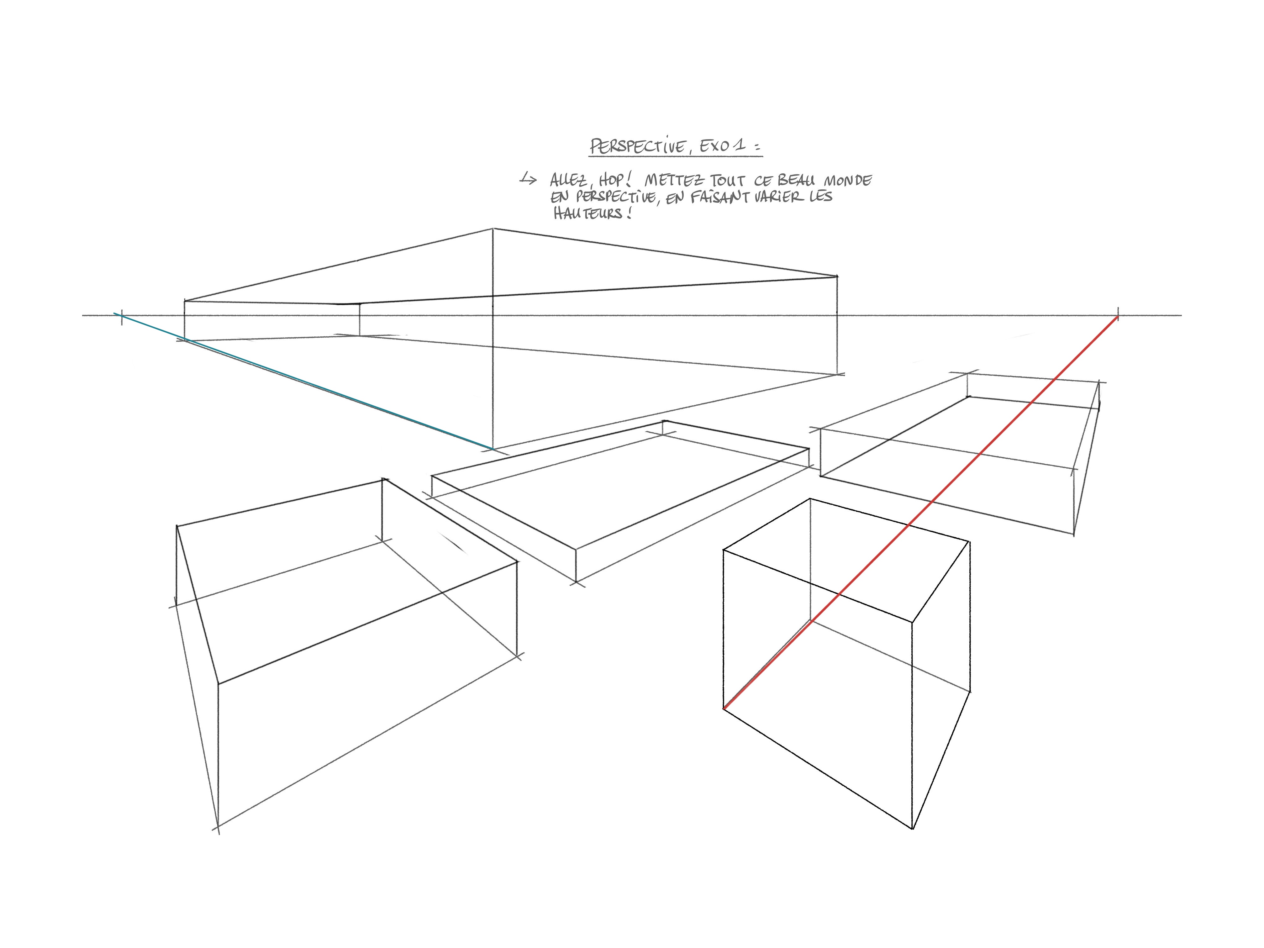 Super Densie, les lignes de fuites sont correctes! Attention malgré tout aux verticales, essaie de les faire bien droites pour ne pas fausser les proportions et l'équilibre. Petit détails la ligne de fuite de la base du gros rectangle du fond devrait être visible entre les deux cubes devant, sur la droite. À part, c'est du beau boulot!