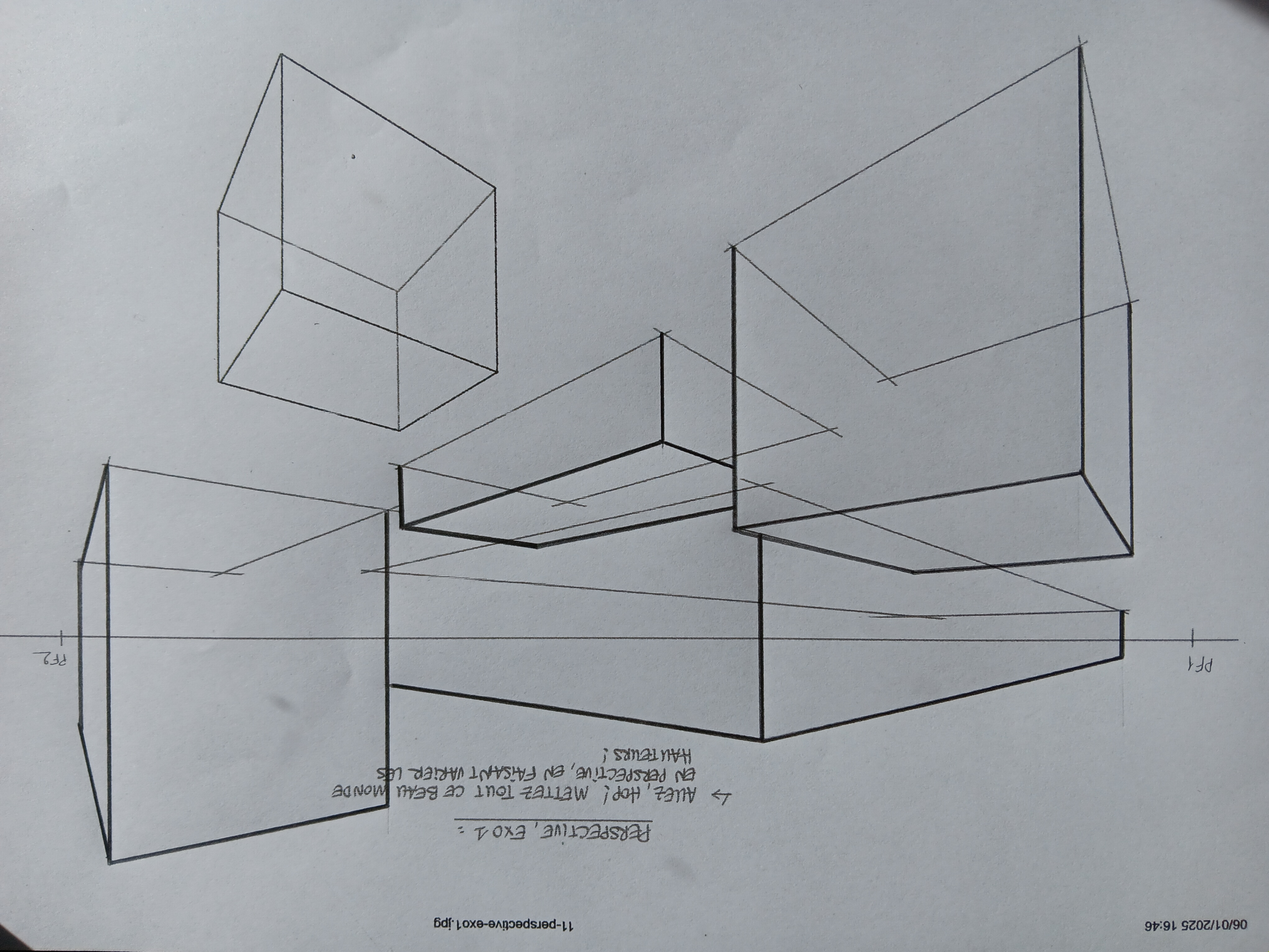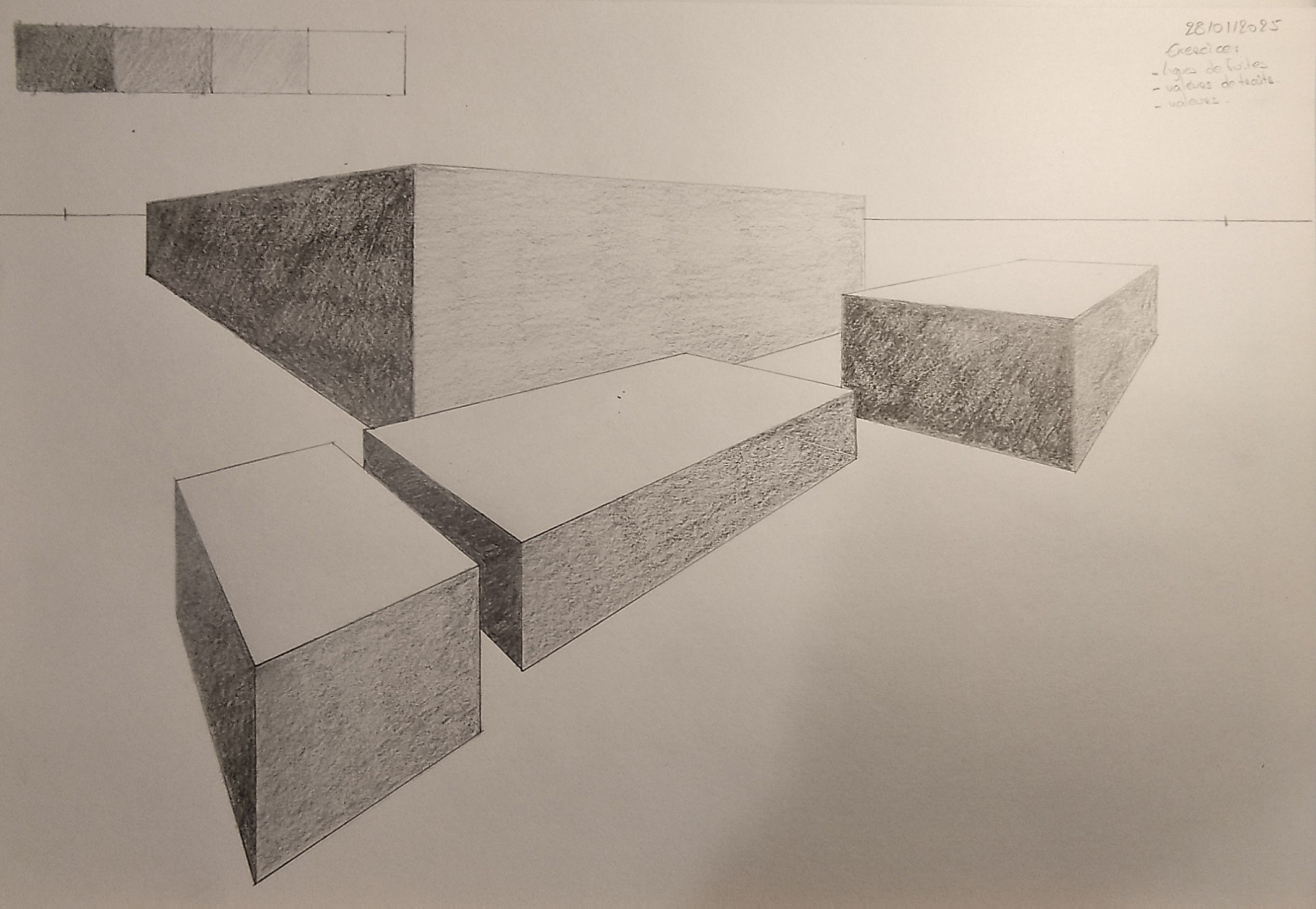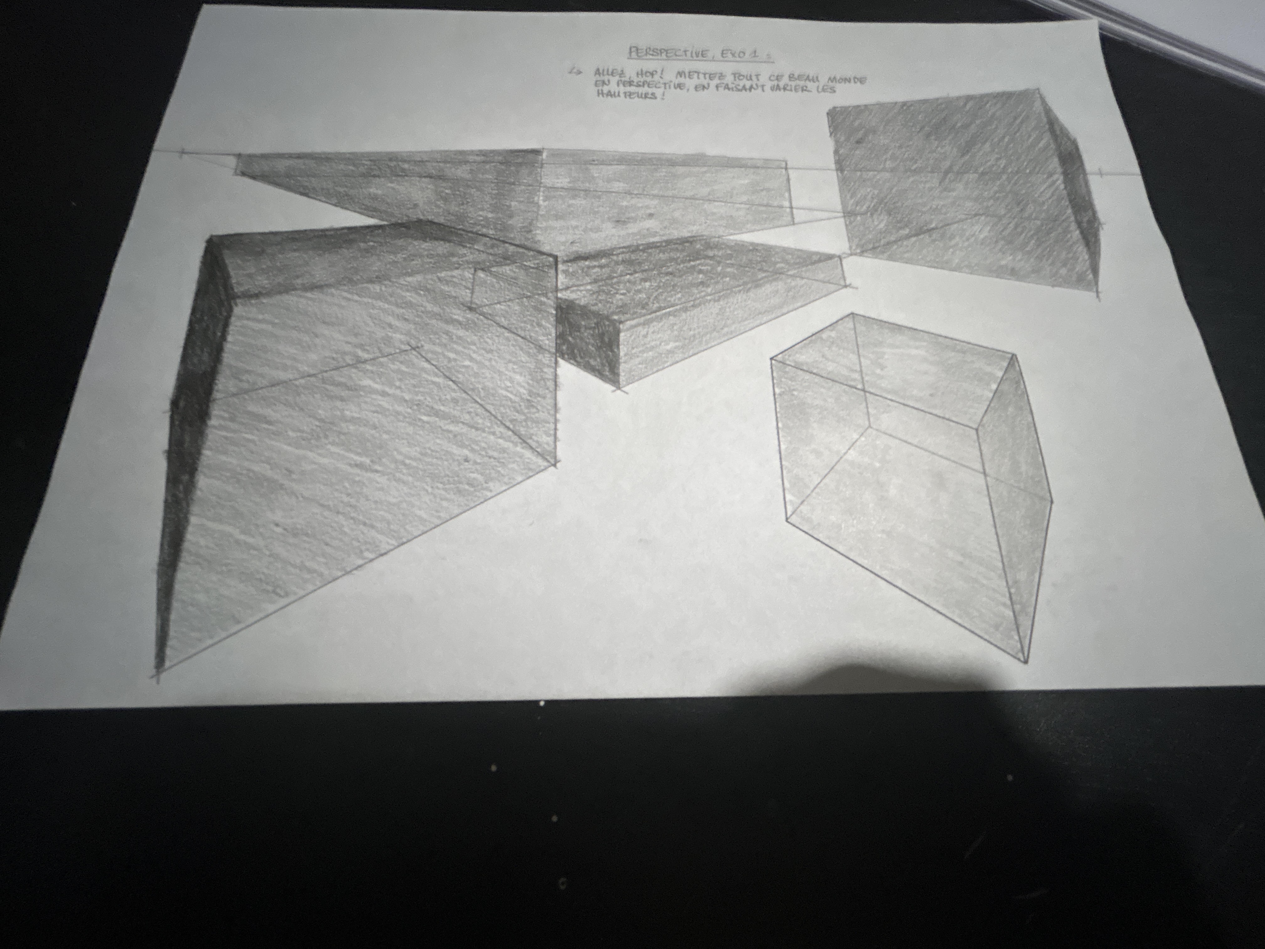 Hé ben, moi je le trouve très réussi cet exercice! Aucune erreur de perspective, et tu t'es cassé la tête à placer des ombres aux différentes surfaces! C'est du bon boulot! ^^