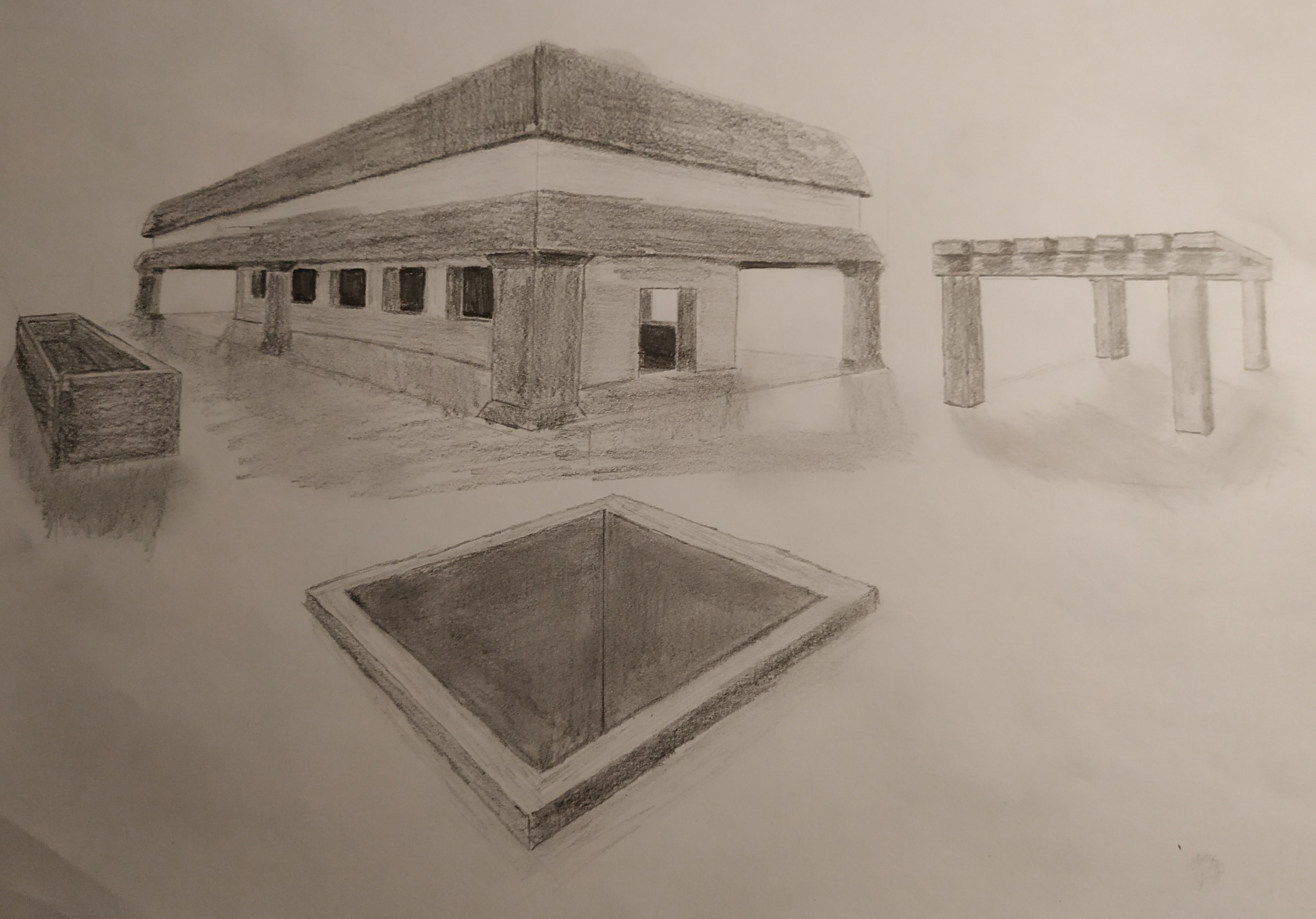 J'ai essayé d'appliquer les consignes en utilisant différentes valeurs de traits mais je n'ai pas osé mettre plus de gris au risque de "tout gâcher" mais je travaille mes hachures et échelles de gris.