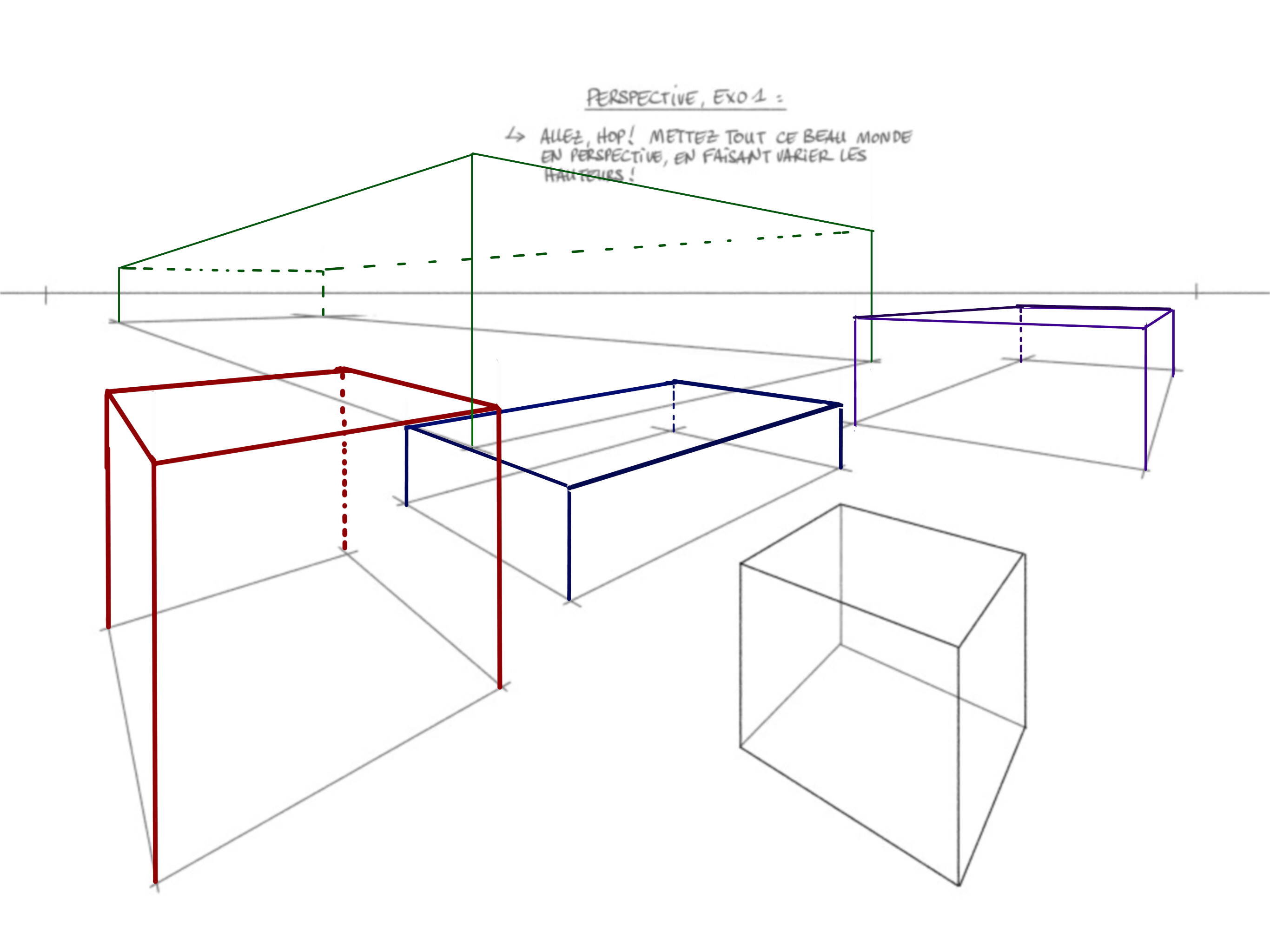 Point de fuite 2 : droites horizontales frontales