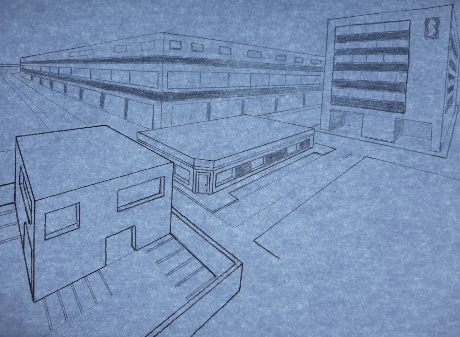 Mon exercice en perspective, j'ai rajouté des effets de couleurs et des tentatives de jeux de lumières.
