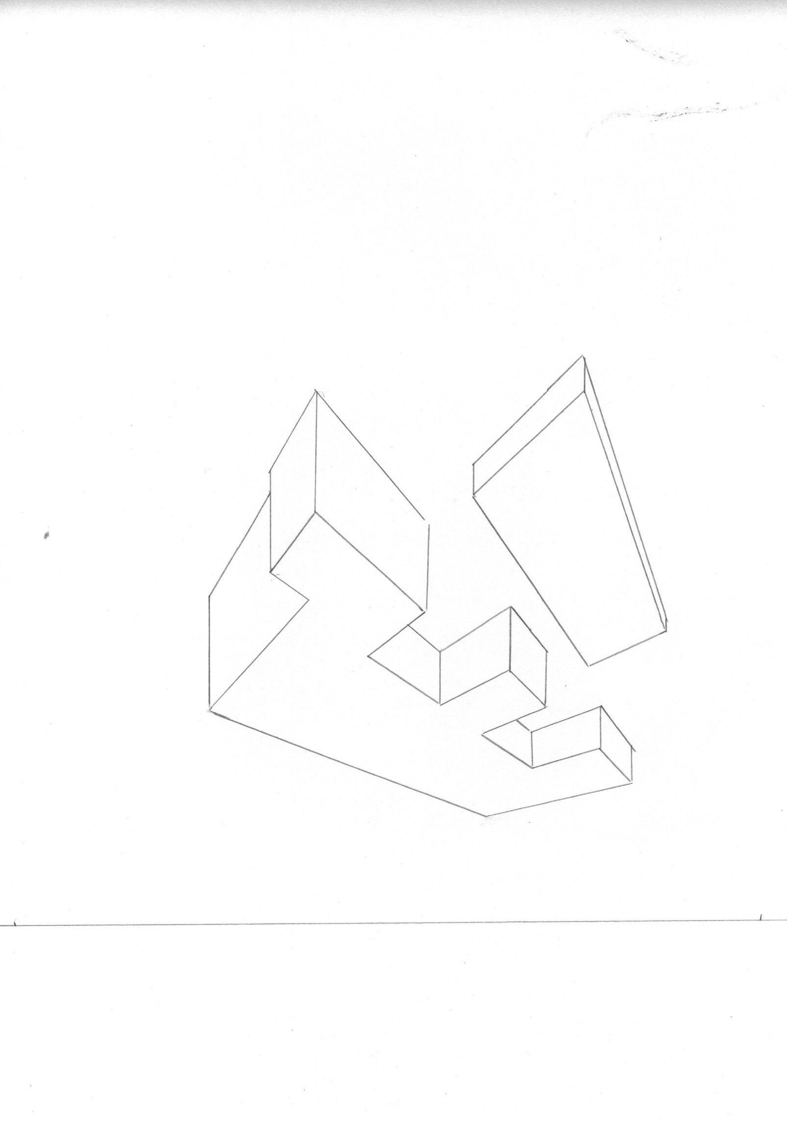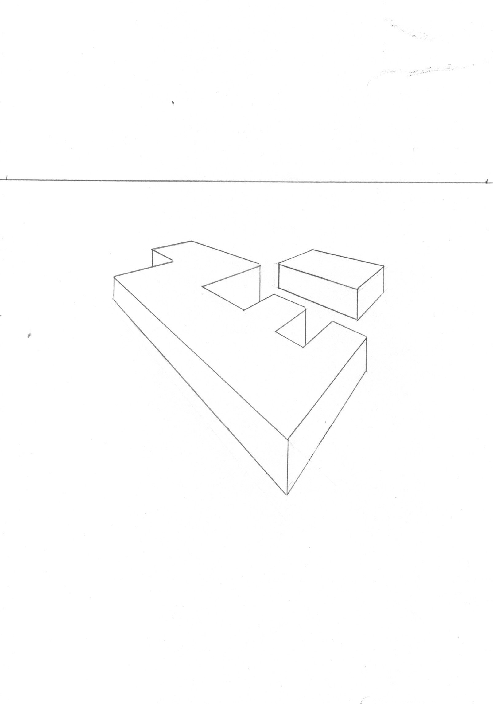 J'ai fini par comprendre ! Tu as bien dessiné ta forme en perspective mais ensuite quand tu l'a monté en volume, tu as fait comme si on l'a voyait du dessus (et que la partie en bas était la plus proche de nous) alors que ton objet est au dessus de la ligne d'horizon ! Je te joins une version corrigée, j'espère que tu verras la différence et que tu comprendras ce qui clochait :)