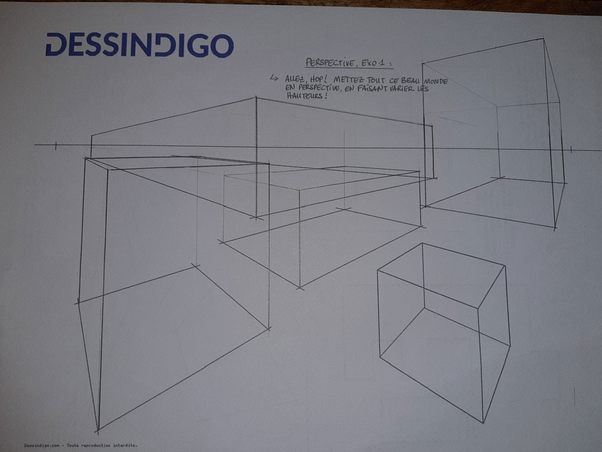 Tu aurais peut-être pu appuyer un peu plus sur tes traits, mais pour la perspective rie à redire ;) c'est nickel ! Enfin il y a un tout petit oubli de trait sur le pavé au milieu. Tes autres exercices sont parfaits également ! Bien joué !👍😉