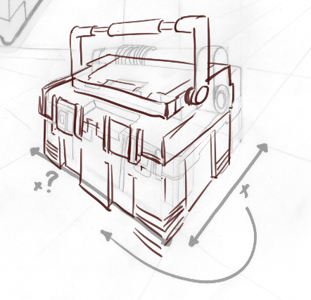 Oh oui tu ne t'es clairement pas facilité a vie avec des points de fuite aussi près sur un volume aussi complexe ^^' Je t'ai tenté une correction rapide (je ne peux malheureusement pas y passer trop de temps) et au final c'est surtout le coté poigné qui est corrigé, j'ai des petits soucis de proportions et de placement de mes fermetures :p