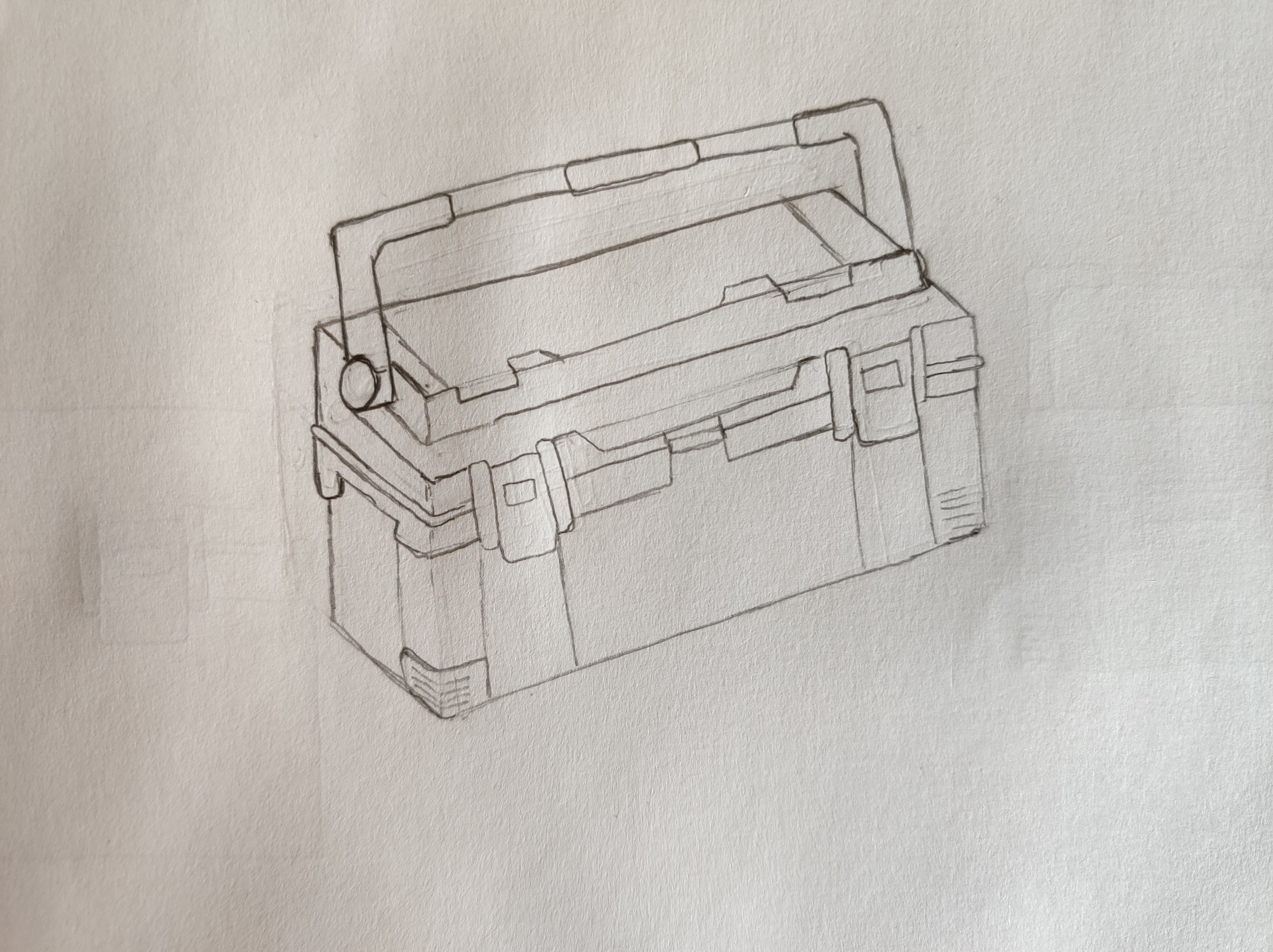 Pour ta vue 3D, c'était un peu plus compliqué en effet ! Ça manque surtout d'une certaine rigueur dans le trait, (des parallèles qui ne sont pas très parallèles, par ex si on compare le bord tout à gauche et les lignes qui descendent sous les fermetures) qui fait que ta mallette a l'air un peu tordue. Ça bug aussi un peu dans le fond du couvercle, il y a une ligne qui se continue malgré le renfoncement du couvercle, ce qui accentue le côté tordu, et donne l'impression que le volume n'est pas compris. Mais je pense que c'est principalement un problème de rigueur comme je disais, je te conseille donc de faire bien attention aux angles de tes traits pour ce genre de dessins très géométriques ^^