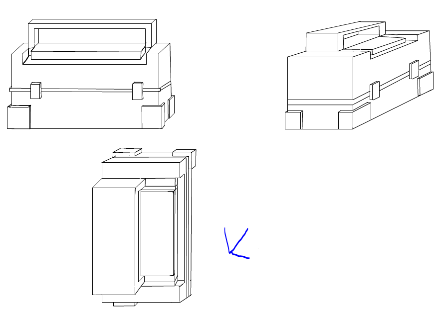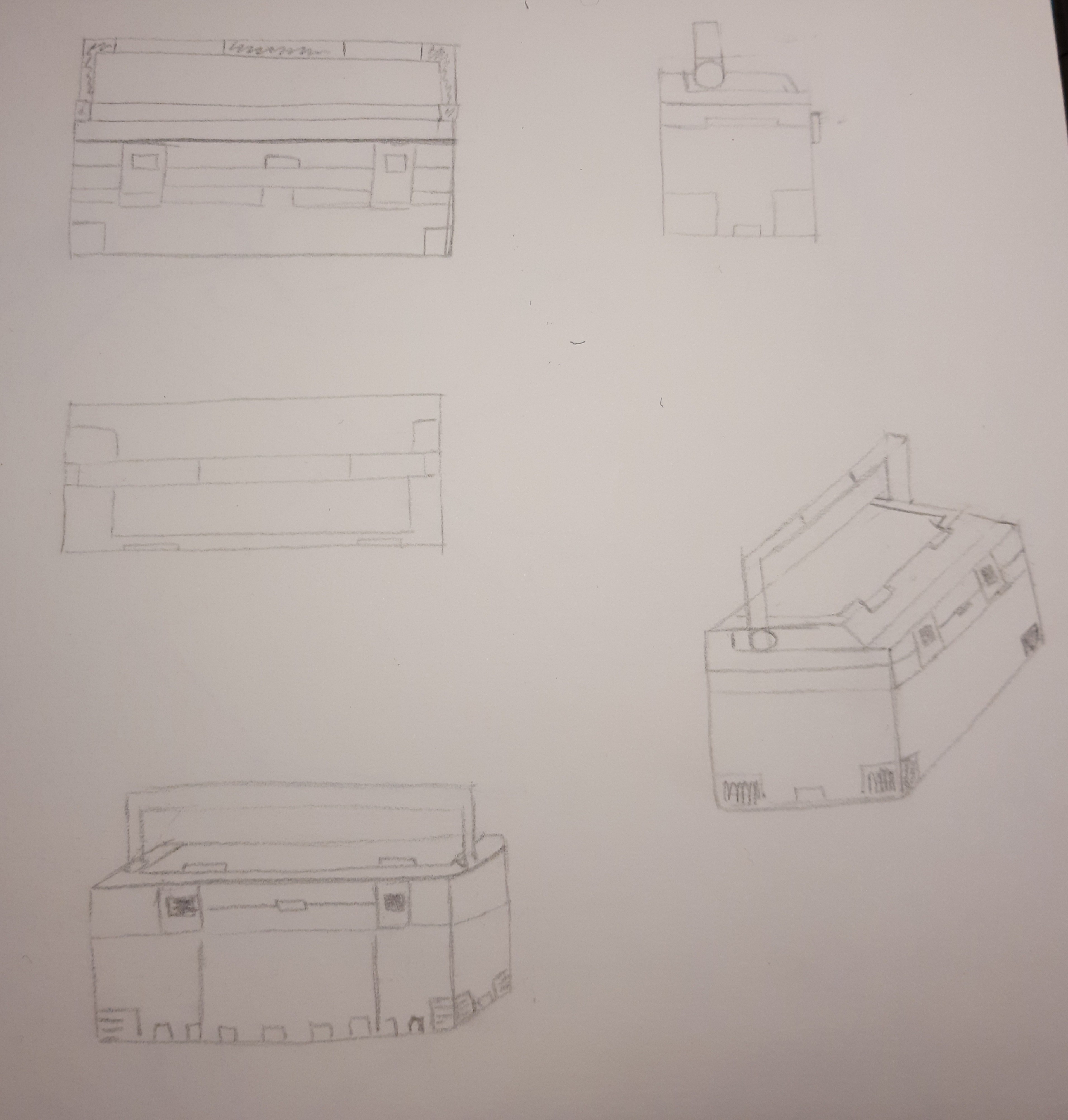 - Sur tes vues en volume, tu as le syndrome de la boîte en carton : où on dirait que tout a été peint sur une boîte plate, mais pas qu'il y a des creux et des bosses sur ton objet. Essaie de plus penser aux volumes (comme si tu creusais ou rajoutais de la matière) au lieu de juste placer les éléments !