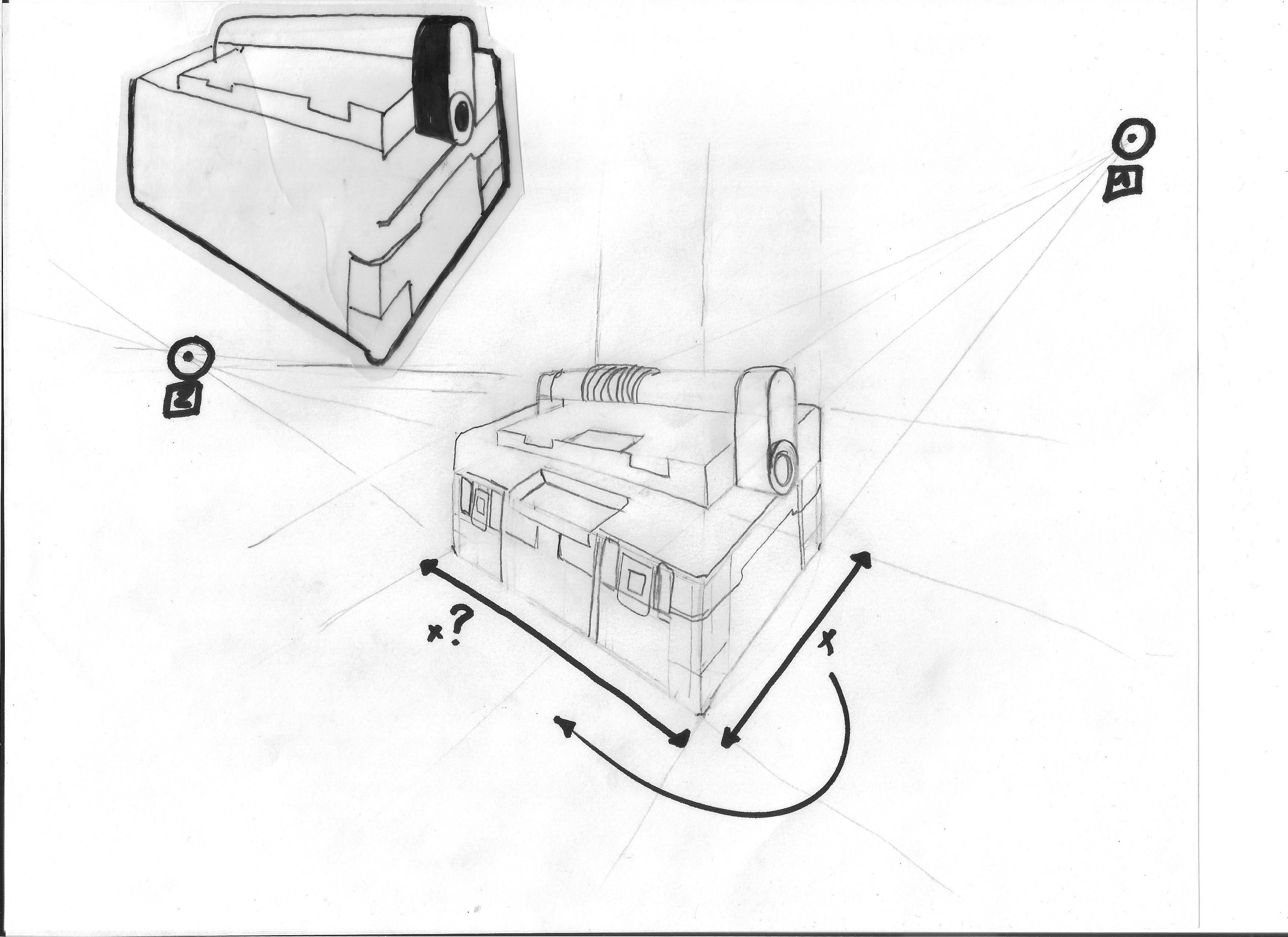 Dans une prochaine leçon de perspective il y aura des exercices de reports de longueurs, très utiles pour ce genre d'objet où on a un objet symétrique à mettre en perspective UwU