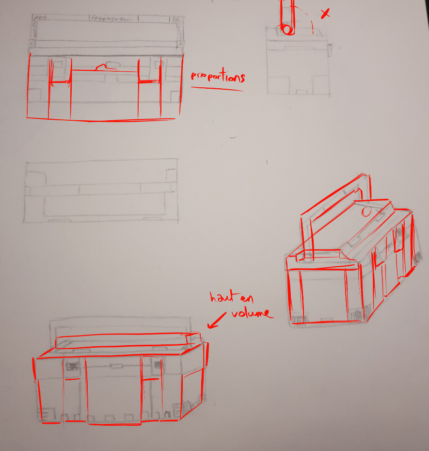 J'ai essayé de détailler la partie basse sur la perspective à 2 points de fuite ( bel entêtement).