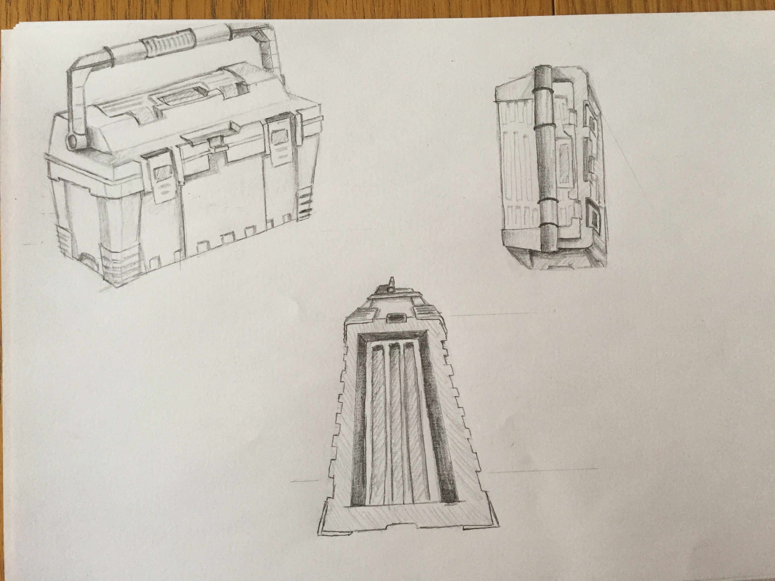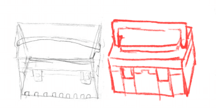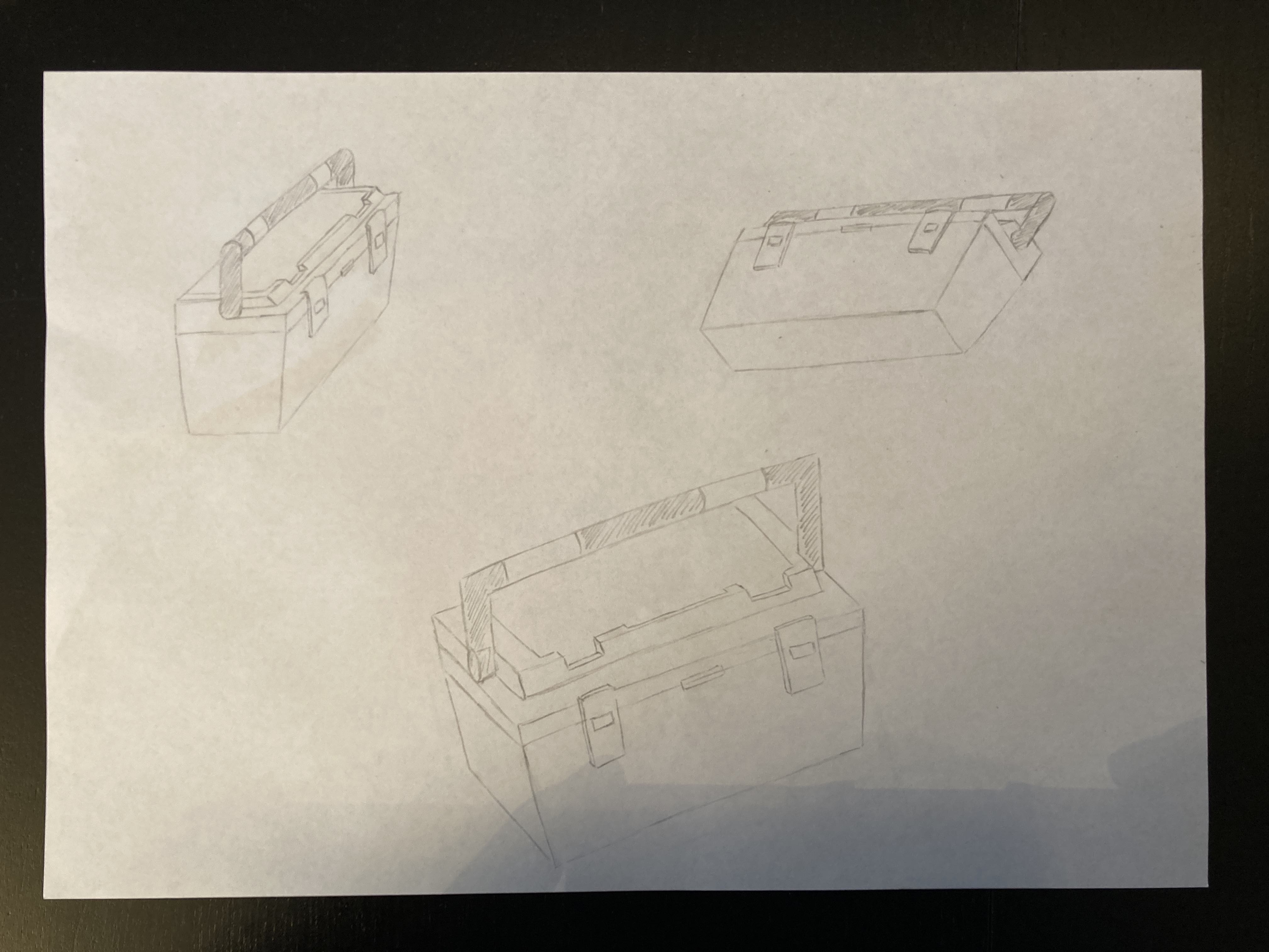 Tu es beaucoup allée dans les détails, ce n'est pas un mal puisque tu t'en es bien sortie, mais il manque juste une petite rigueur dans le trait car là, notamment sur tes deux vues du haut, ta boite à outils semble un peu "molle" ou "tordue", à cause de la structure qui n'est pas parfaitement droite.