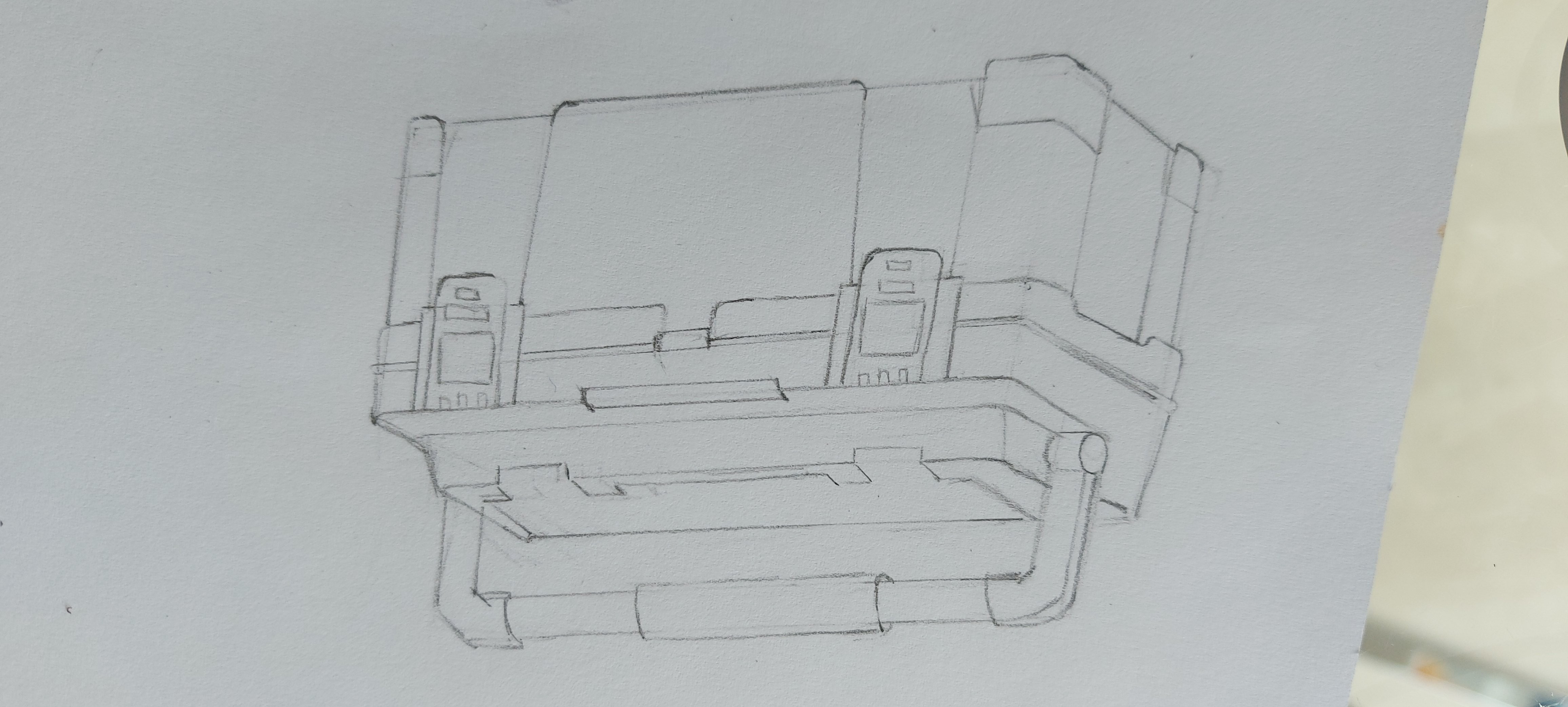 La seule chose un peu gênante que je vois c'est sur ta vue 2D de profil, la mallette semble trop large. La poignée n'est peut-être pas assez haute non plus, tout comme sur la première vue en volume, mais j'imagine que c'est en partie dû à la place insuffisante sur la feuille :p