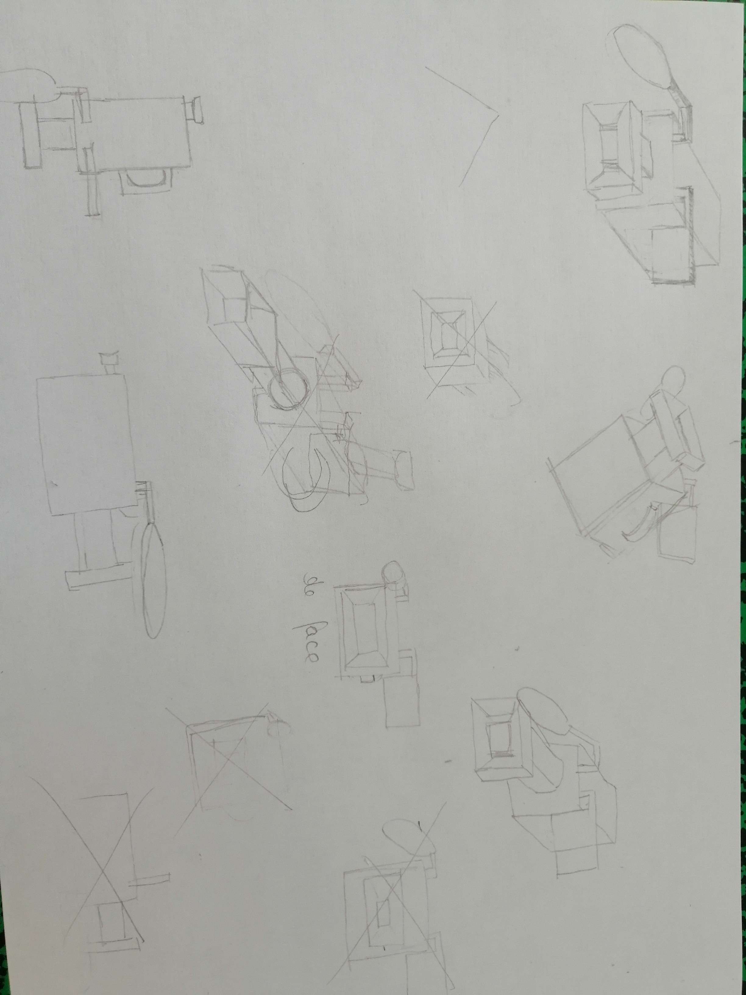 Les proportions sont un peu hasardeuses et variables d'une vue à l'autre, il manque des éléments (le viseur/oeilleton notamment, ainsi que la poignée - tu n'as pas très bien compris la manière dont les éléments s'attachaient sur le boîtier, ce qui ce comprend parce que ce n'est pas évident du tout haha), le micro est représenté avec une espèce de forme d'ogive alors qu'il s'agit plutôt d'un cylindre arrondi. Globalement l'embout de l'objectif est aussi trop aplati. Il est rectangulaire certes mais pas à ce point :)