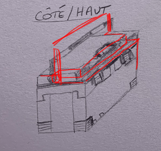 Petit embrouillage aussi au niveau de la compréhension du volume du couvercle (il y a une marge autour de la partie réhaussée, elle ne touche pas les bords latéraux)