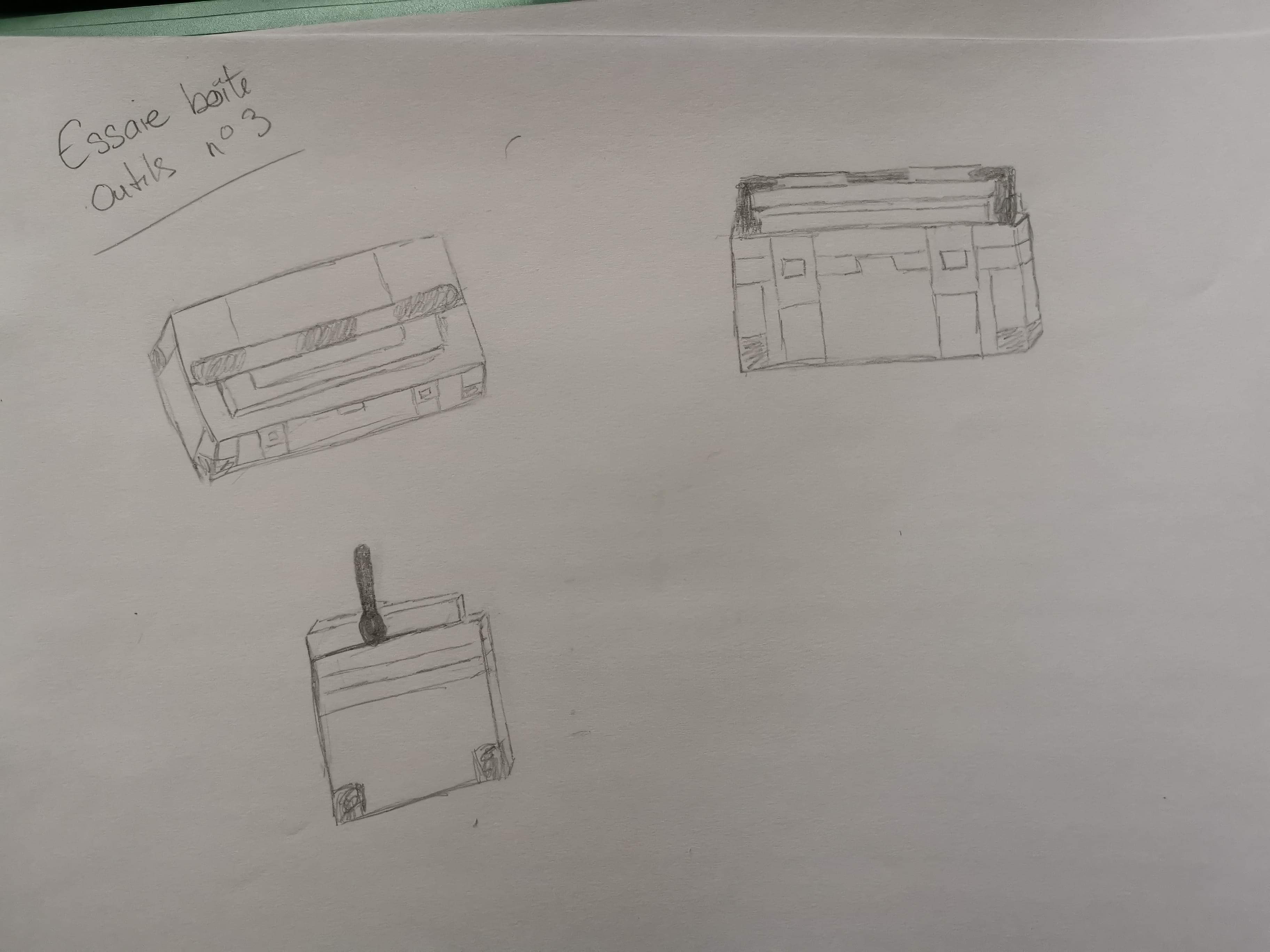 Voici mes essais sur la boite à outils ... je ne suis pas vraiment satisfaite mais mon cerveau a du mal avec la 3D sur cet objet (pourtant assez simple à première vue!) 😆