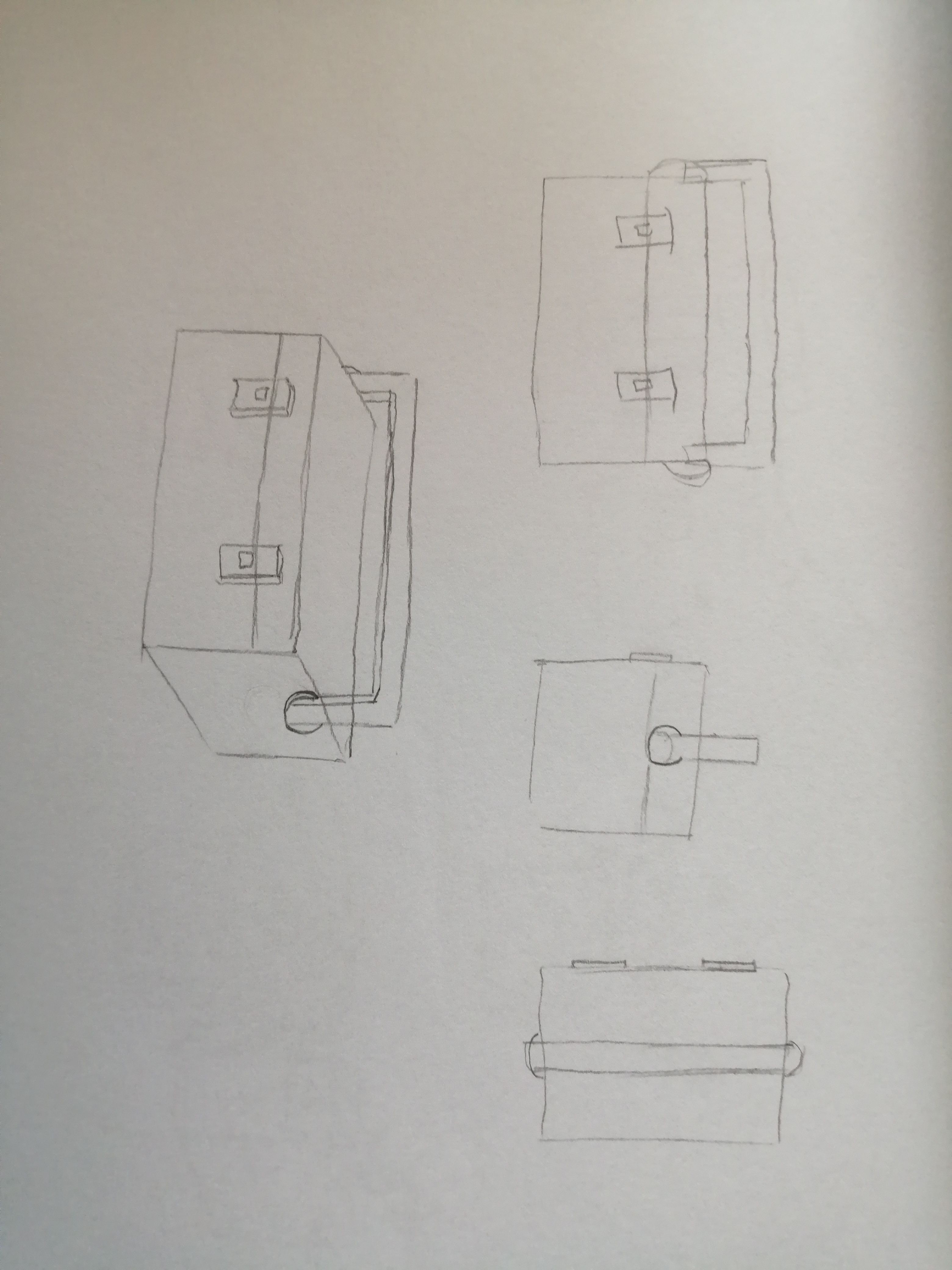 C'est pas mal mais je vois que tu as du mal à comprendre comment fonctionne le dessus de la boîte. Il y a un rebord sur lequel se pose la anse, et un étage. j'ai corrigé ça et je de mets un schéma plus clair du dessus de la boîte. Essaie de faire d'autres vues pour mieux comprendre ^^