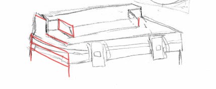 La 1éré image, j'ai seulement retracé les 4 traits (qui entourent les petits loquets servant à fermer la caisse) en les faisant plus parallèle ! La 2nde image est le tuto du dessus de la boîte que j'ai reproduis !