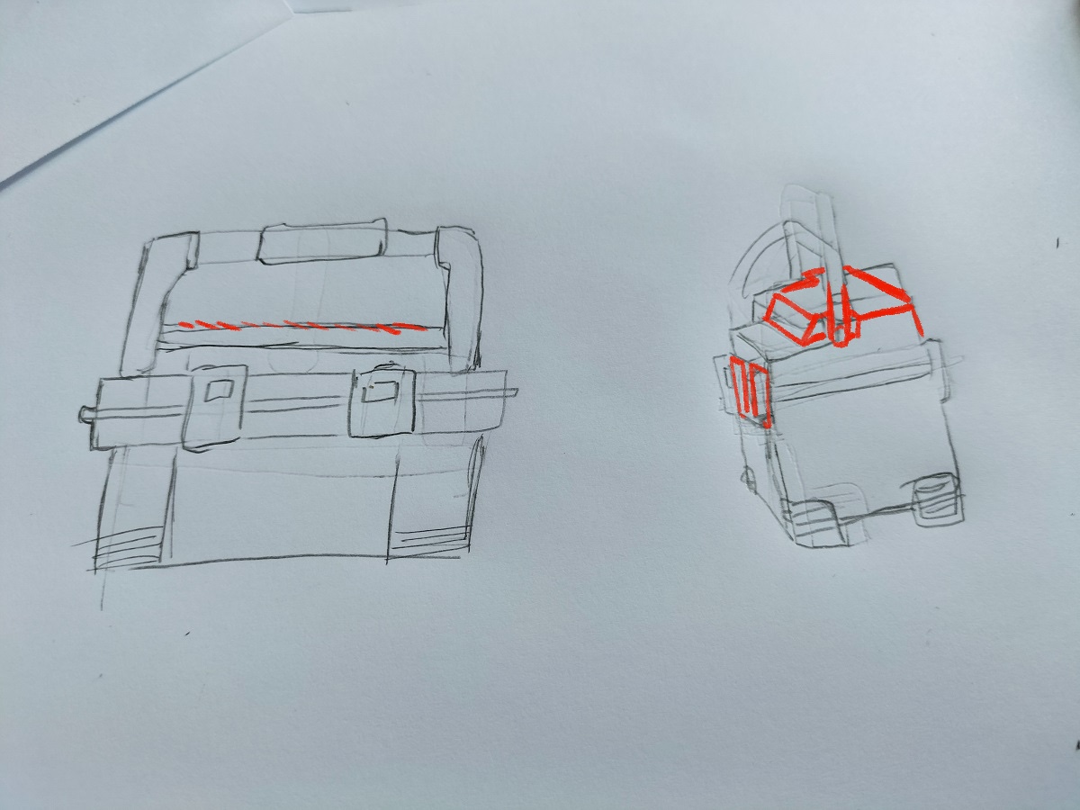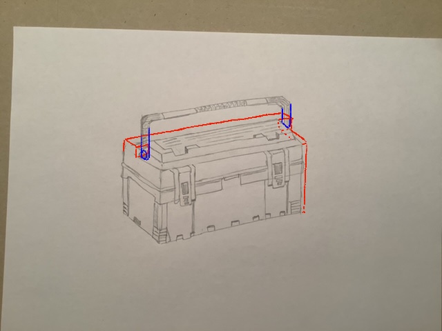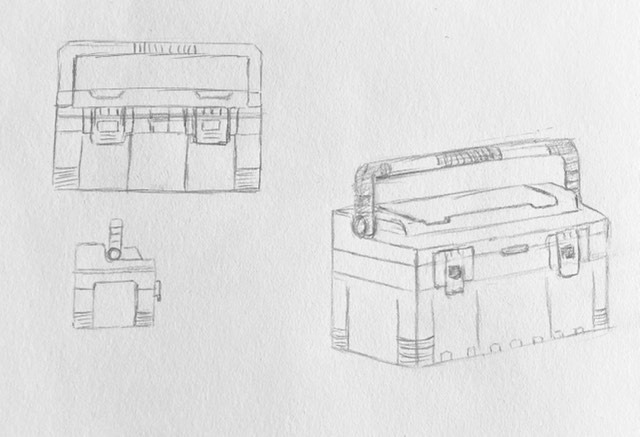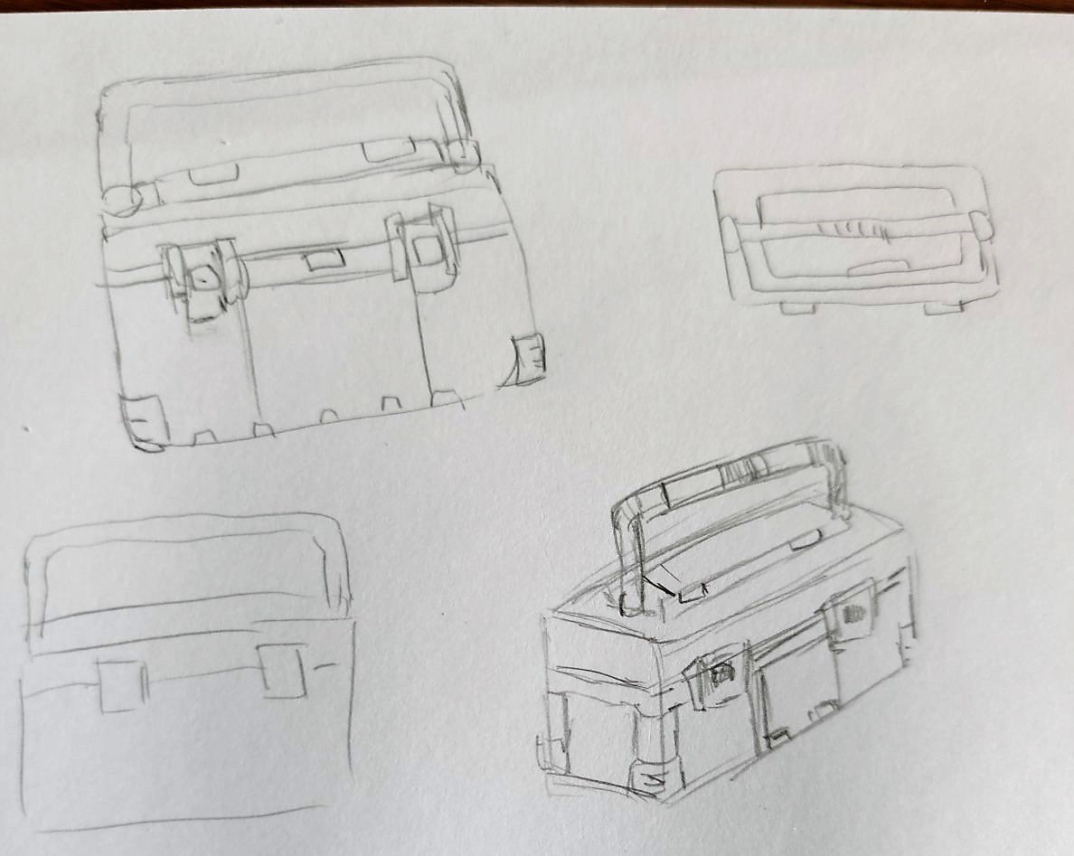 Tu as plutôt bien réussi l'exercice, cependant tu as eu un peu de mal avec le haut de la malette. Regarde bien comment est composé le couvercle, il ya en fait un renfoncement pour poser la poignée.