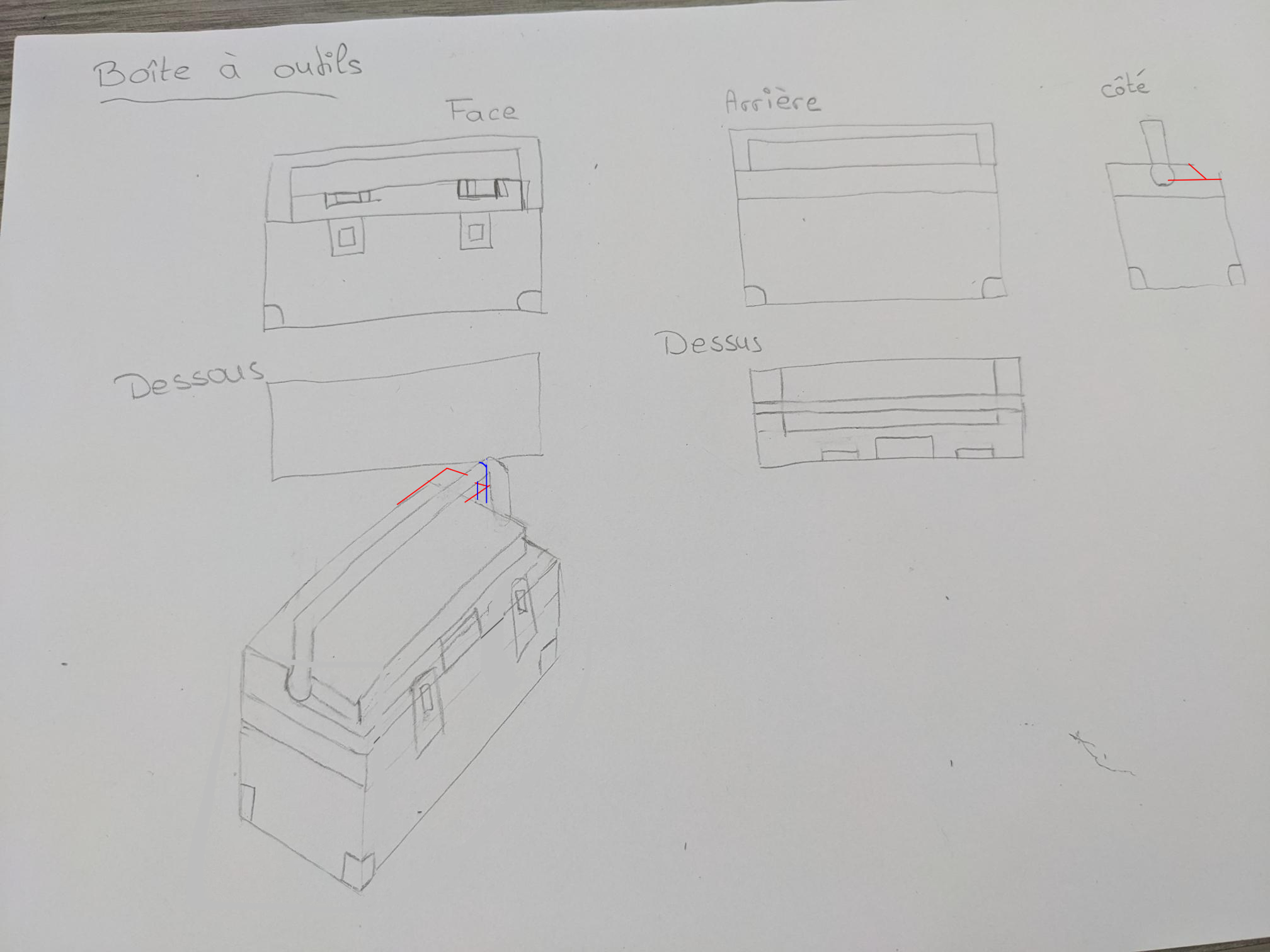 Je vous joins mes dessins relatifs à la caisse à outils. Merci pour votre retour.
