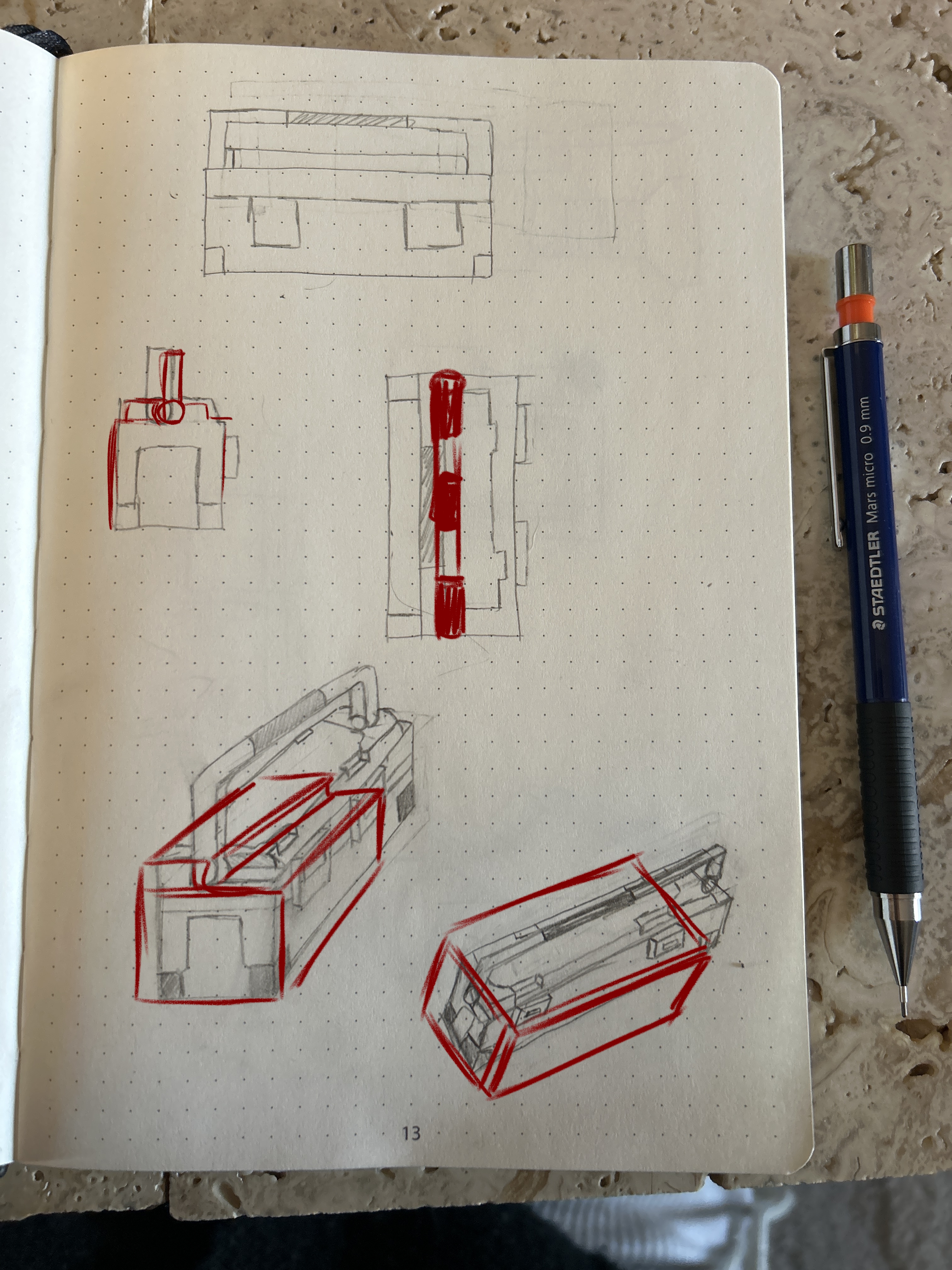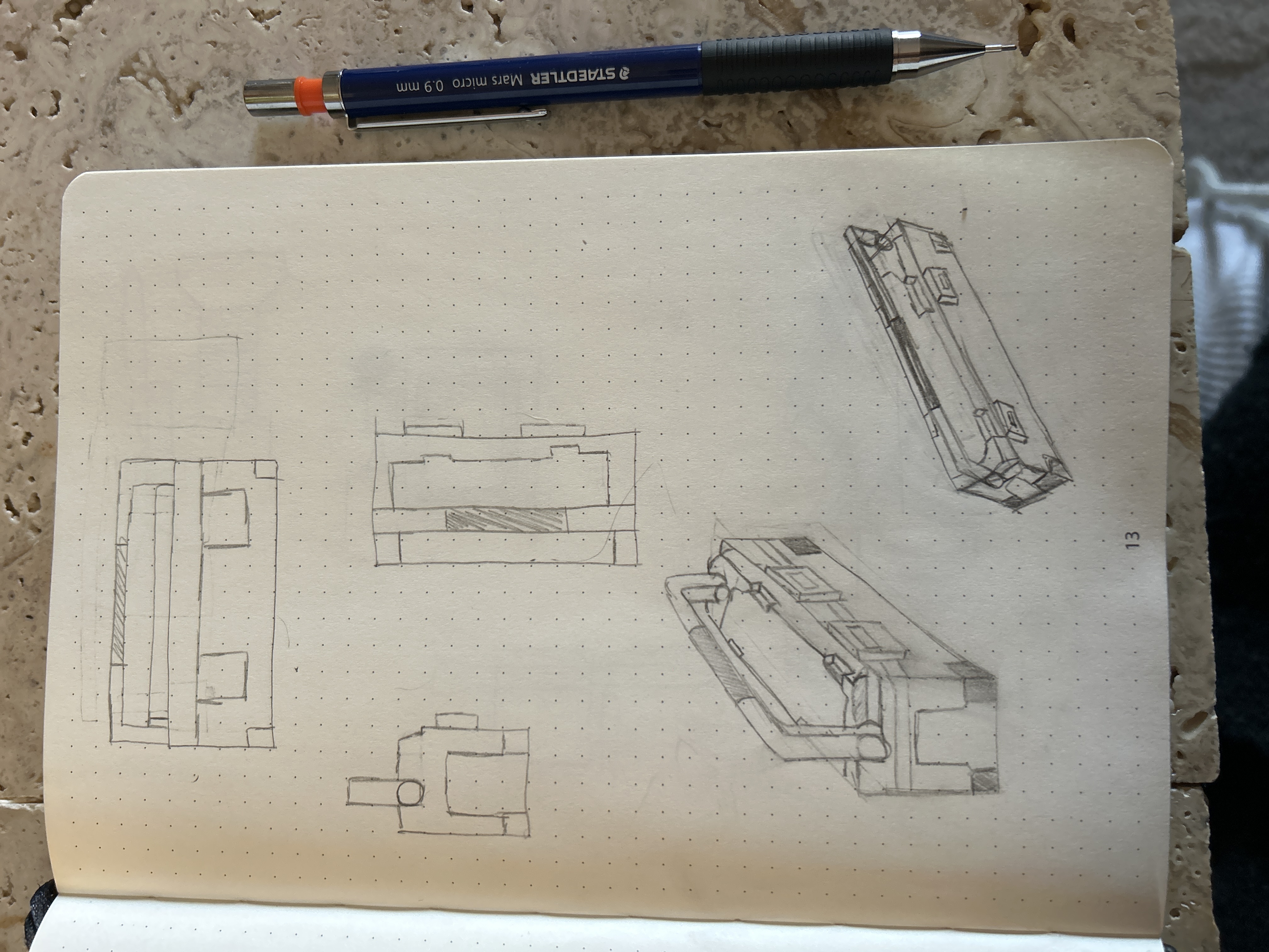 Bonjour Vebeo, il y a de légères variations dans les dimensions mais globalement c'est très bien! Attention à la poignée en perspective, selon les angles elle paraît plus ou moins grande. Sinon tu as tendance sur certaines vues à trop vouloir pencher les lignes verticales des côtés de la boîtes, ça donne un côté un peu déséquilibré à ton dessin. Bon boulot en dehors de ça! ^^