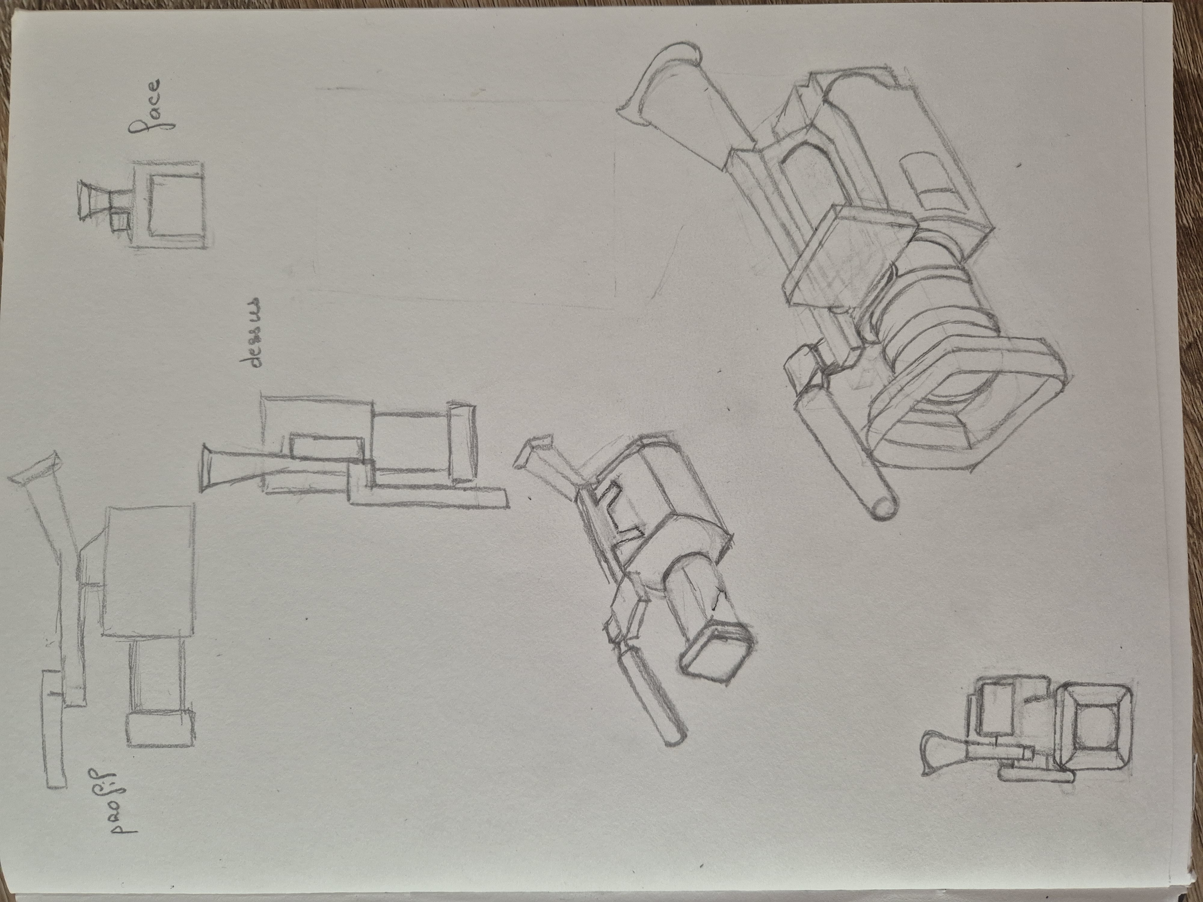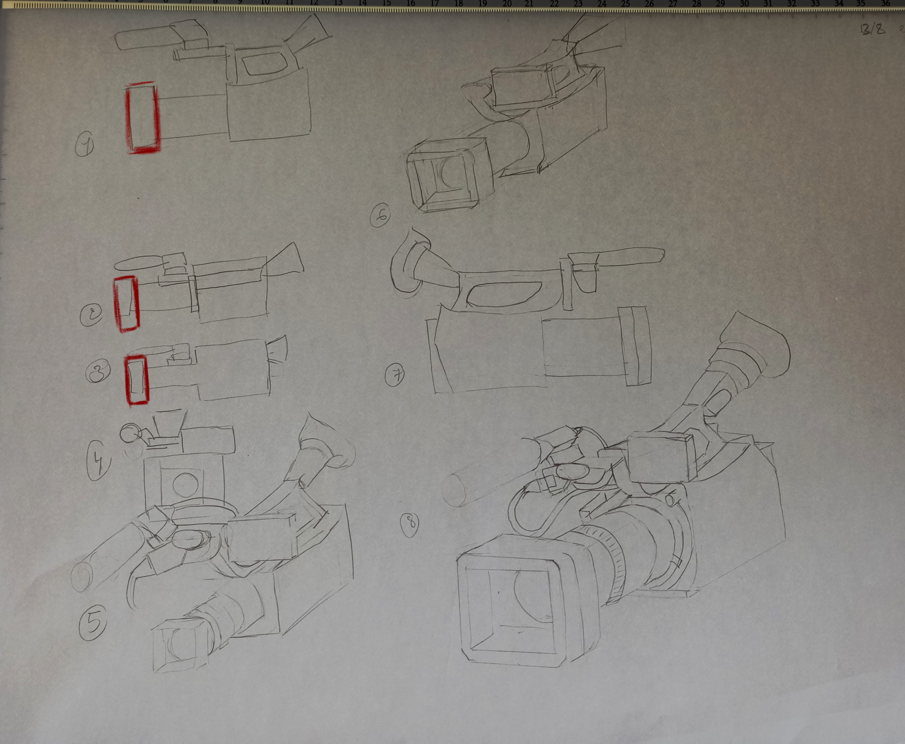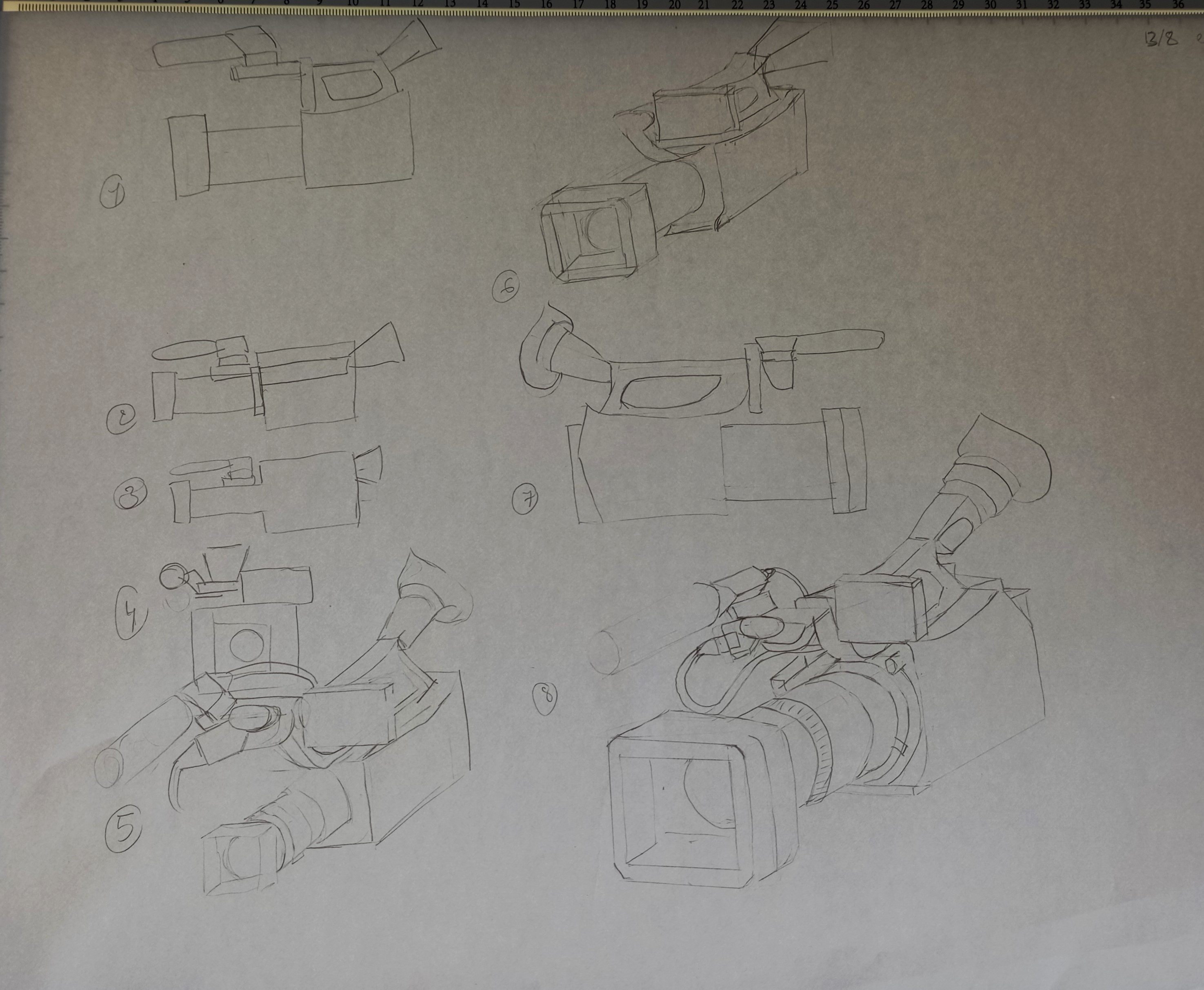 Bonjour Nouswel, c'est vrai que la caméra est un poil plus complexe. Tu t'en es bien tiré, tu as bien identifié les différents éléments qui compose le sujet, il y a juste quelques incohérences de proportion, notamment la taille du petit écran qui change d'une vue à l'autre, et se trouve souvent trop petite. Attention aussi à la longueur de l'objectif. Sur la première vue (de profil) l'objectif devrait reposer au même niveau que le corps de la caméra. Sinon, à part ces quelques ajustement, c'est du bon travail! ^^