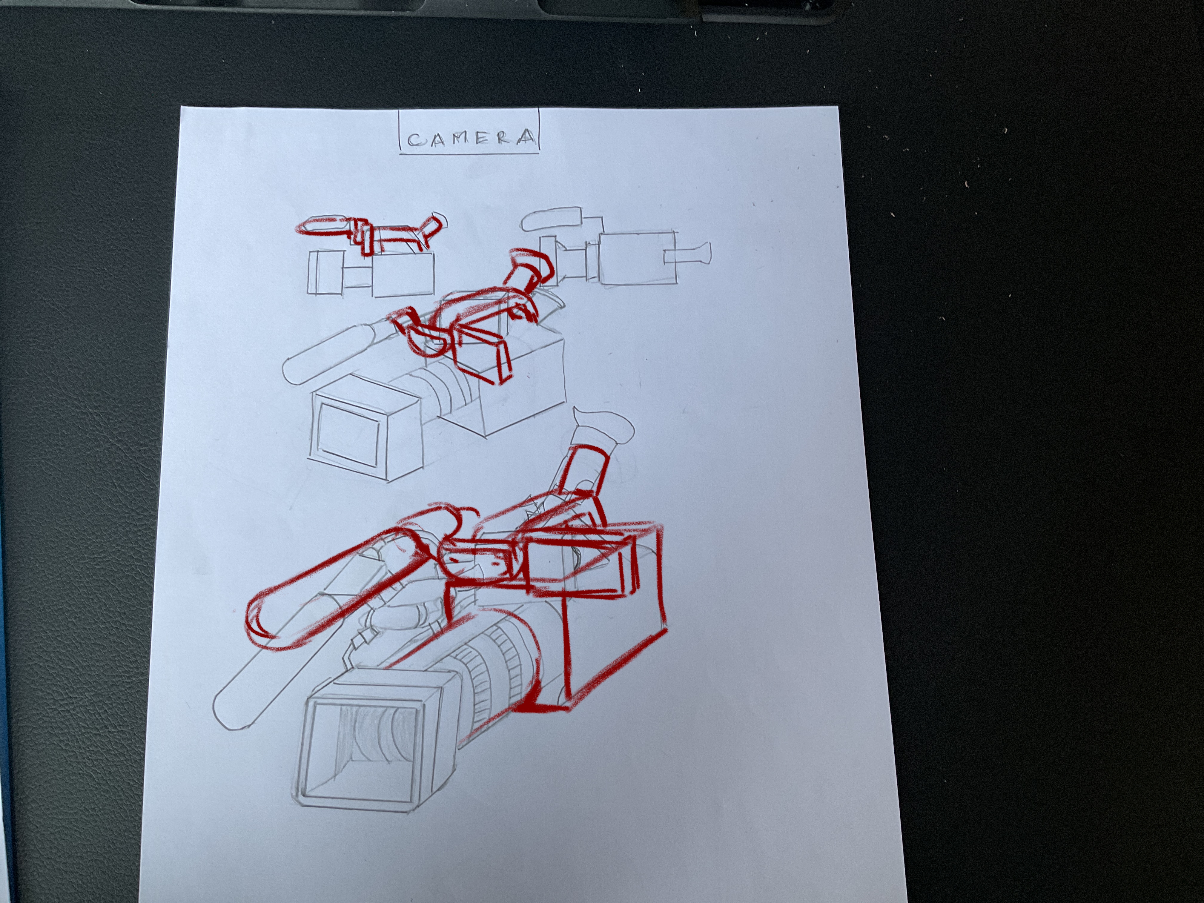 Bonjour Lemony, très bien cette caméra, mais tu t'es peut-être un peu trop laissé dépasser par les détails. :) N'hésite pas à simplifier pour y voir plus clair! Comme pour la voiture évite de penser toute tes formes en cubes et en angle, cela t'induit en erreur. Pour exemple ici, le micro et de forme arrondie et légèrement cylindrique, de même que l'attaque du micro et de l'écran est incurvé. À part ça, c'est super! :)